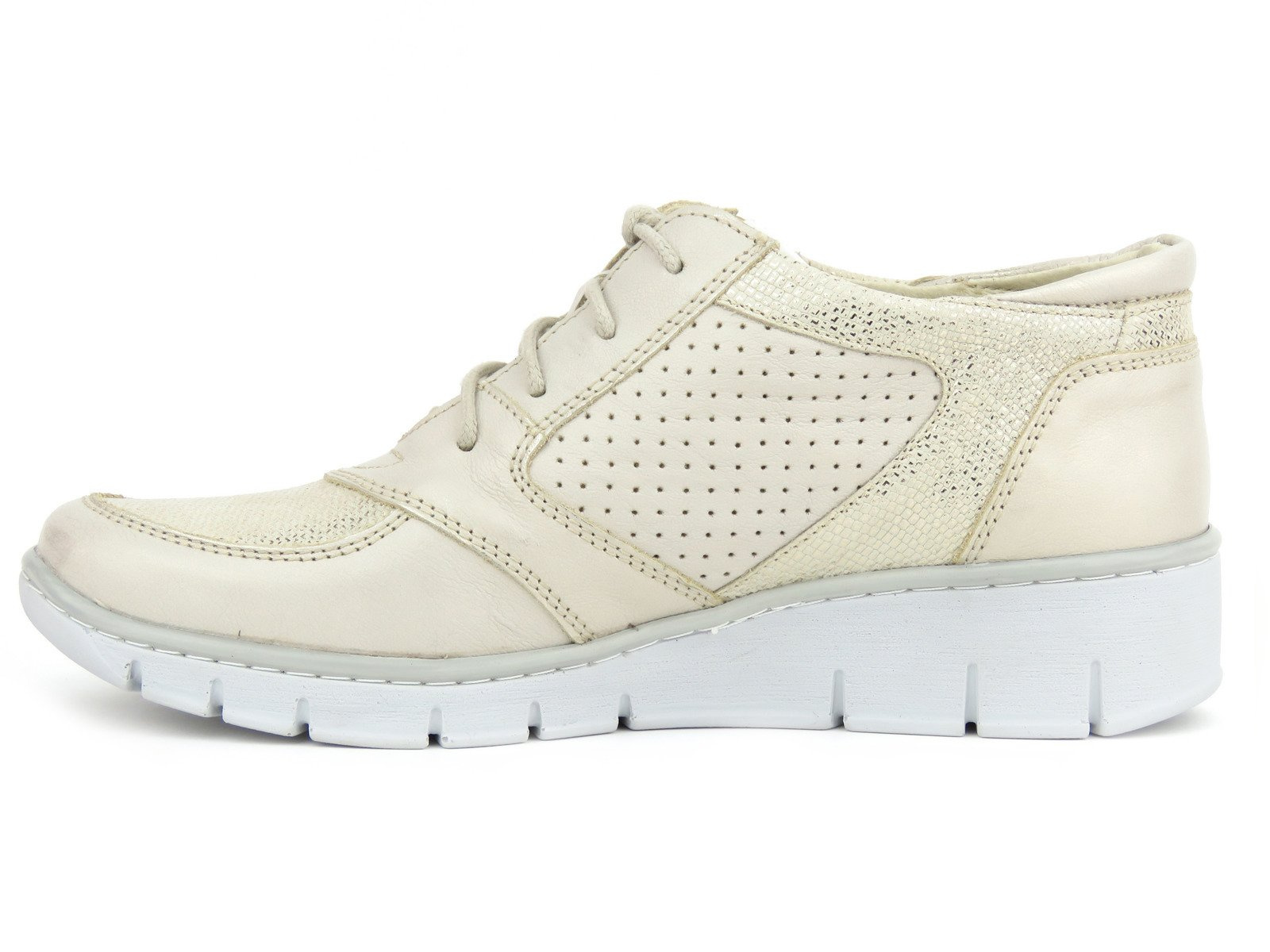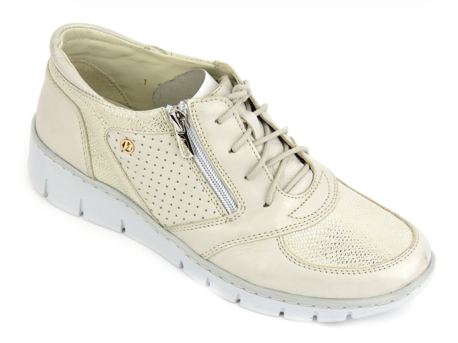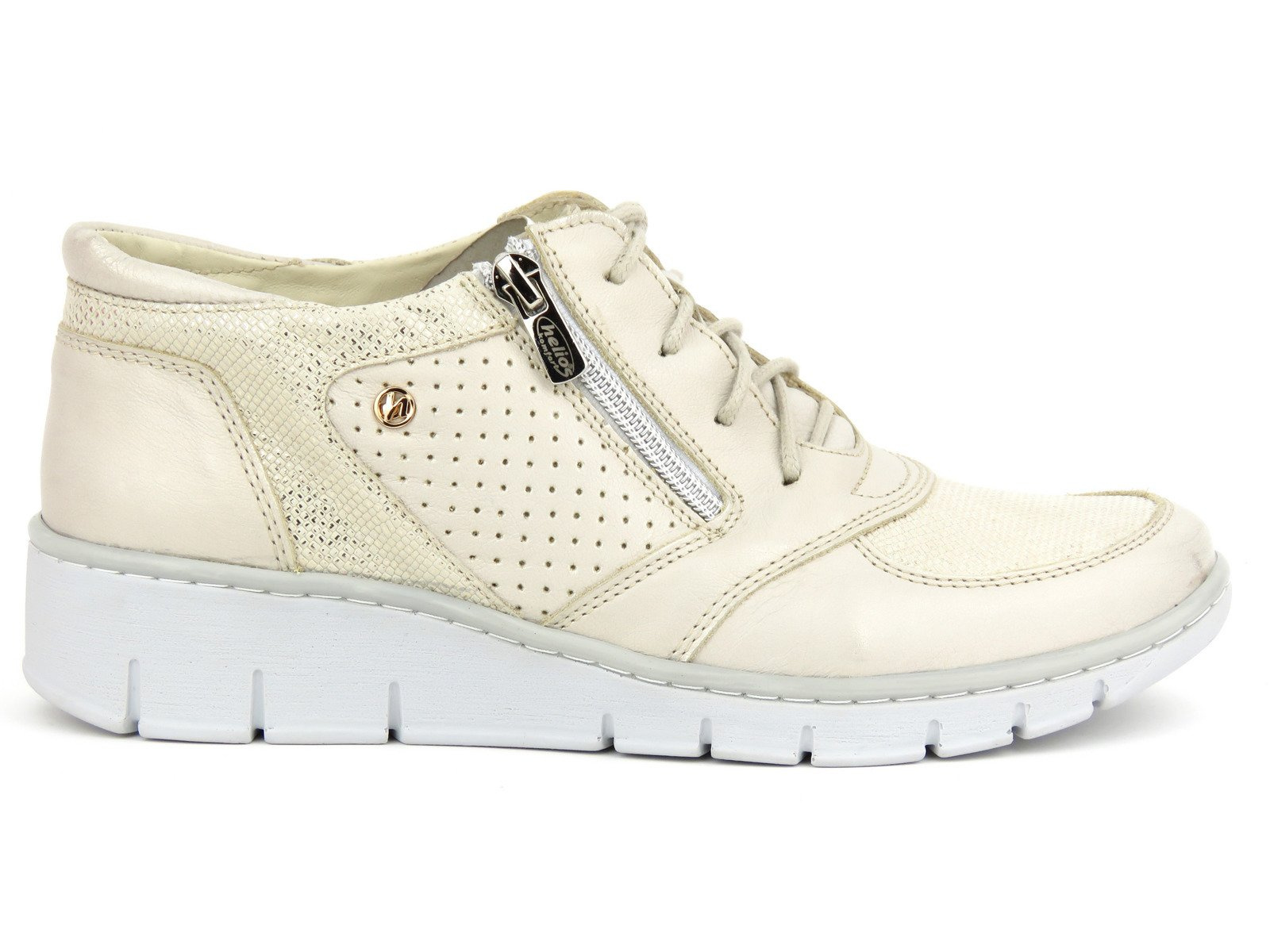 Sneakersy polskiego producenta Helios Komfort zostały wykonane w całości z wysokiej jakości skóry naturalnej licowej. Dla wysokiego komfortu pod skórzaną wkładką zamontowano miękką gąbkę SOFT. Suwak pozwala na szybkie i wygodne zakładanie obuwia. Lekka i elastyczna podeszwa zapewnia naturalne wygięcie i odpowiednie ułożenie stopy w trakcie chodzenia.