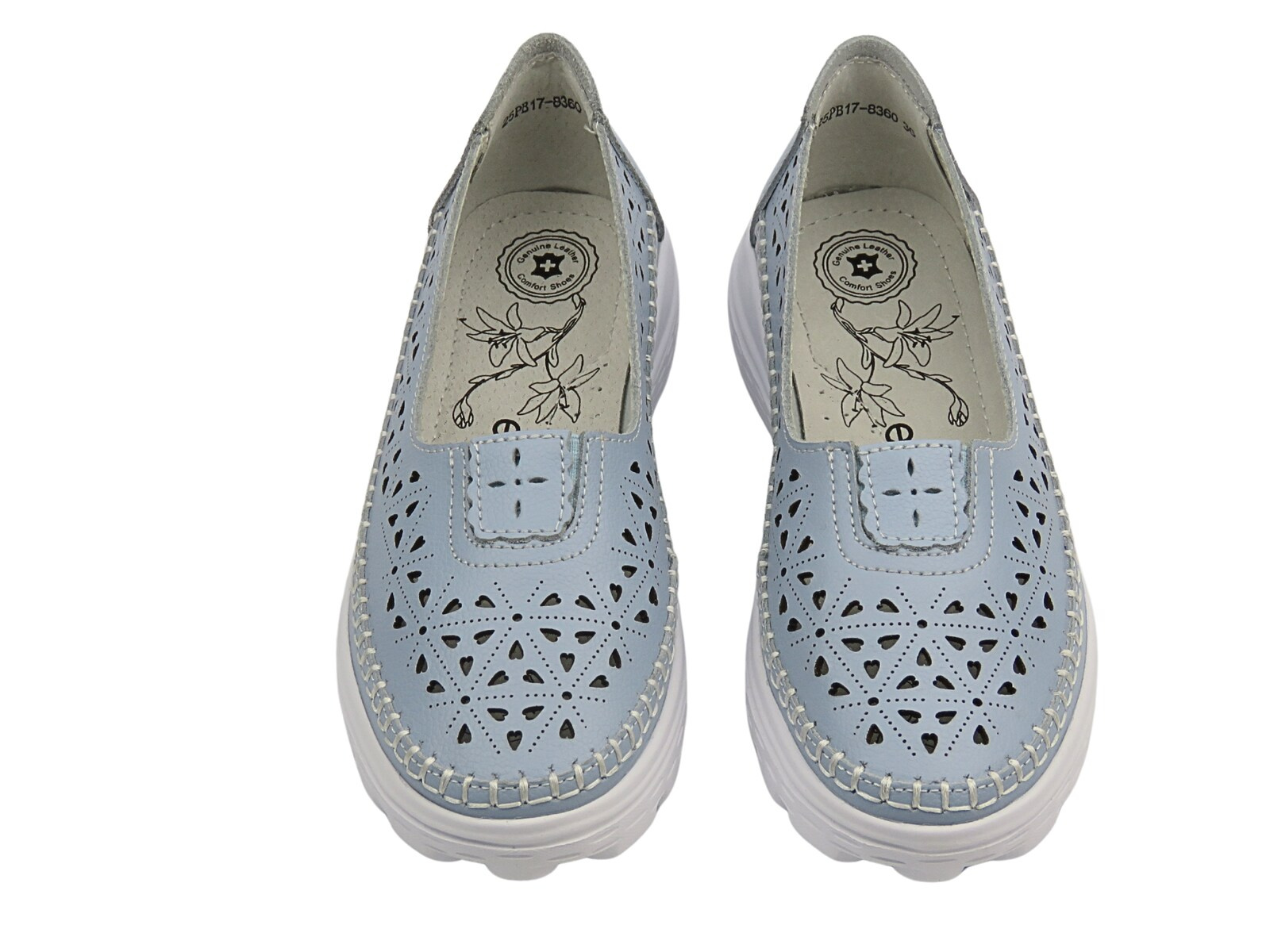 Przyciągające wzrok, pastelowo-niebieskie mokasyny marki Evento model 25PB17-8360 to idealne połączenie wygody i subtelnej elegancji na co dzień.