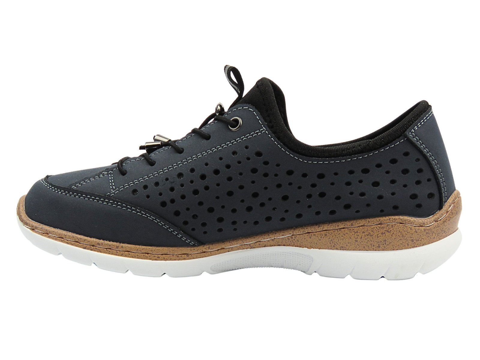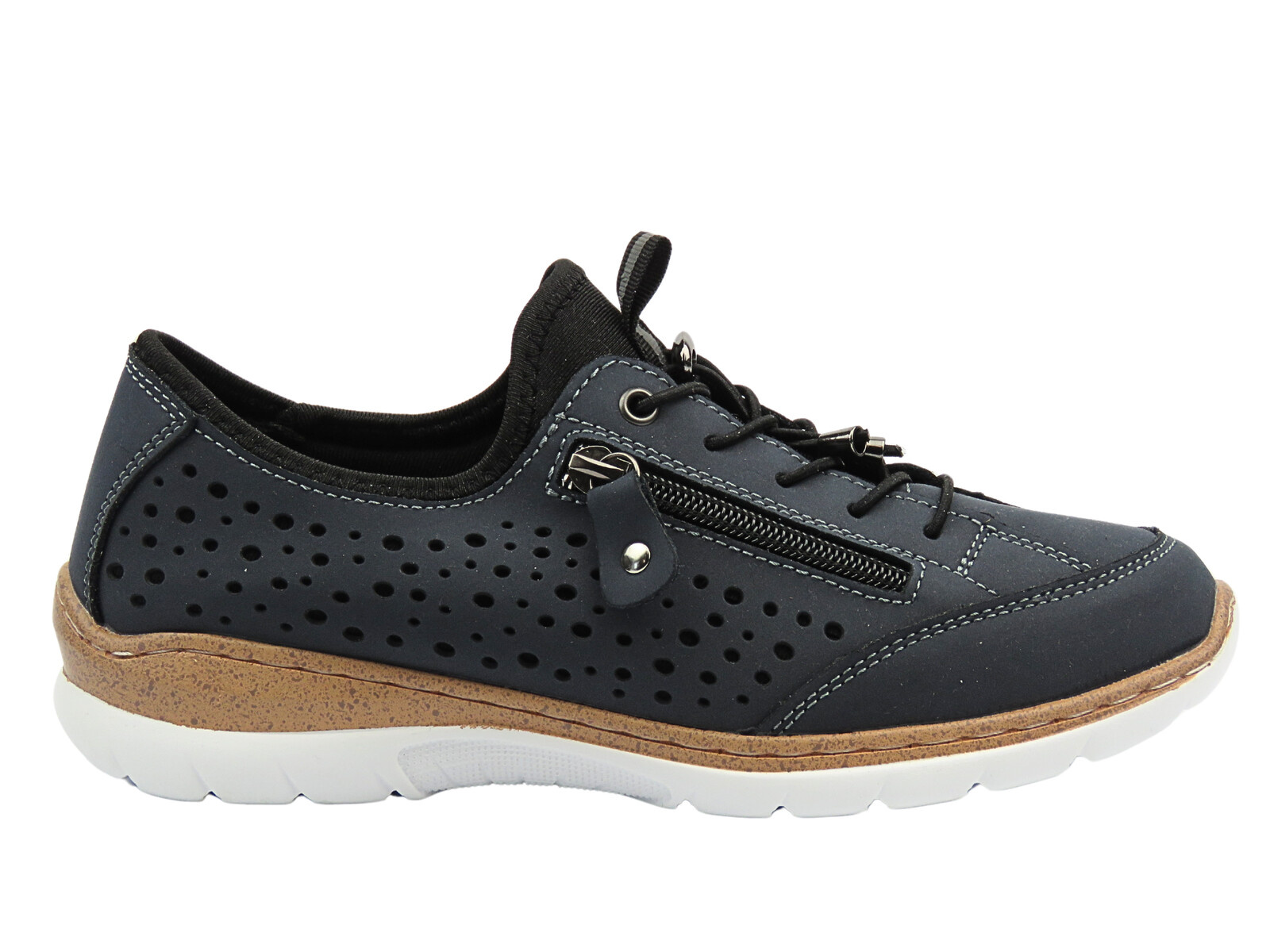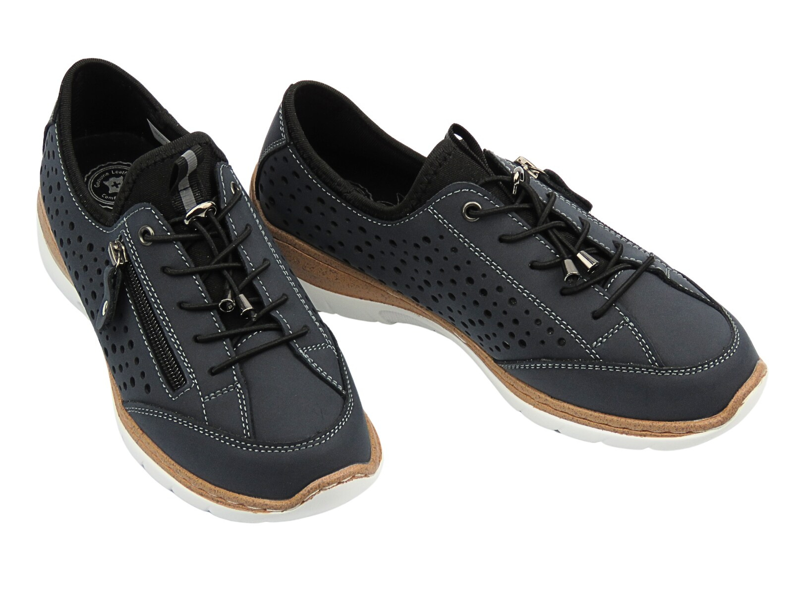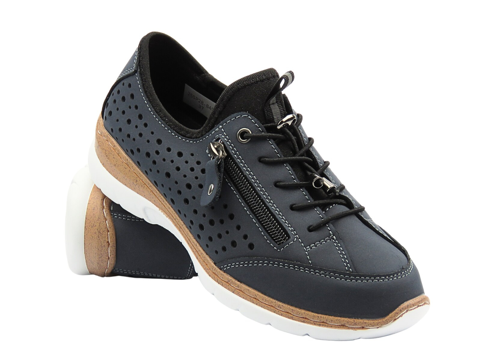 Model 25SP28-8496 od Nika Komfort to nowoczesne półbuty damskie zaprojektowane z myślą o codziennym komforcie i aktywnym stylu życia. Granatowy kolor, kontrastujące przeszycia i perforowana cholewka sprawiają, że buty te wyróżniają się nie tylko wygodą, ale również atrakcyjnym wyglądem. Cholewka wykonana z naturalnej skóry zapewnia doskonałą trwałość i oddychalność, a liczne perforacje wspomagają wentylację stopy nawet podczas długiego użytkowania.