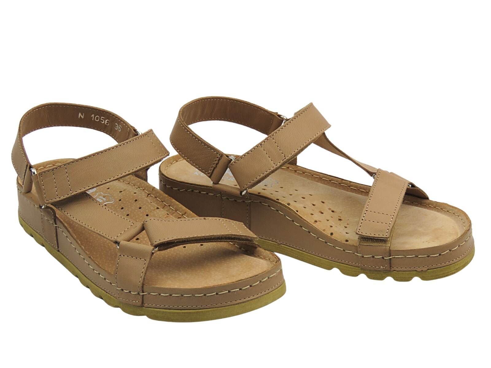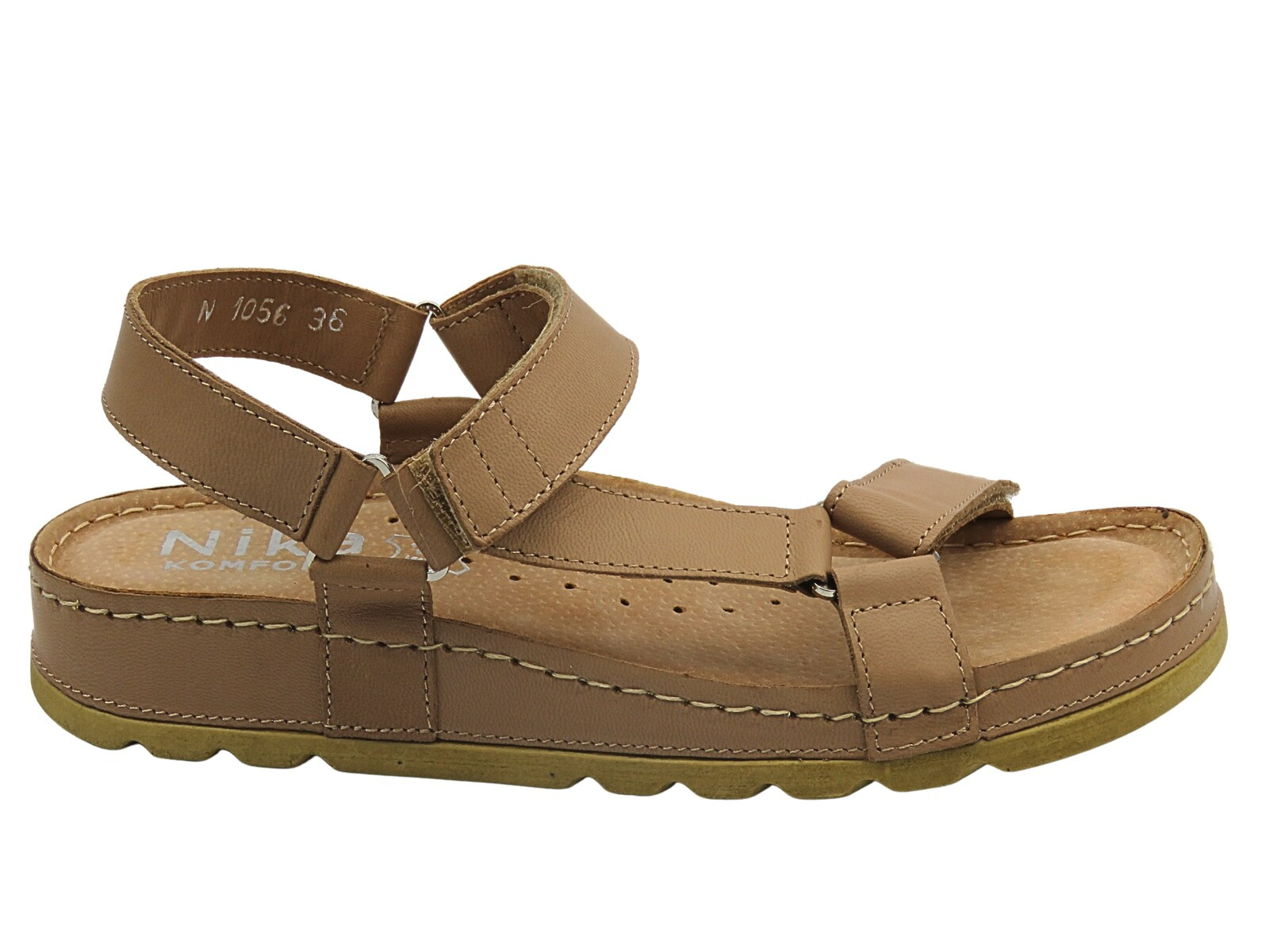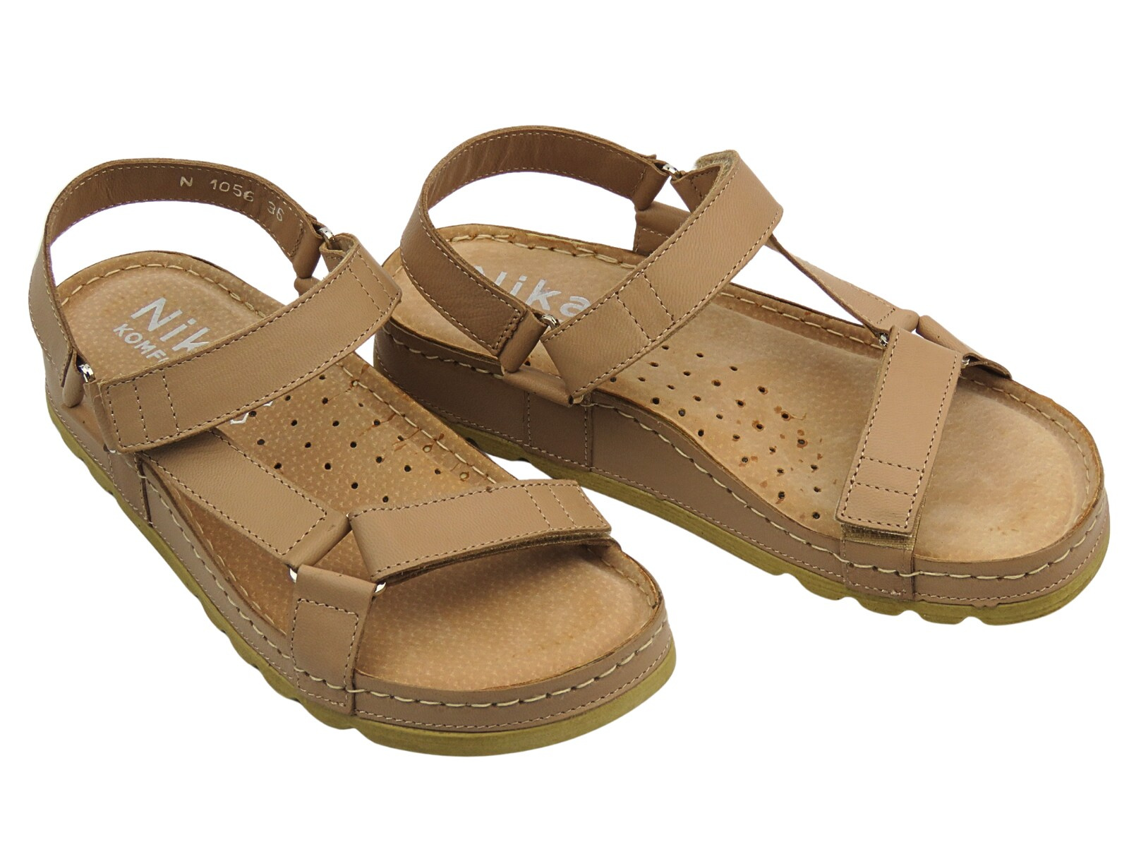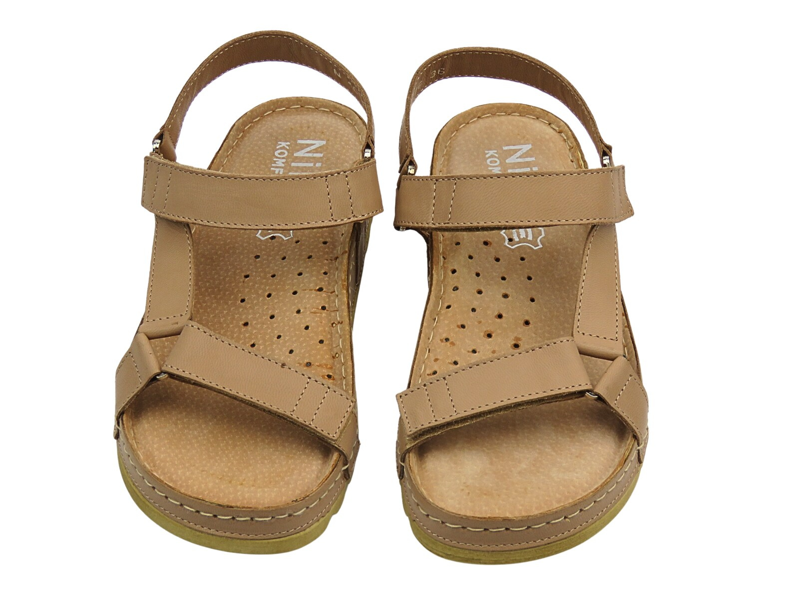 Skórzane sandały damskie Nika Komfort 1056, beżowe