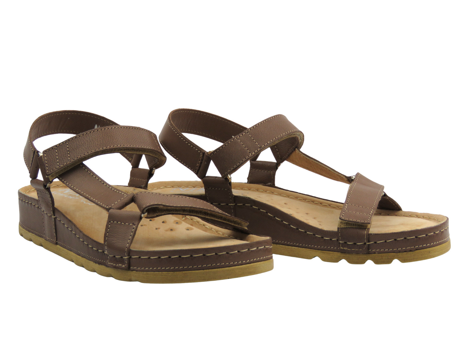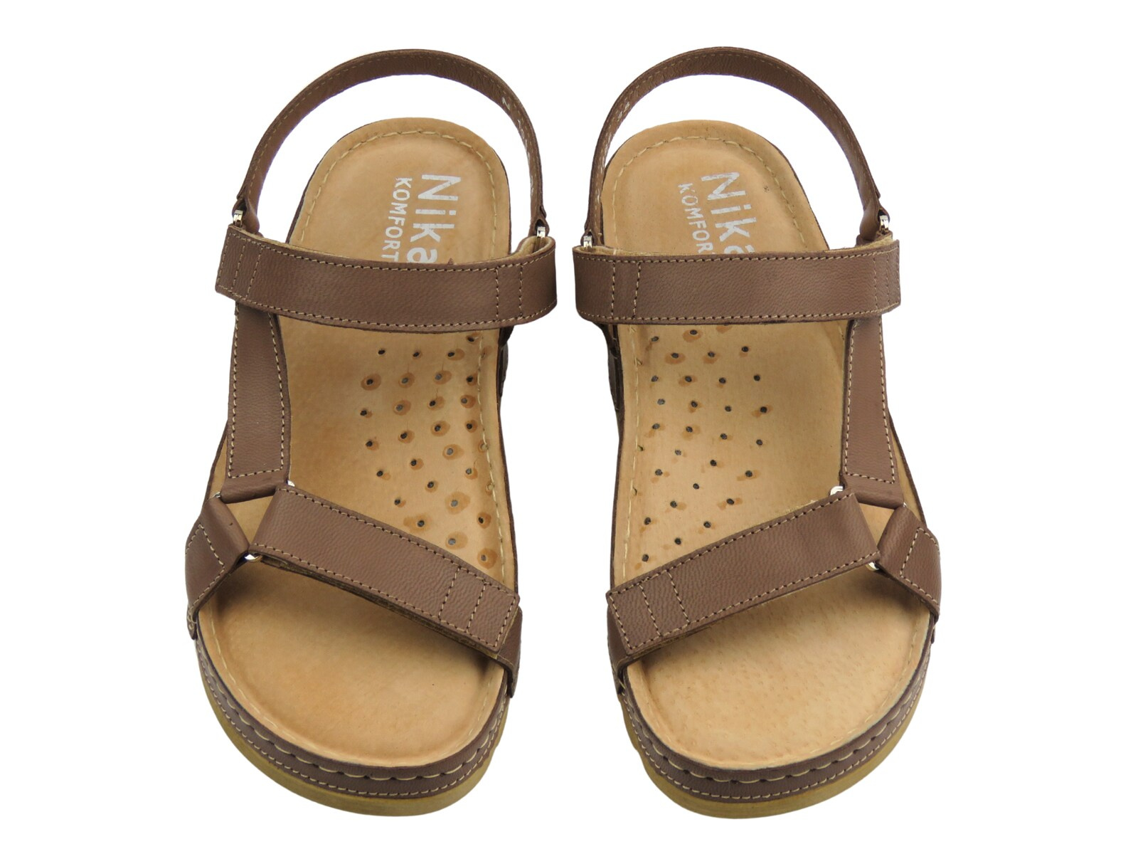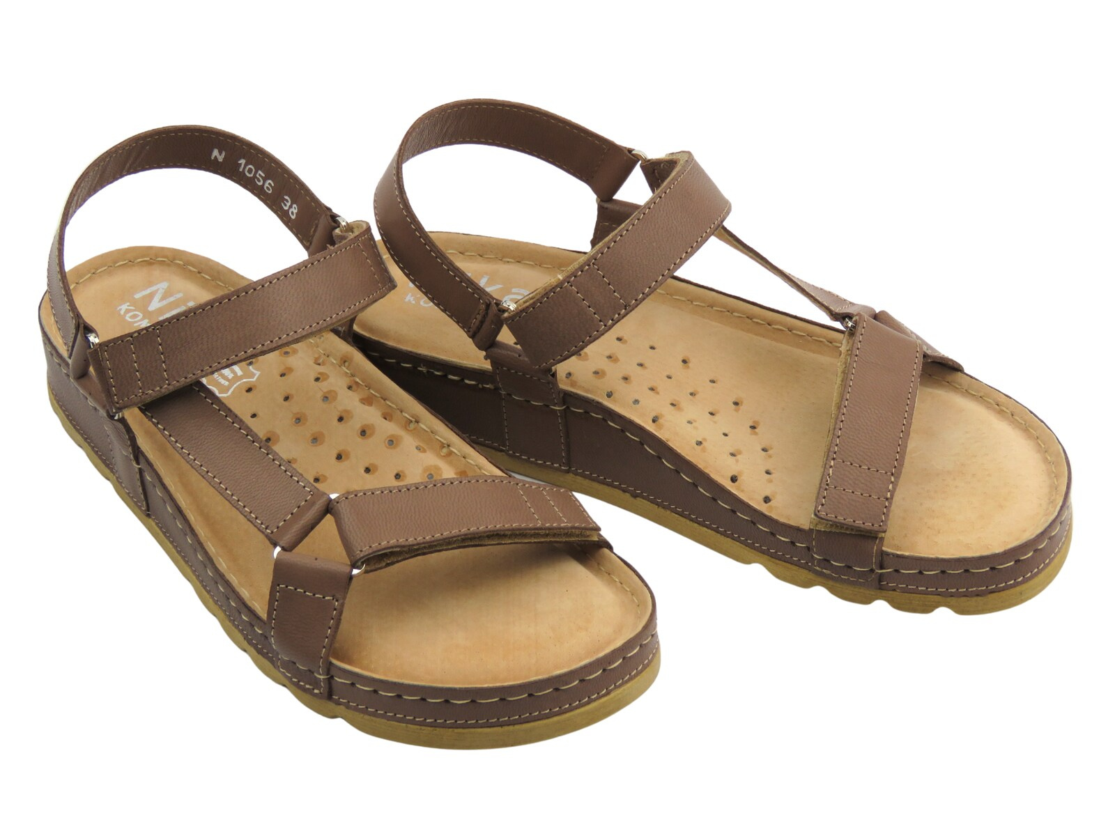 Skórzane sandały damskie Nika Komfort 1056, brązowe