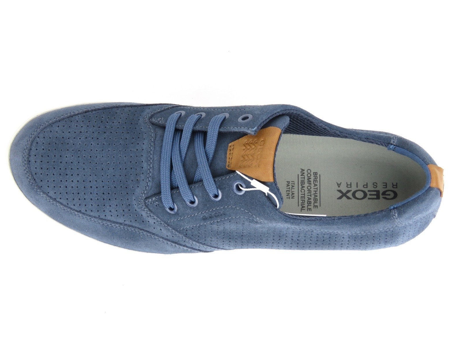 Półbuty męskie renomowanej marki Geox zostały wykonane z wysokiej jakości skóry naturalnej typu zamsz. Liczne perforacje nie tylko zdobią, ale również poprawiają przepływ powietrza. Wkładka i wyściółka z miękkiej tkaniny zapewniają wysoki komfort. Dzięki regulacji sznurowadeł, obuwie można dopasować do różnej tęgości stopy. Elastyczna podeszwa dobrze trzyma się powierzchni.