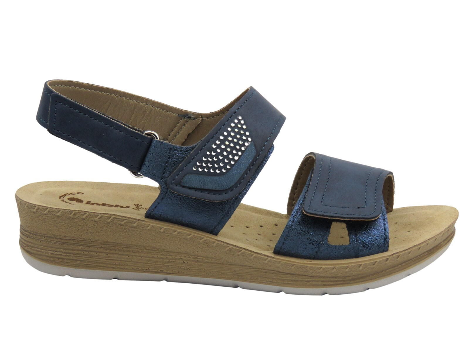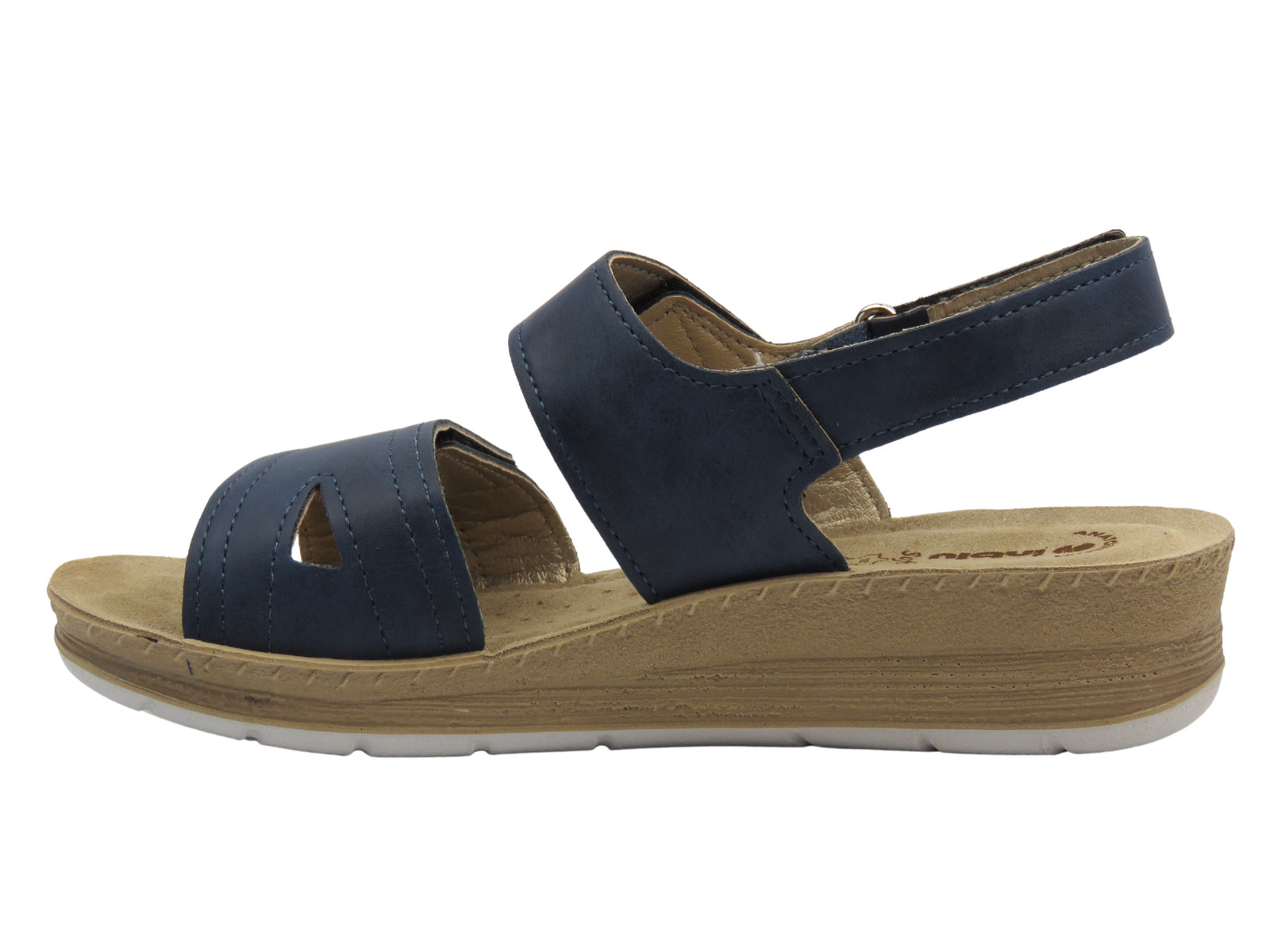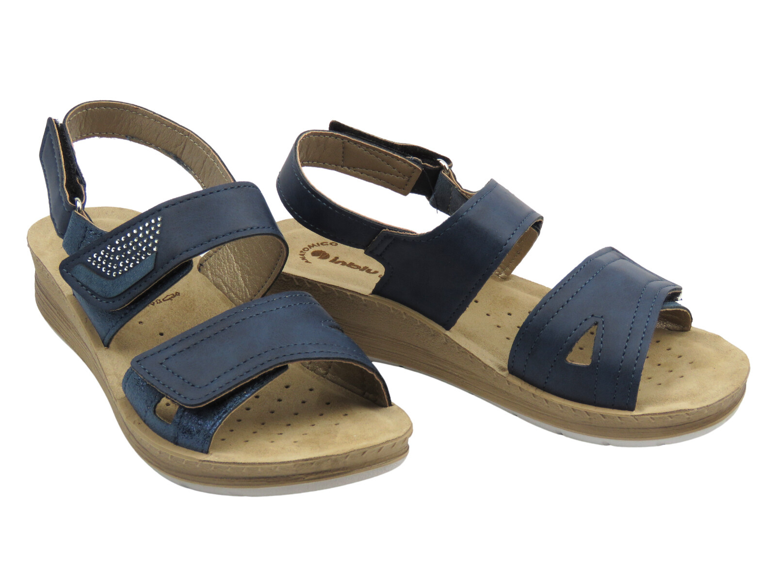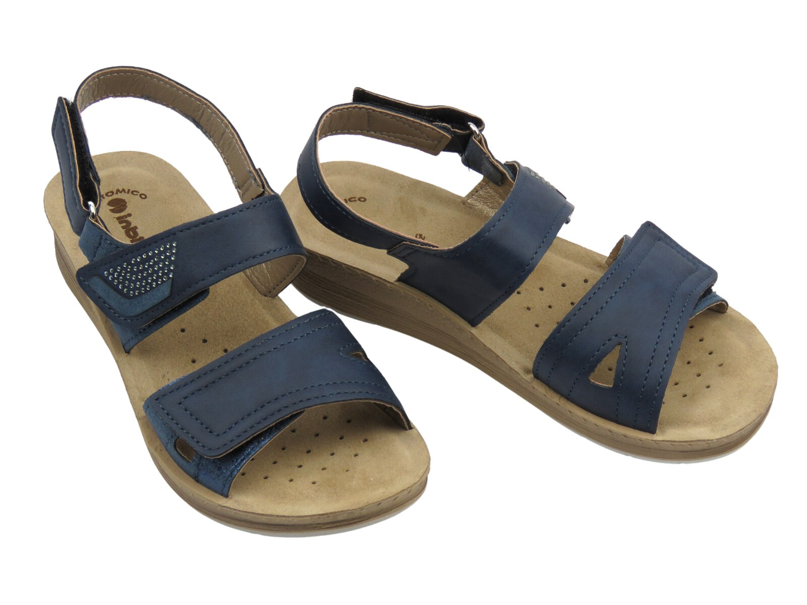 Komfortowe i eleganckie sandały damskie na koturnie marki INBLU, model FC-61, w granatowym kolorze.