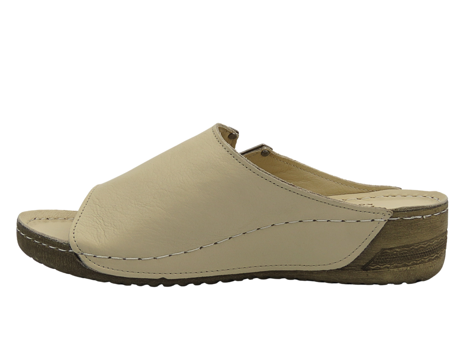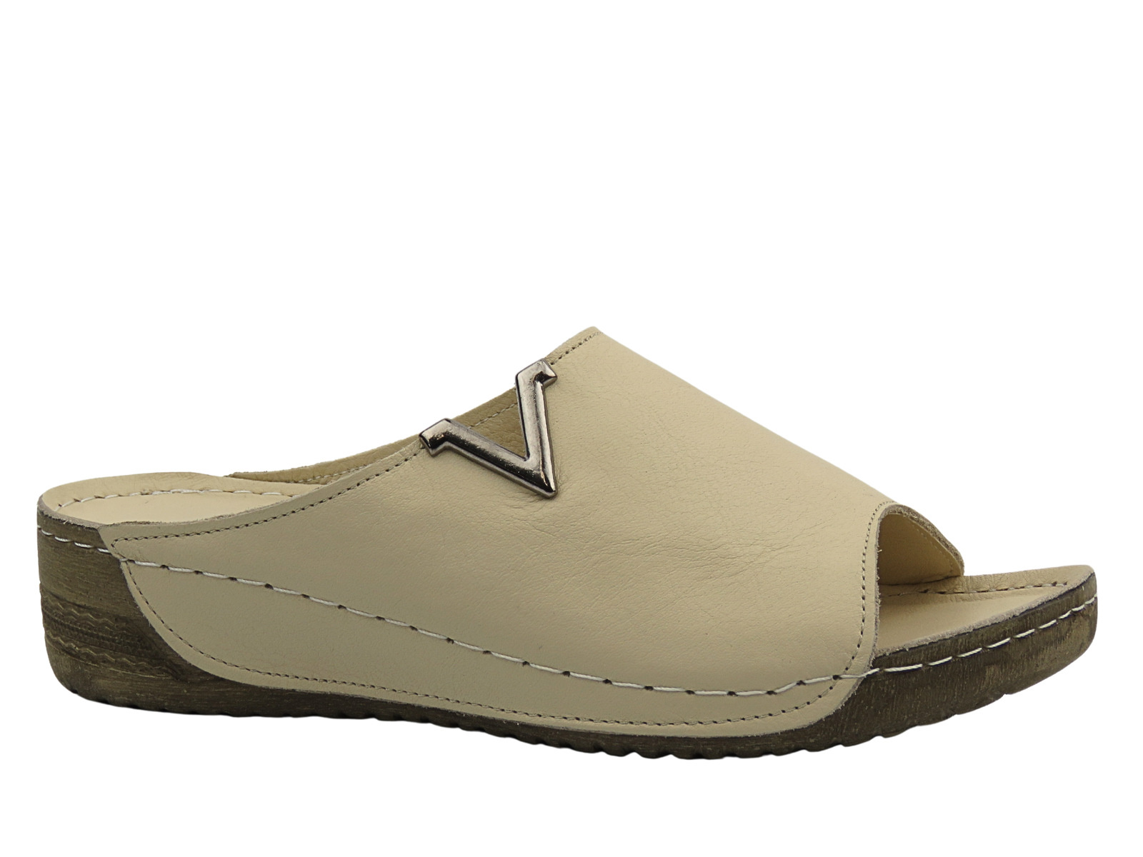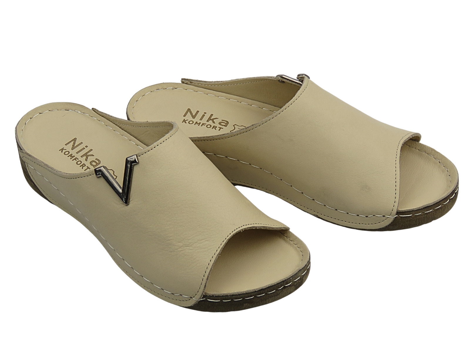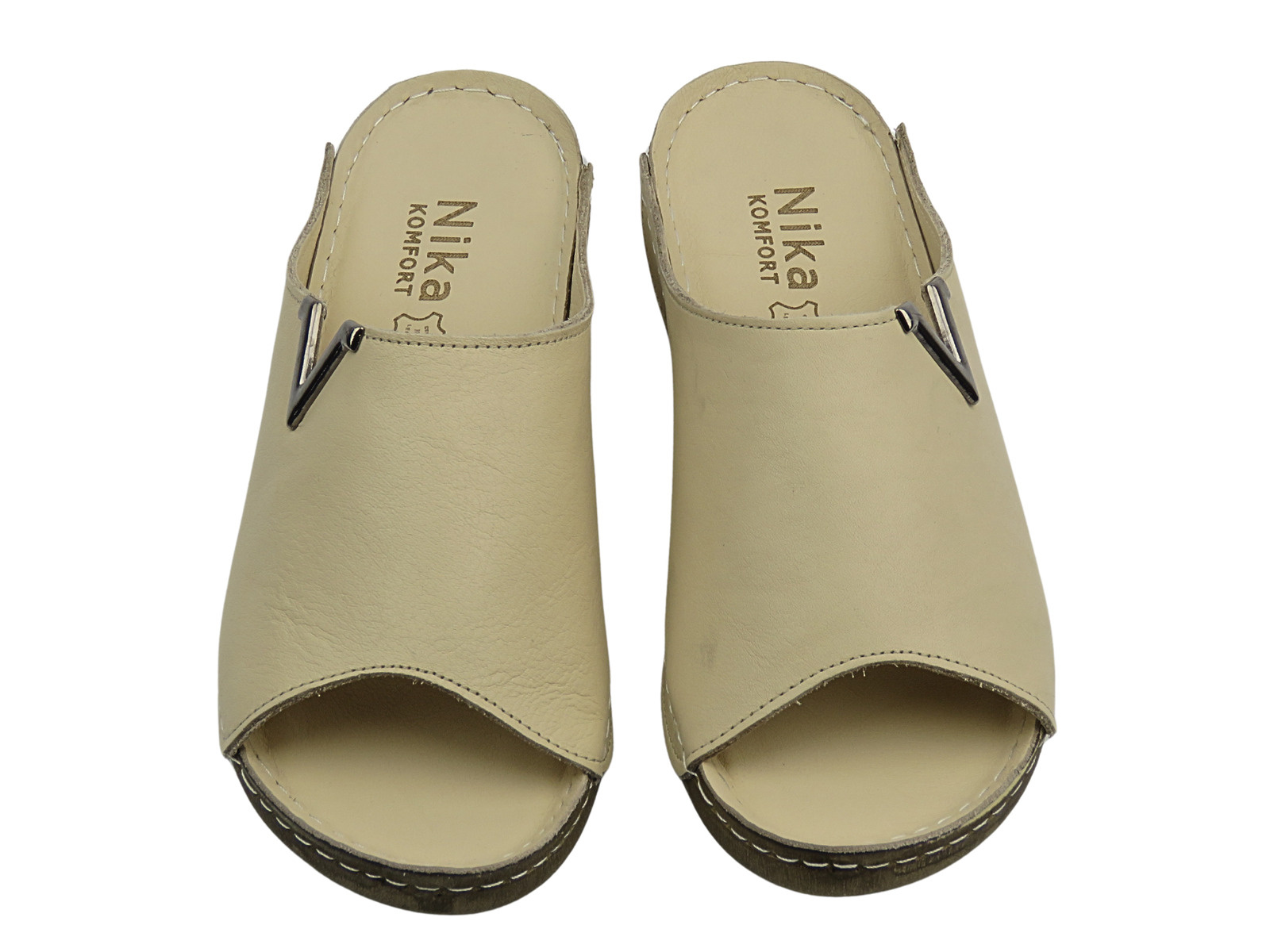 Skórzane klapki damskie Nika Komfort H-211, beżowe