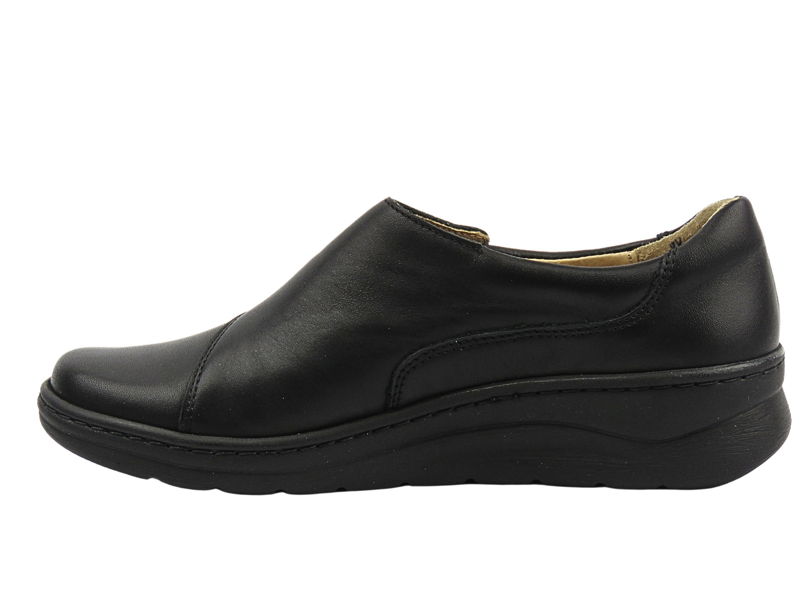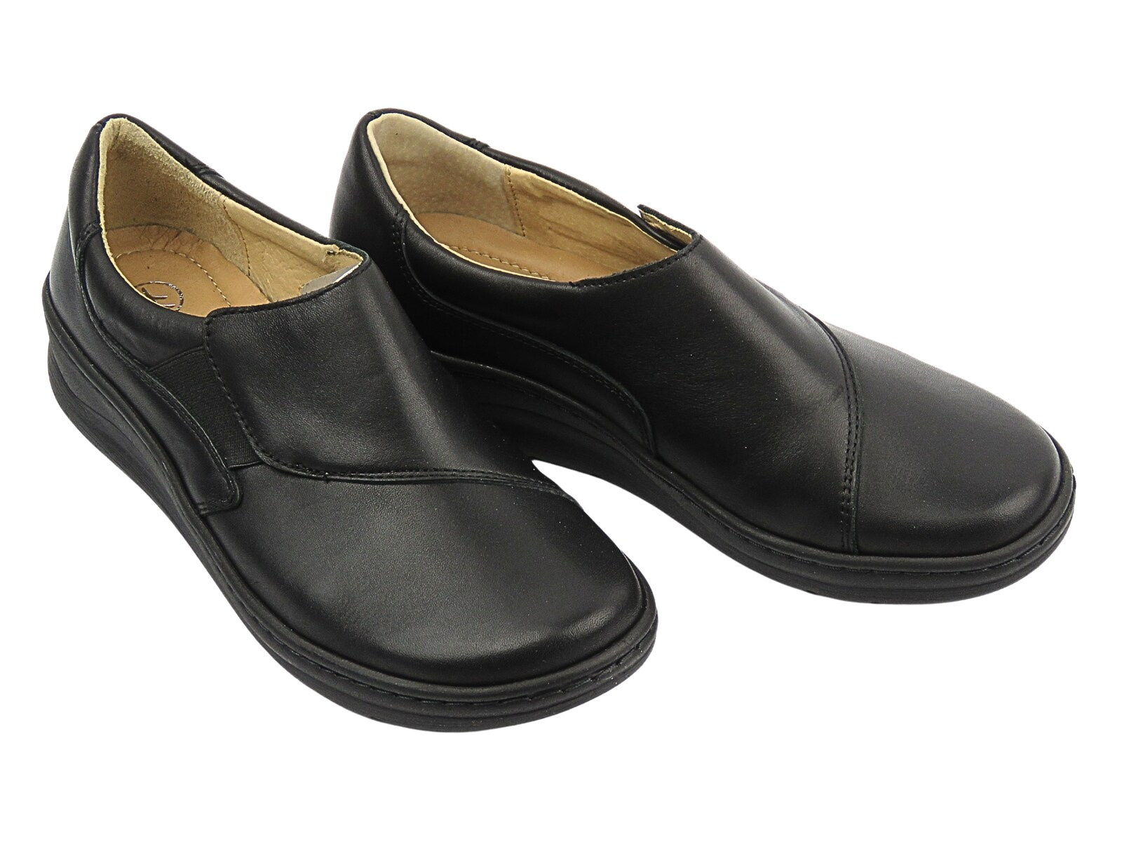 Wygodne półbuty damskie z miękkiej skóry czarne Helios Komfort 304