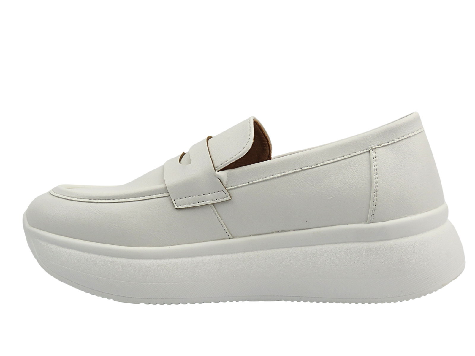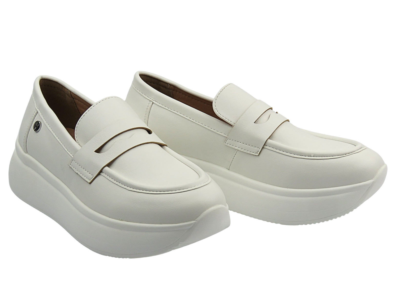 Nowoczesna klasyka w lekkiej odsłonie – białe półbuty damskie Inblu IC-14 to połączenie ponadczasowej elegancji mokasynów z wygodą i funkcjonalnością obuwia na platformie.