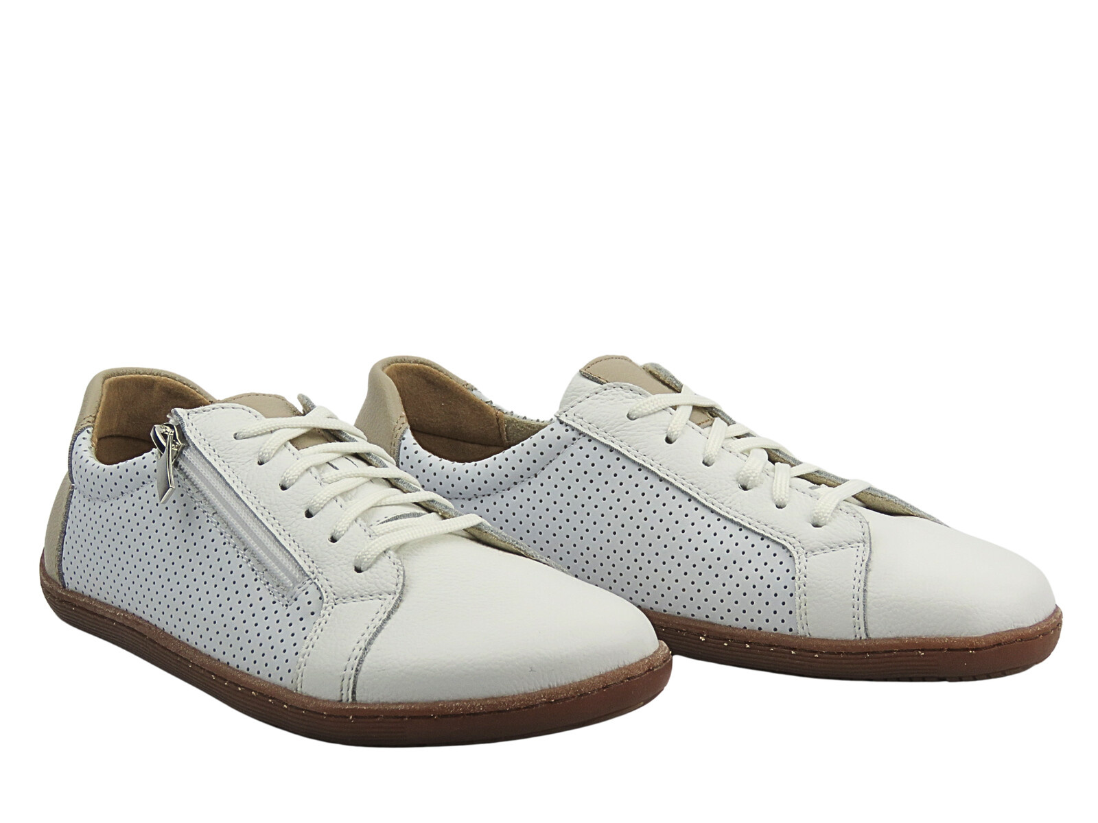Barefoot skórzane minimalistyczne półbuty damskie białe Nika Komfort 1430