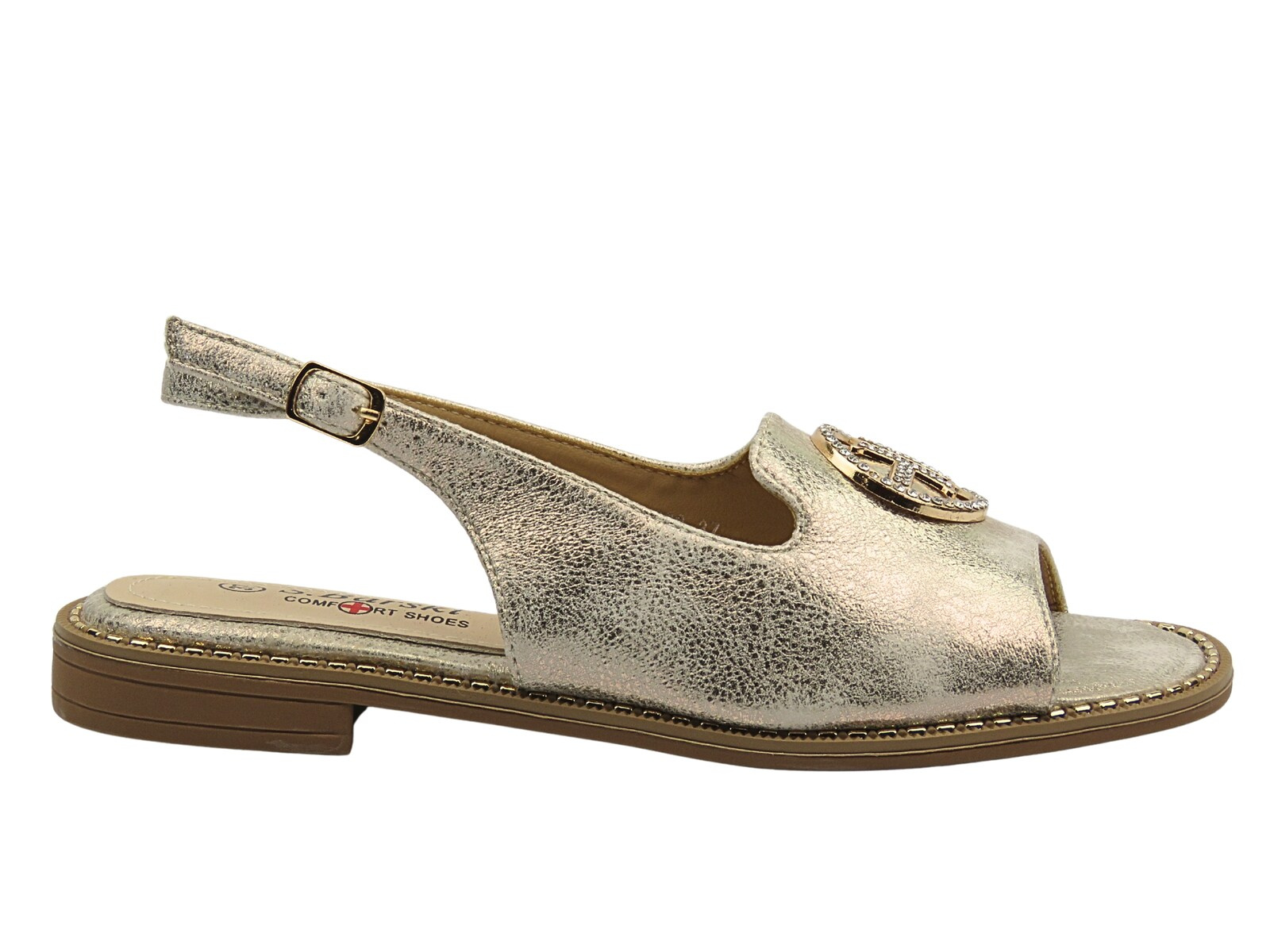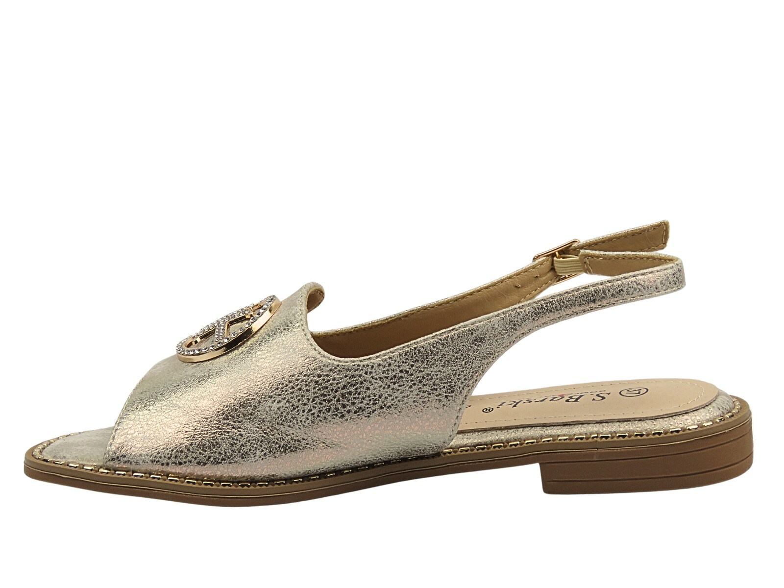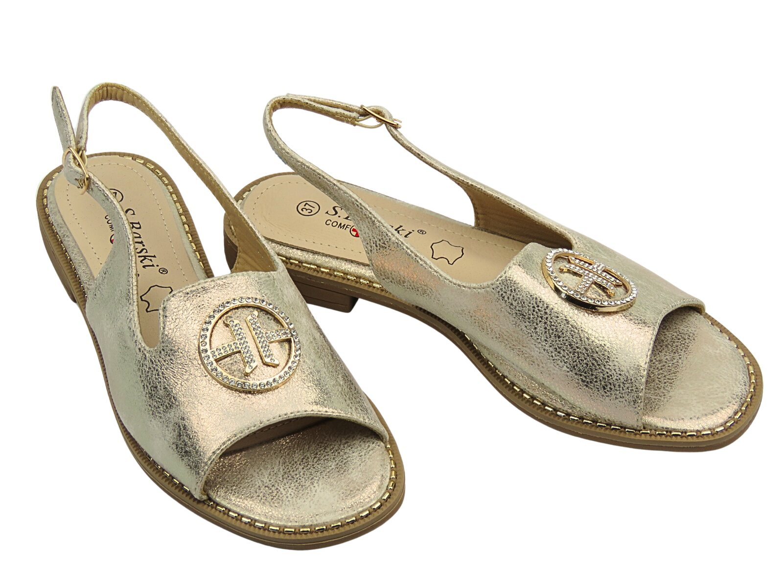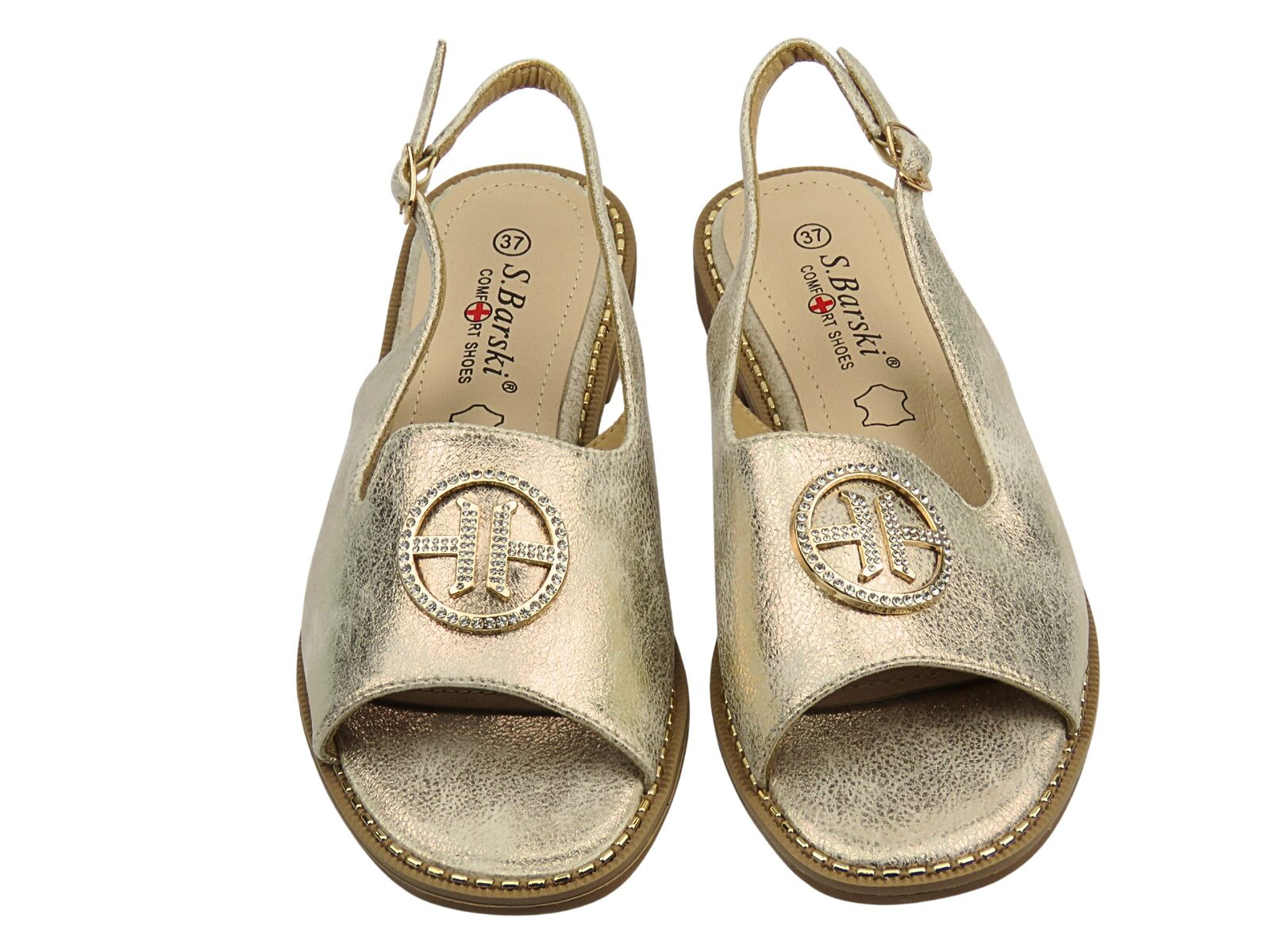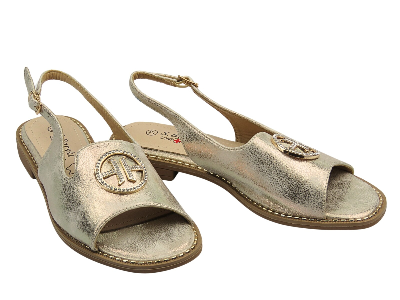 Stylowe sandały damskie S. Barski KV51-002 w eleganckim złotym kolorze to idealny wybór na letnie dni dla kobiet ceniących sobie wygodę i modny wygląd.