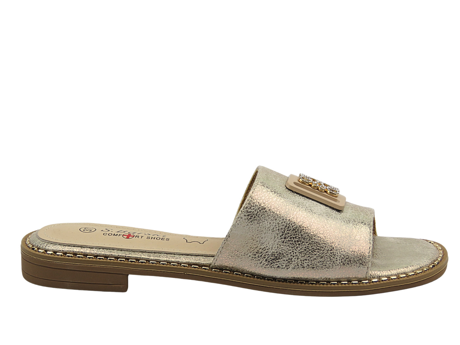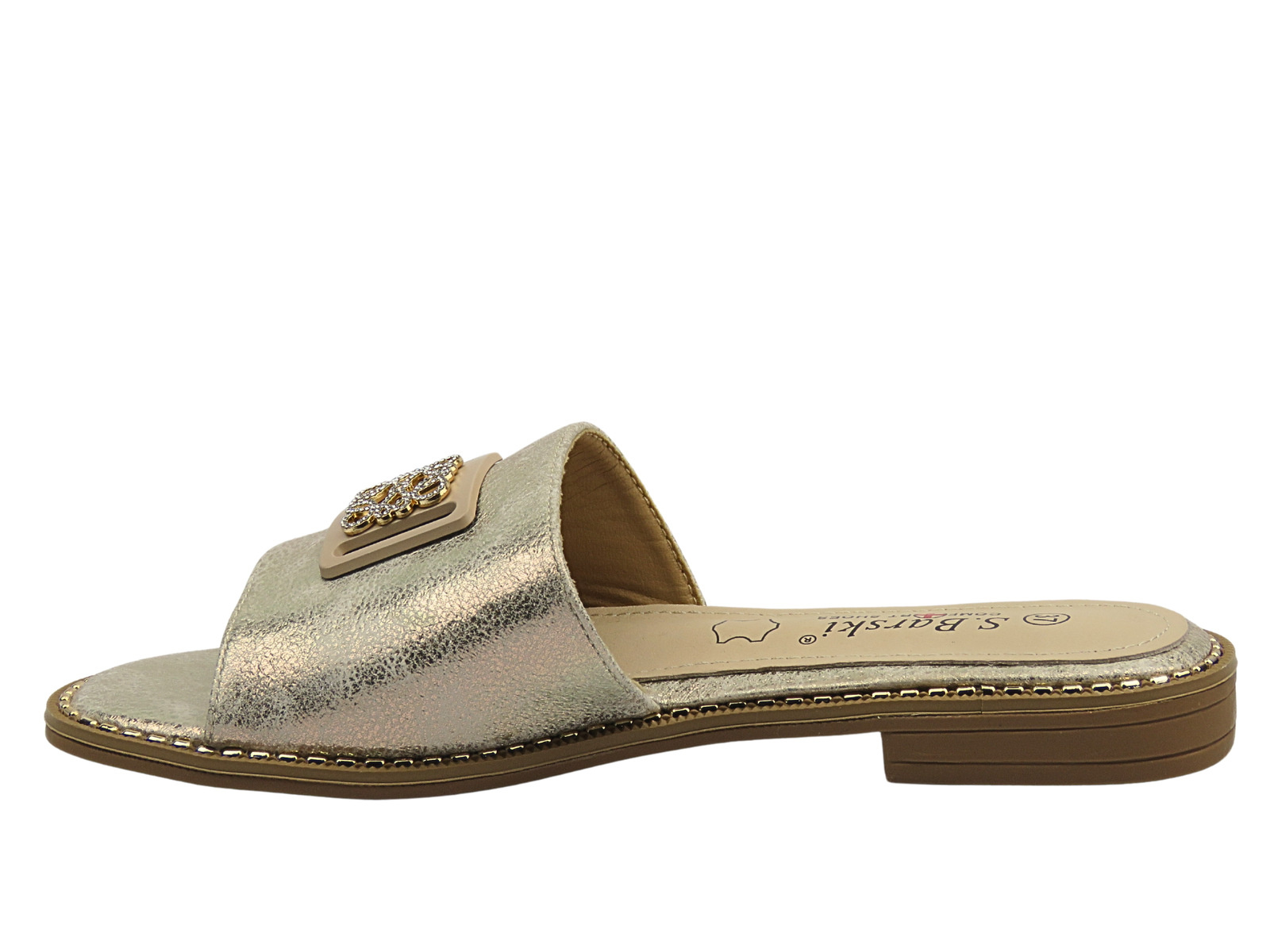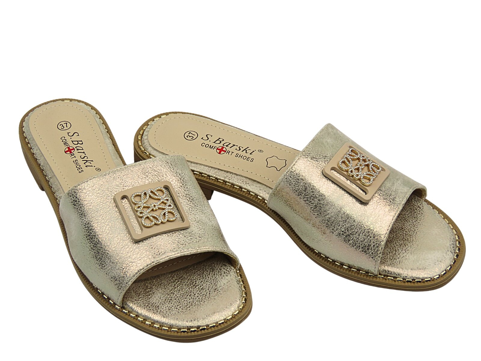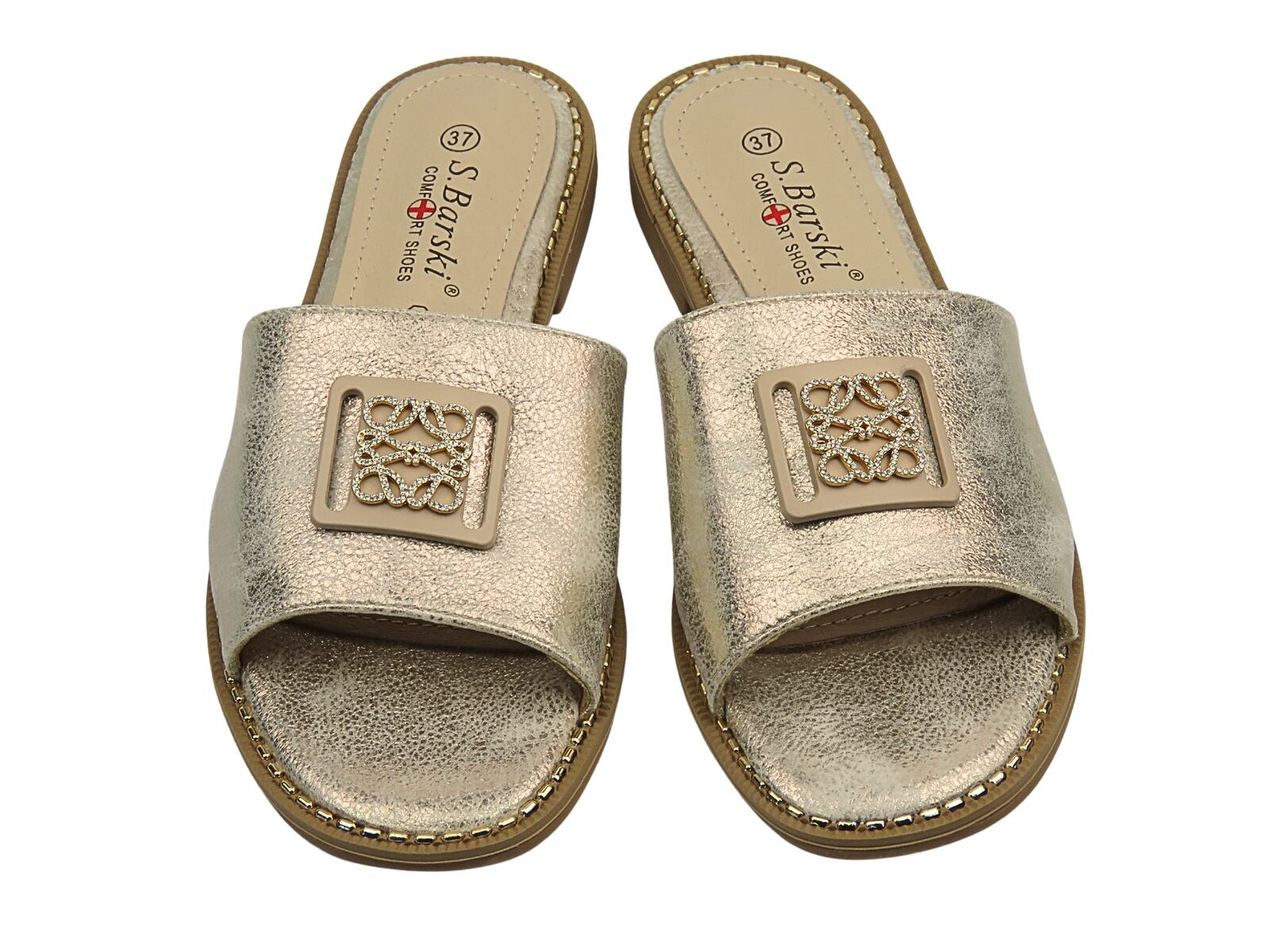 Klapki damskie - S. Barski KV51-089, złote ozdobna klamra