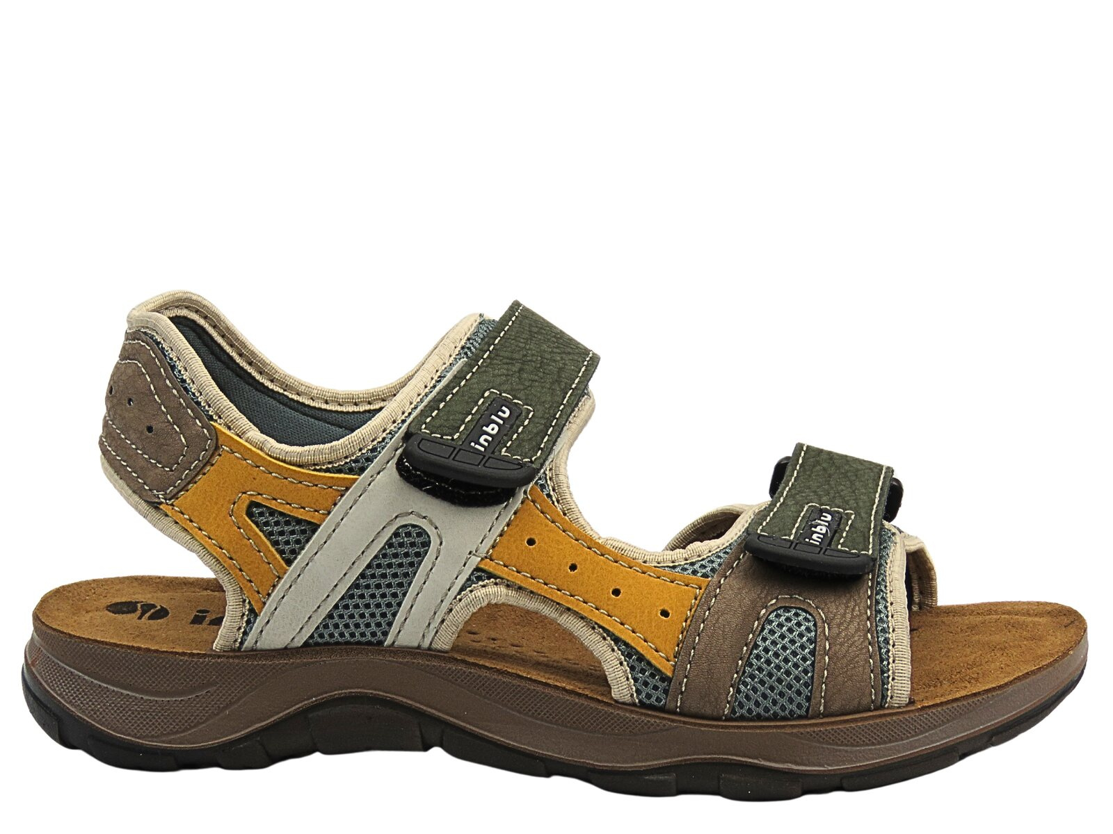 Praktyczne, wygodne i wyróżniające się stylistycznie – sandały męskie Inblu TO-1E w wersji wielobarwnej to doskonały wybór na cieplejsze dni, dla panów ceniących komfort i oryginalny wygląd.