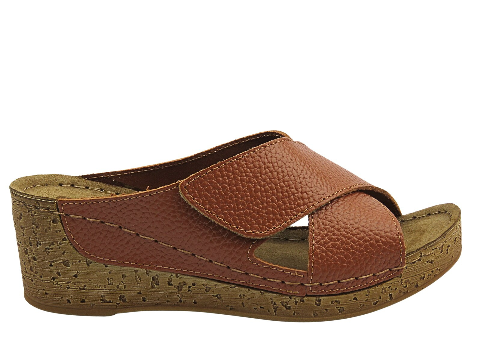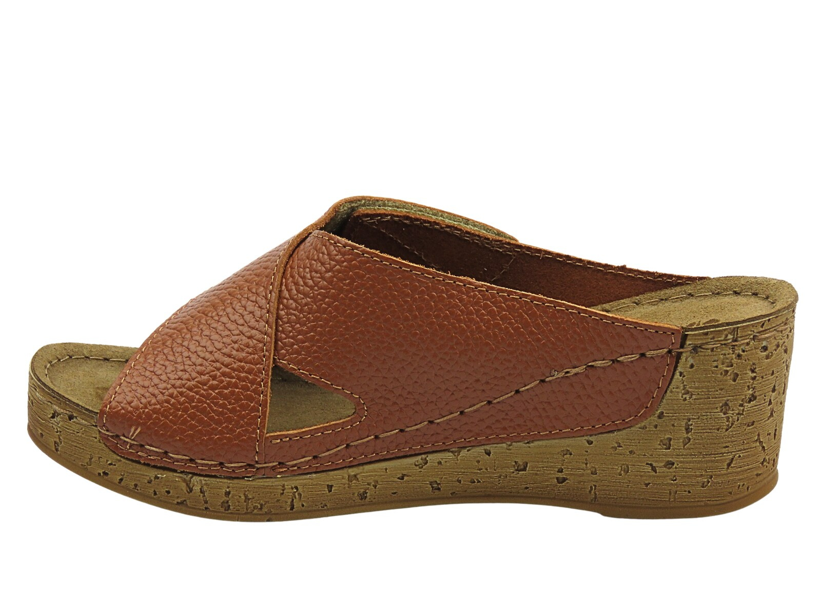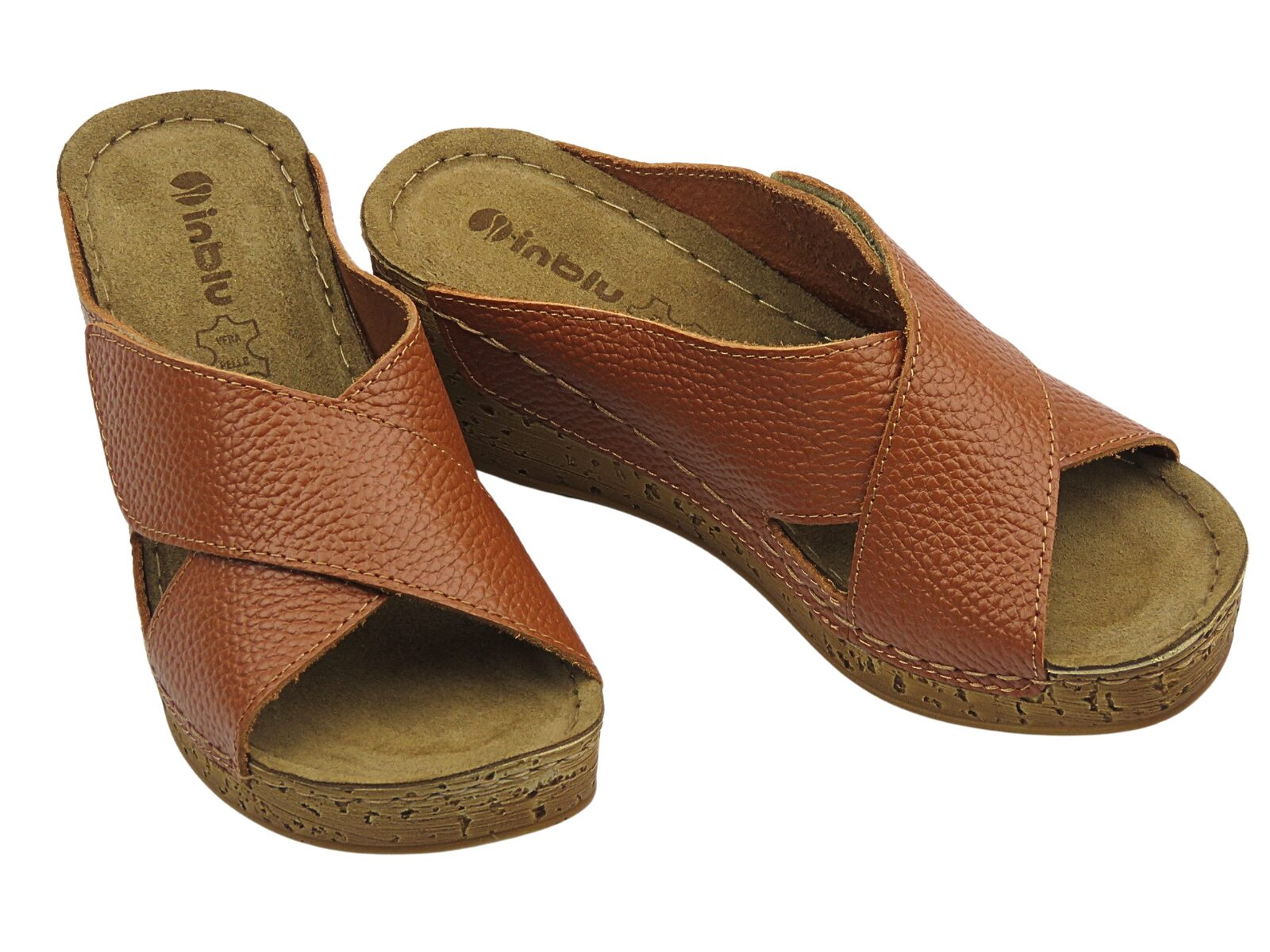 Klapki damskie na koturnie brązowe INBLU NG-4G