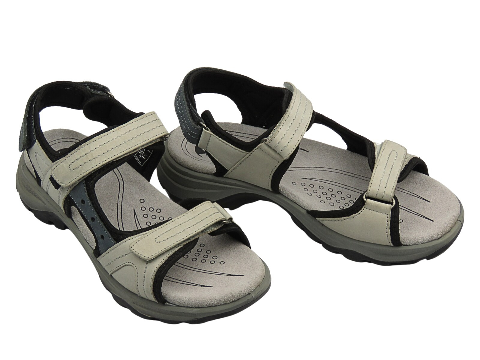 Sportowe sandały damskie renomowanej marki Trekking to niezawodny wybór dla kobiet ceniących aktywny styl życia i wygodę każdego dnia. Wykonane ze skóry naturalnej w stonowanym, szarym kolorze, doskonale sprawdzą się podczas spacerów, wycieczek czy wakacyjnych wypraw. Miękka skórzana wkładka, profilowana wkładka skutecznie dopasowuje się do kształtu stopy, zapewniając komfort nawet przy dłuższym użytkowaniu. Trzypunktowe zapięcia na rzepy pozwalają precyzyjnie dopasować obuwie do stopy, gwarantując stabilność i bezpieczeństwo w ruchu.