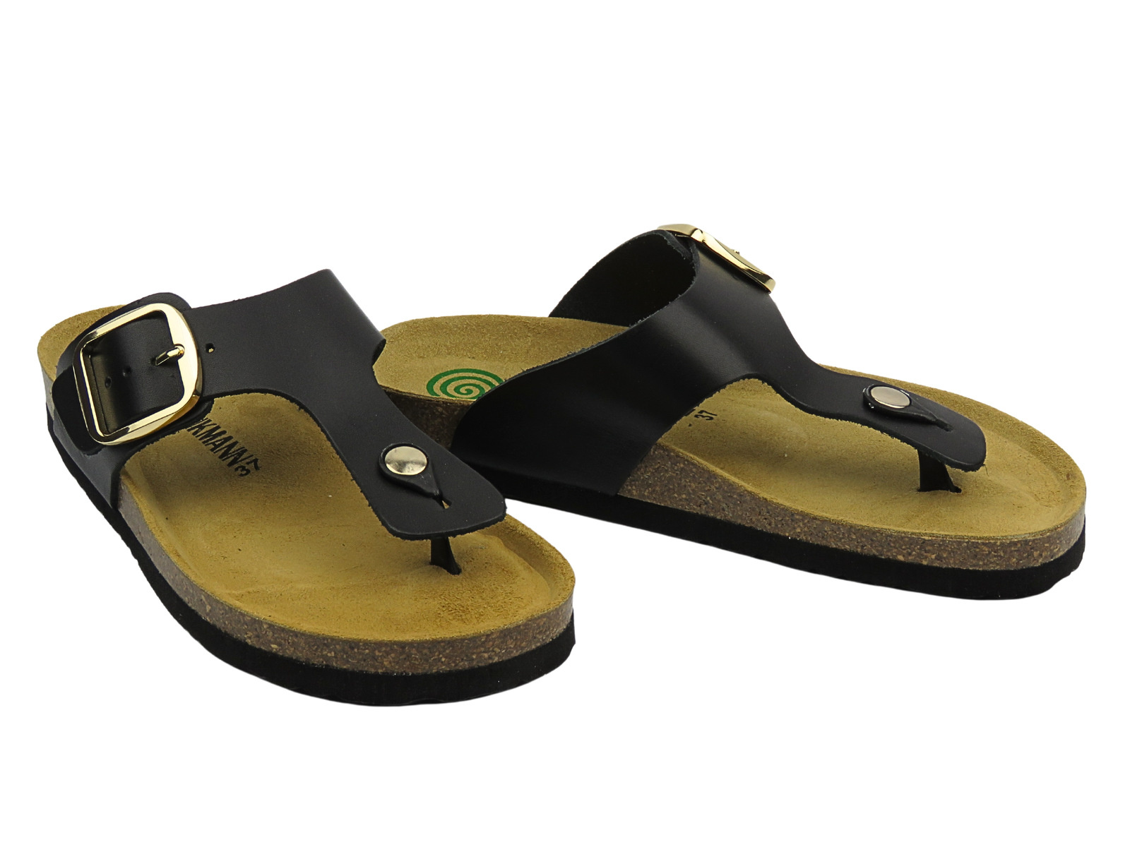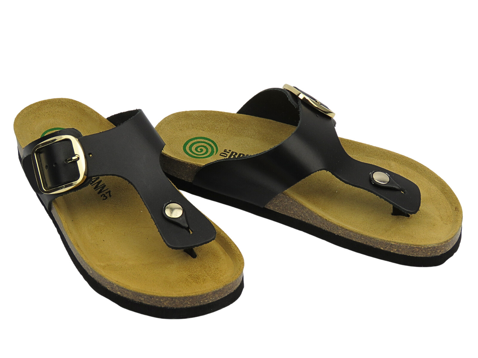 Japonki damskie z szerokimi paskami - Dr Brinkmann 700681-01, czarne