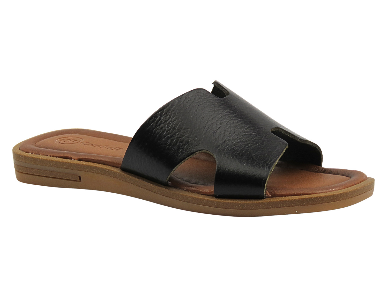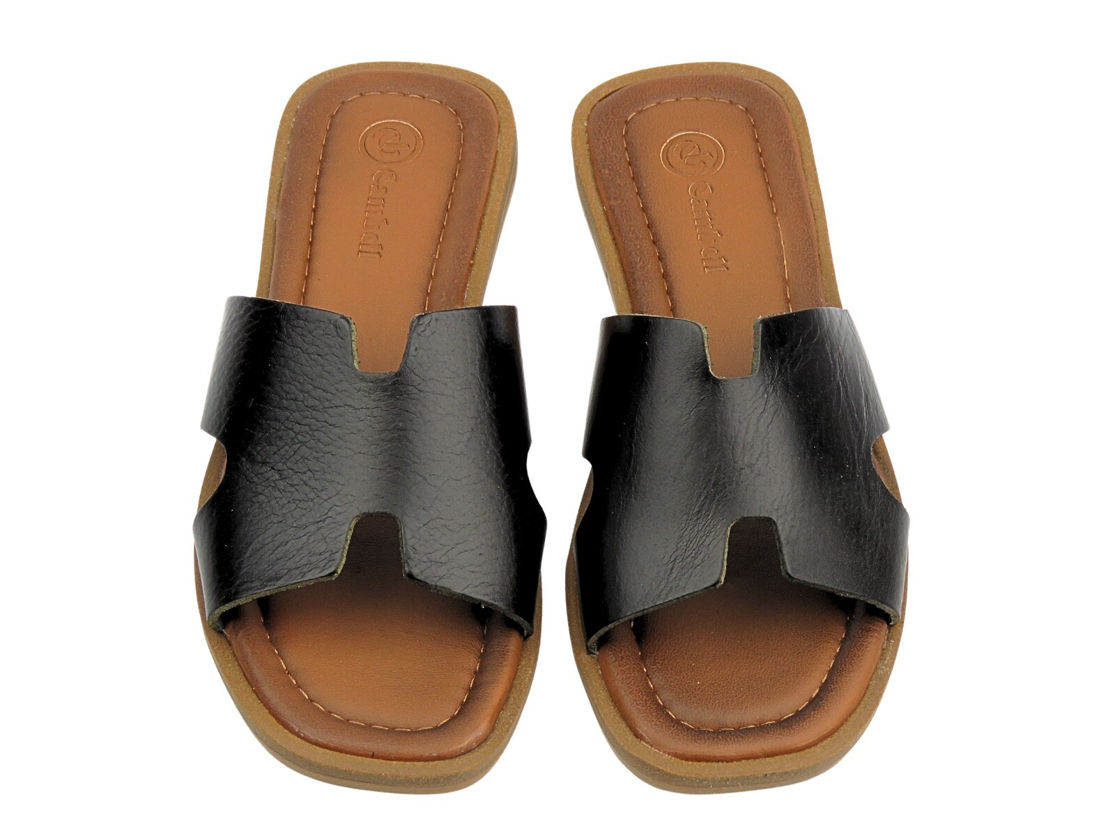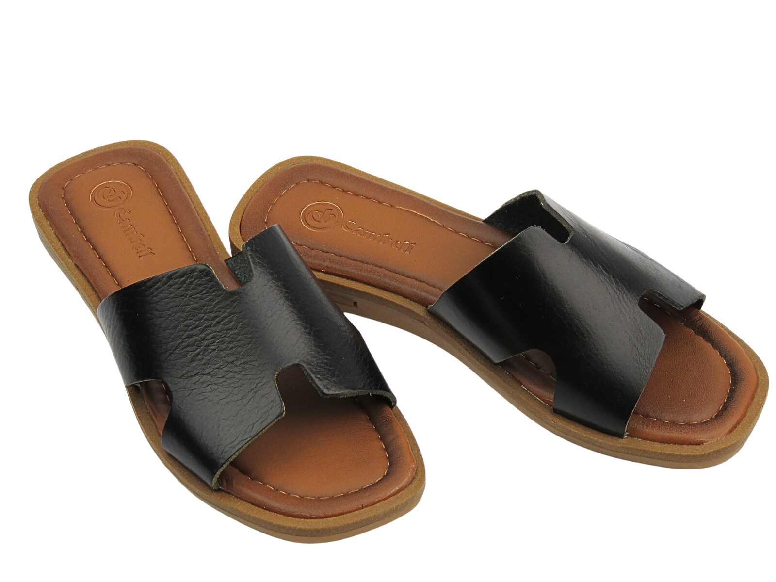 Klapki damskie Cambell, wykonane w całości z naturalnej skóry, zachwycają nie tylko jakością, ale również ponadczasowym designem. Ich szeroka, jednolita cholewka subtelnie okrywa stopę, tworząc harmonijne połączenie elegancji i codziennego komfortu.