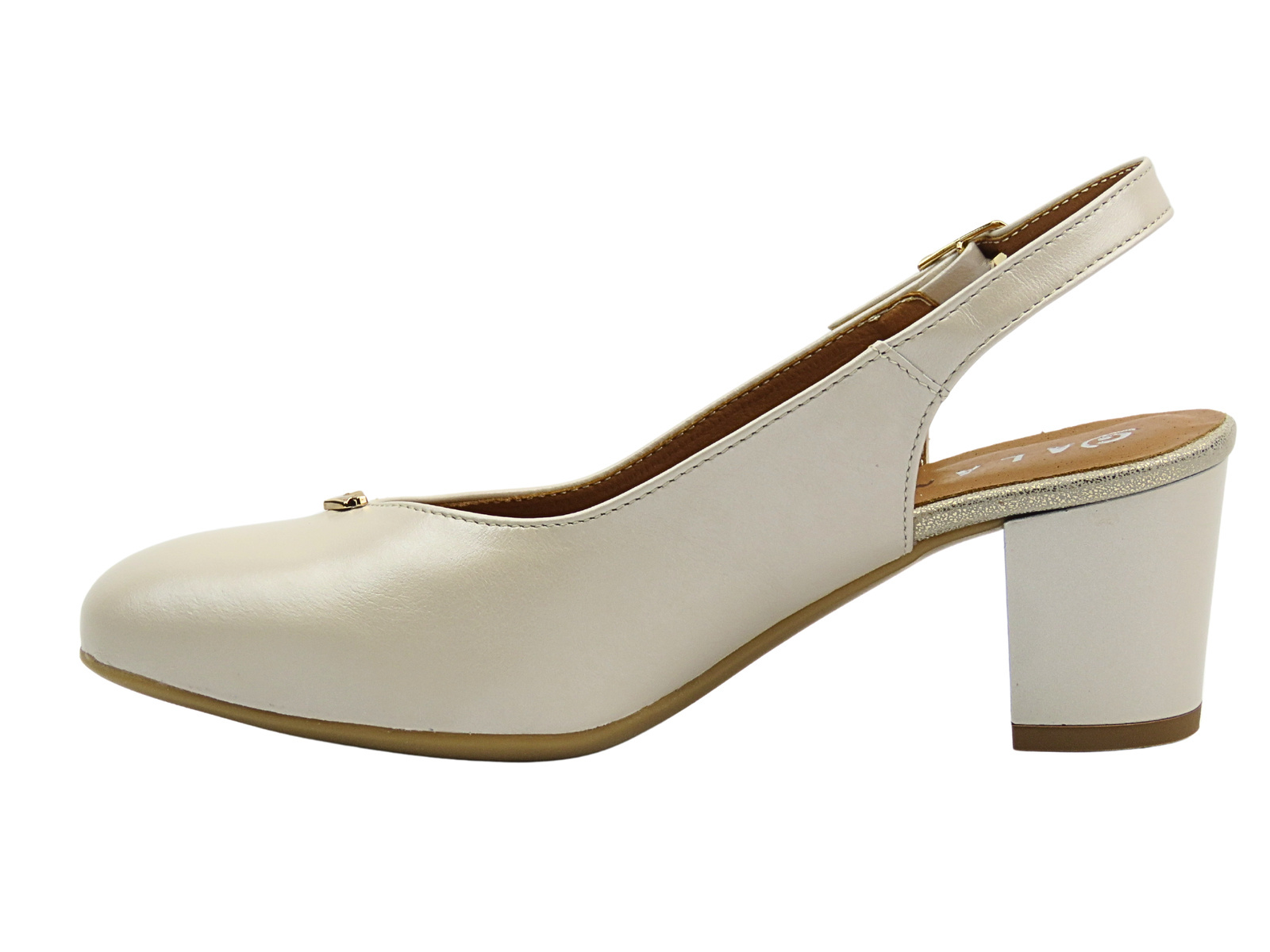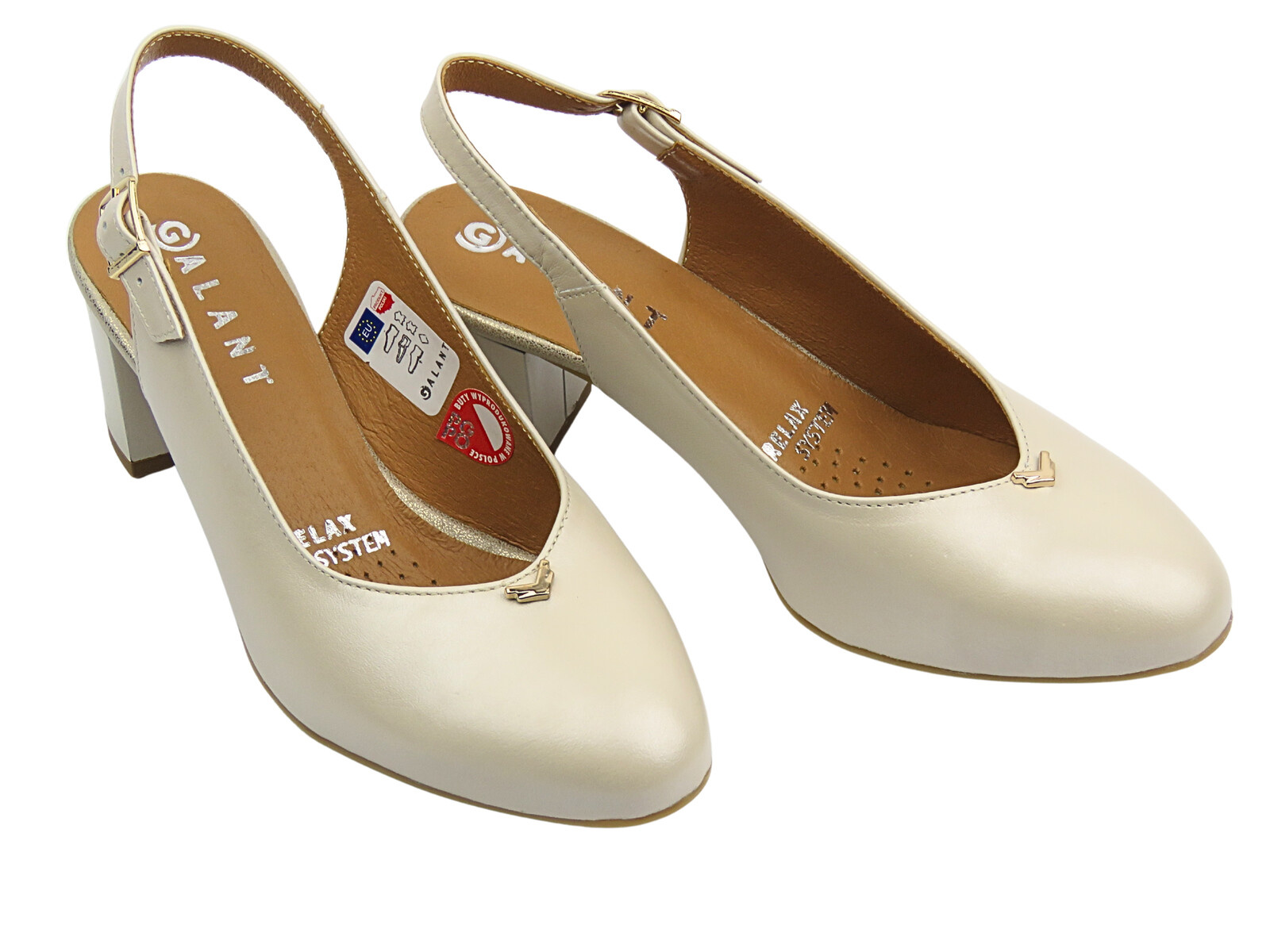Stabilny, szeroki obcas zapewnia wygodę noszenia przez wiele godzin, a miękka skórzana wkładka gwarantuje dopasowanie i amortyzację.