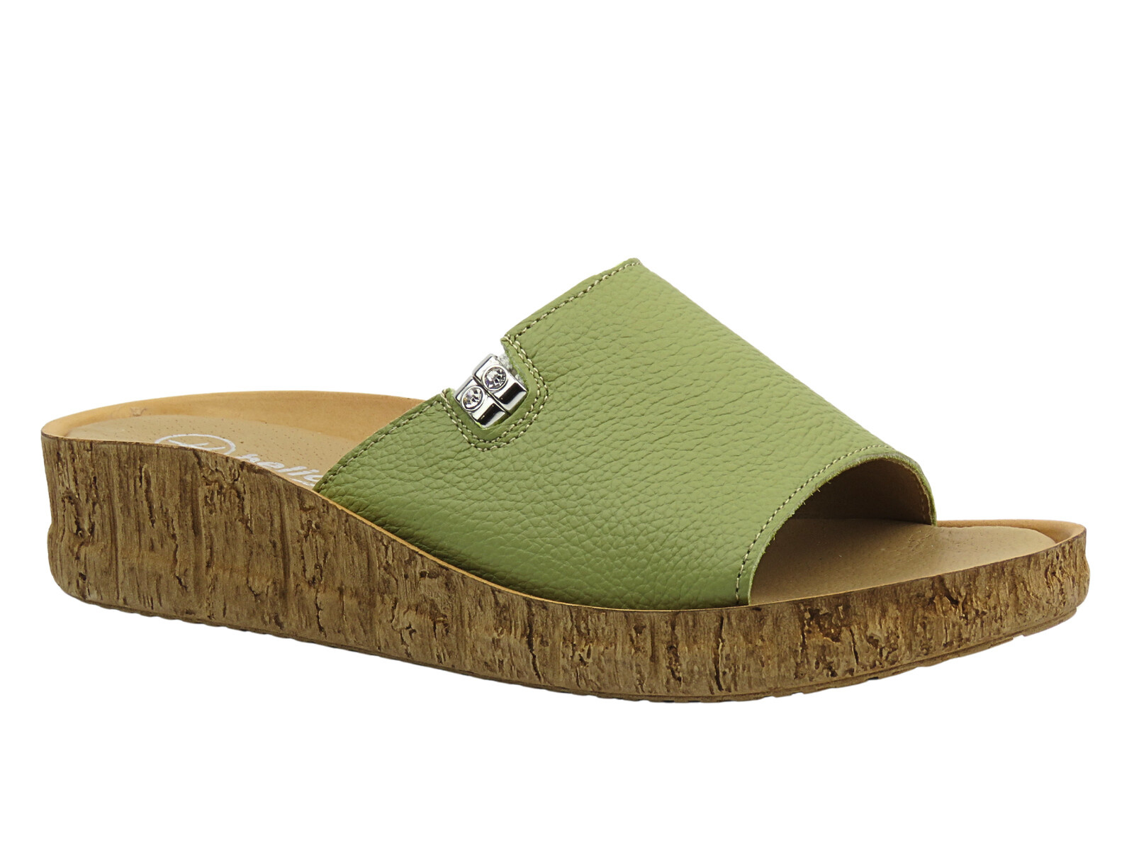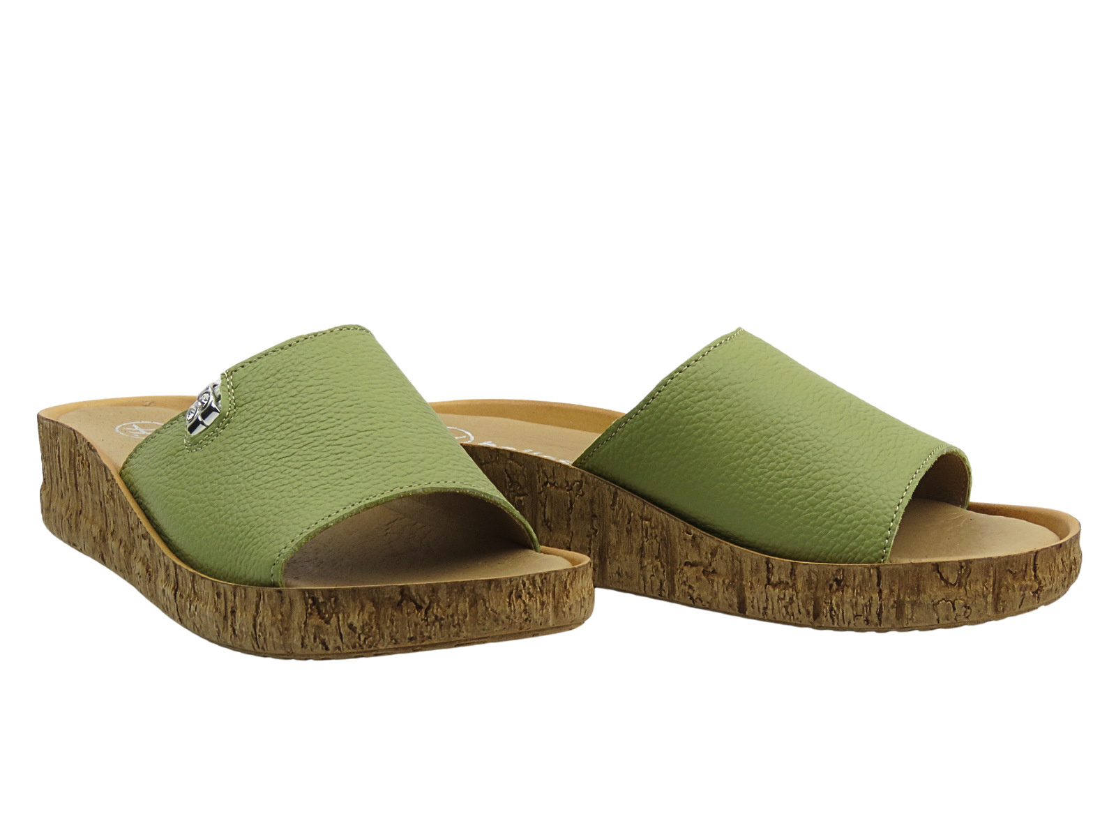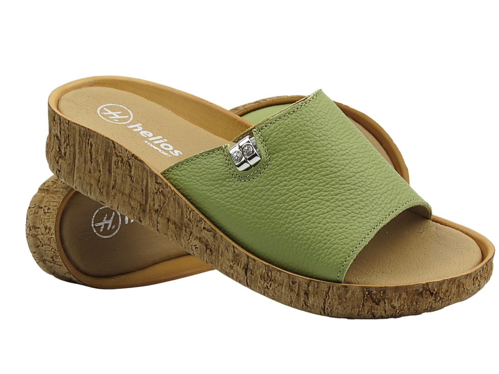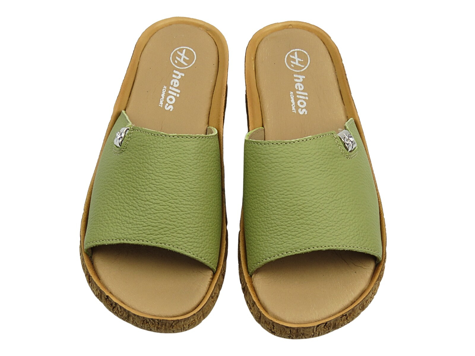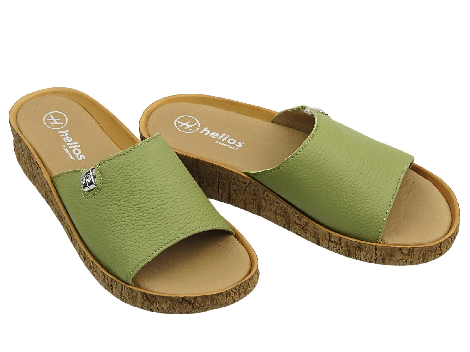 Opinie o Klapki damskie skórzane płaskie zielone Helios Komfort 130