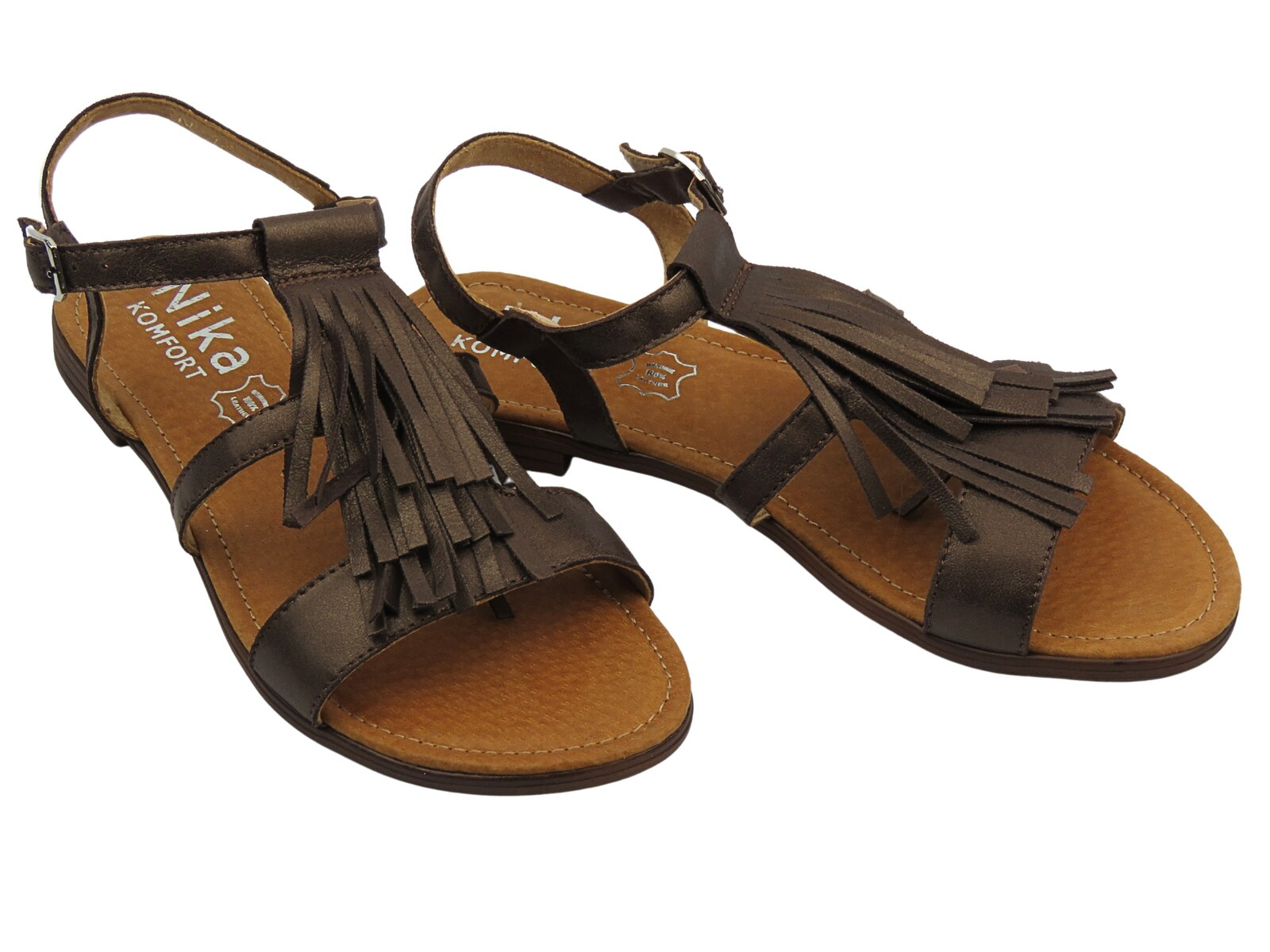 Skórzane sandały damskie brązowe Nika Komfort 1219