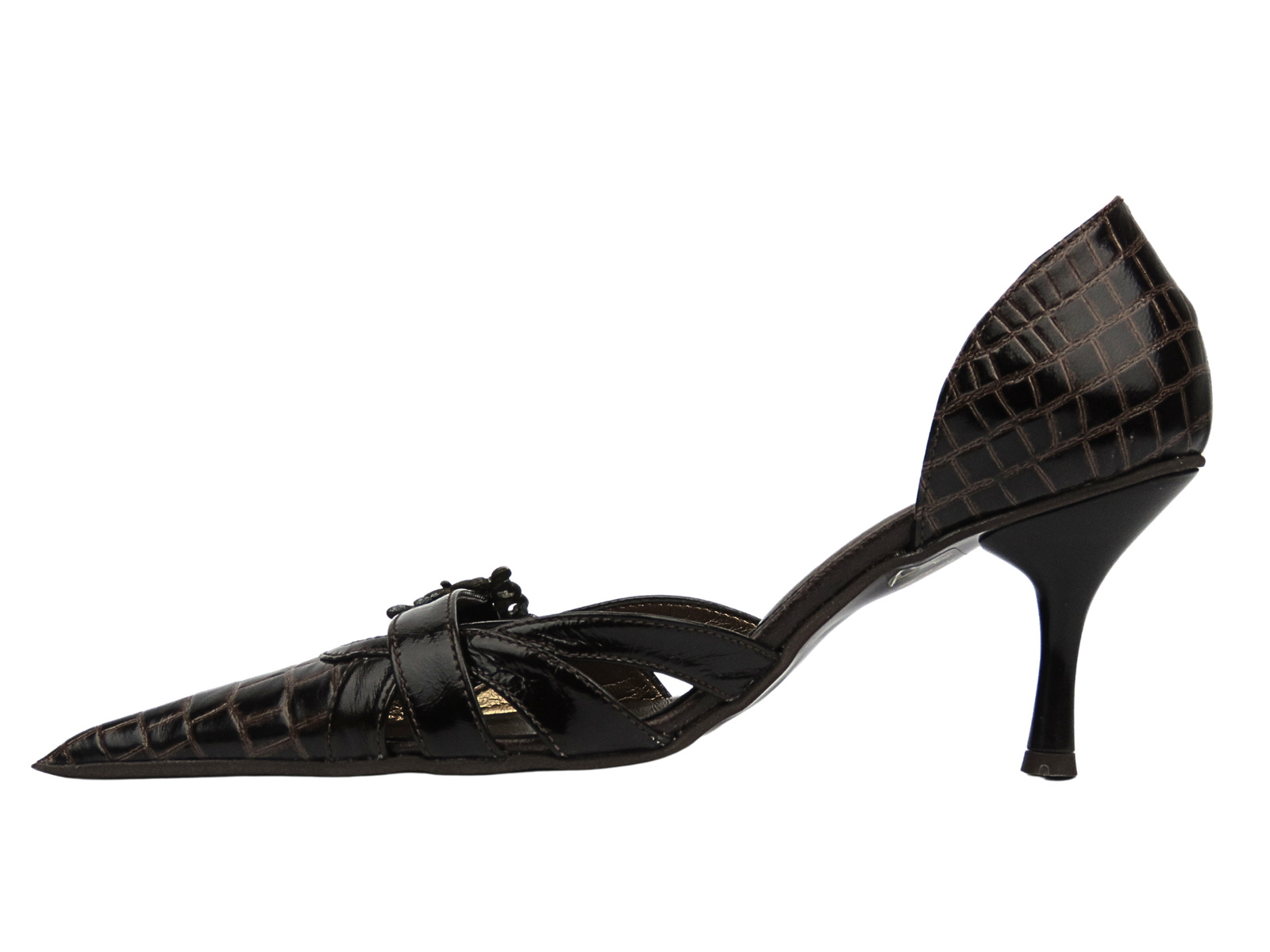 Subtelny fason z noskiem w szpic optycznie wysmukla sylwetkę, a stonowany brązowy kolor pozwala na łatwe dopasowanie do wielu stylizacji – zarówno biurowych, jak i okazjonalnych.