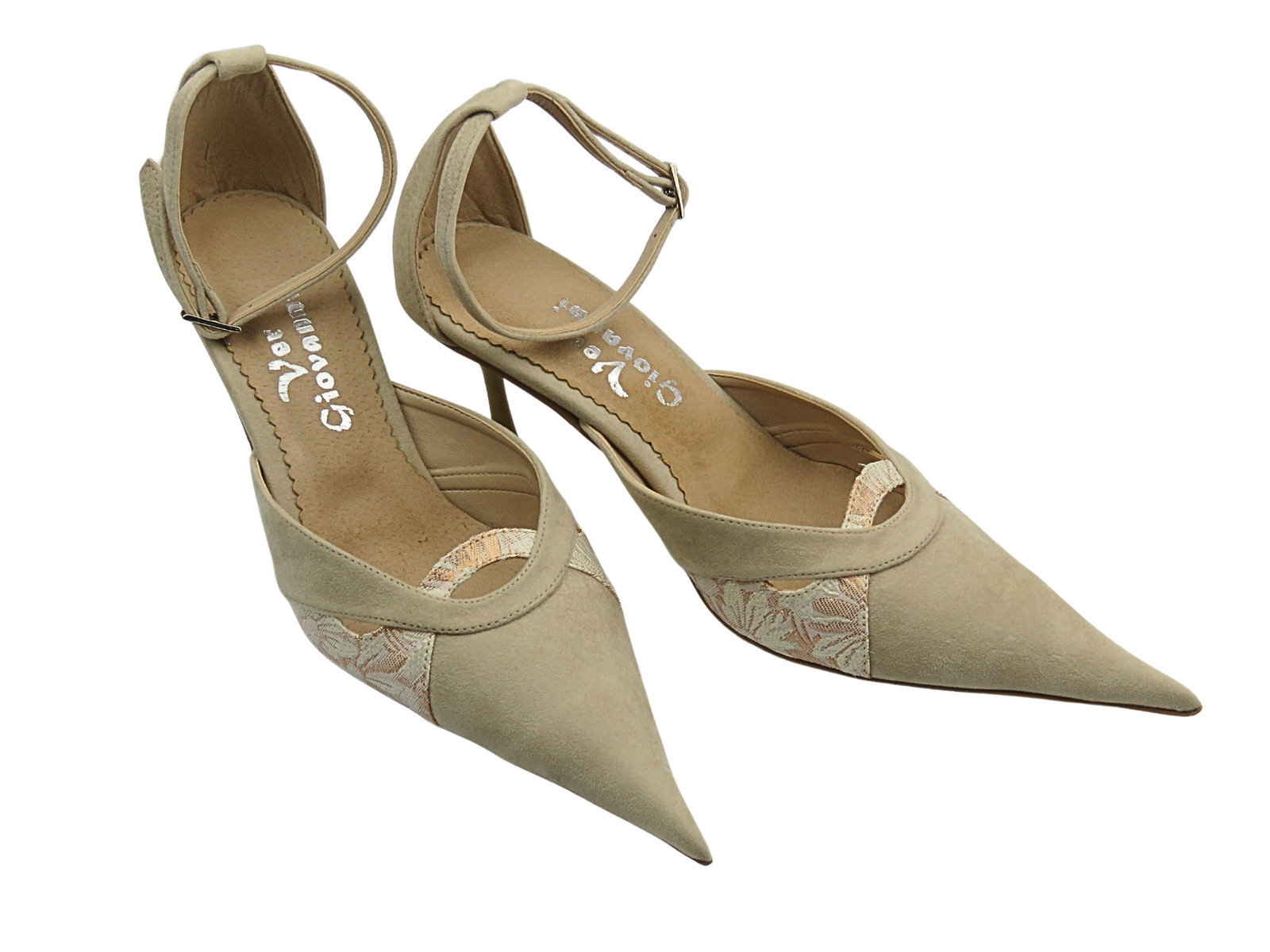 Czółenka na szpilce beżowe z regulowanym paskiem Ver Giovanni 527/13/M