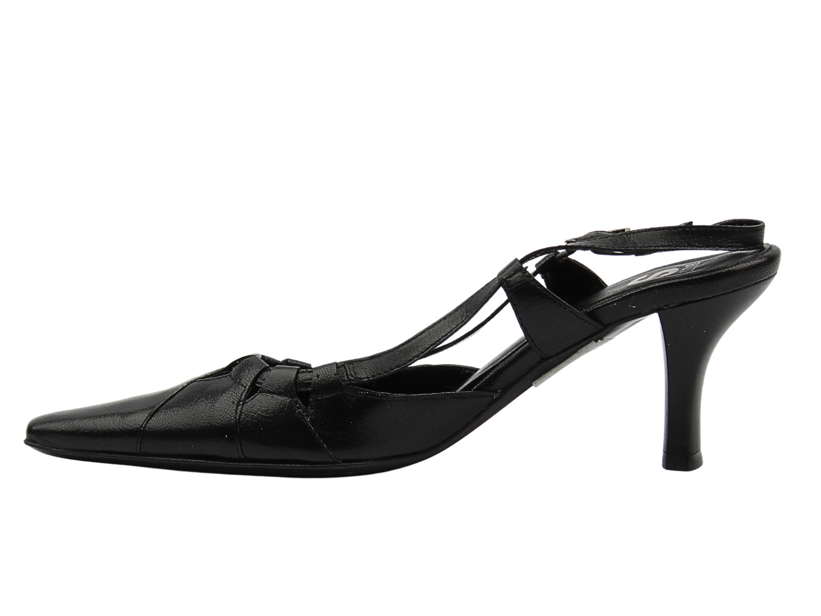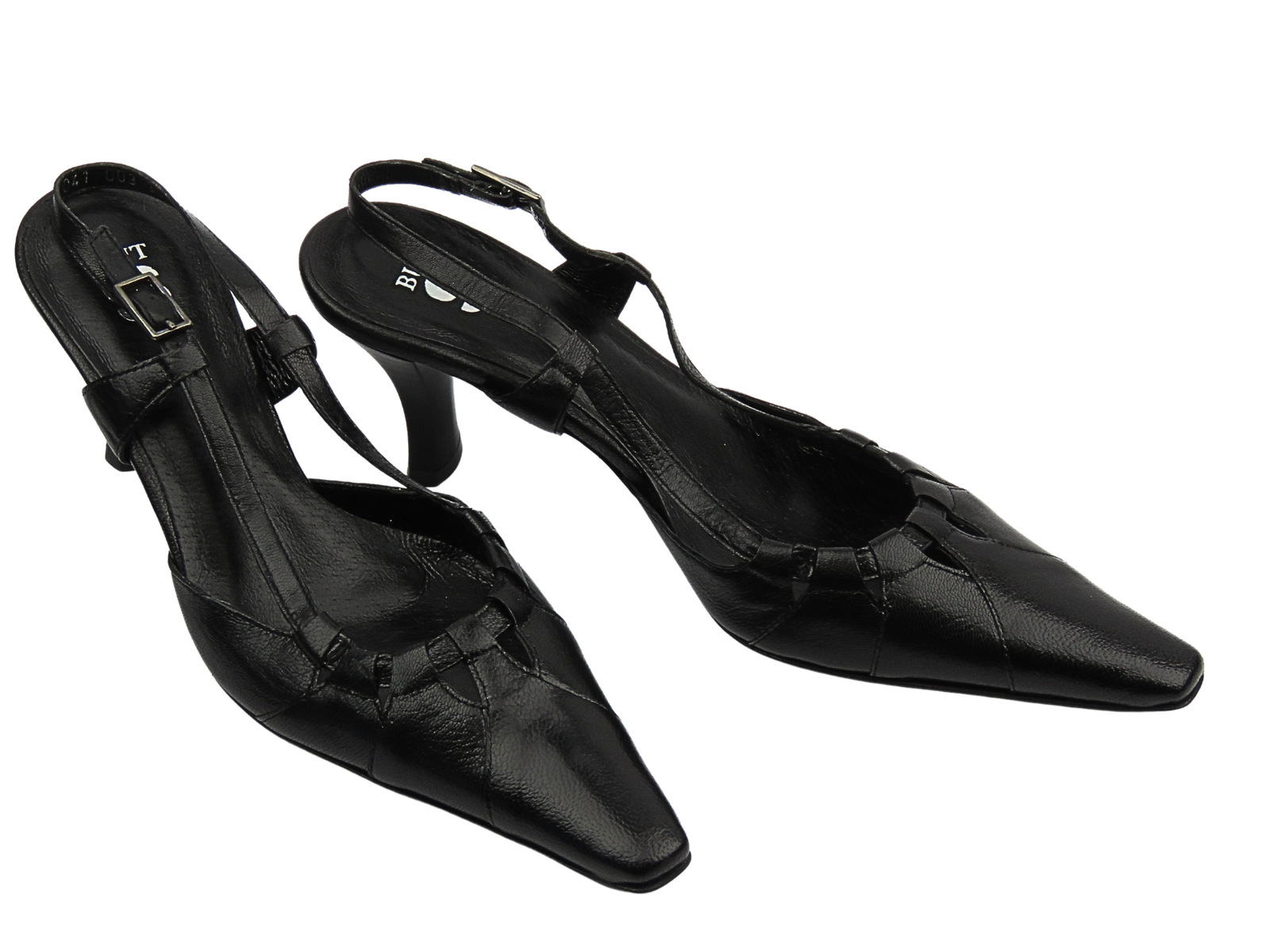 Skórzane czółenka z odkrytą piętą czarne But-S l041B