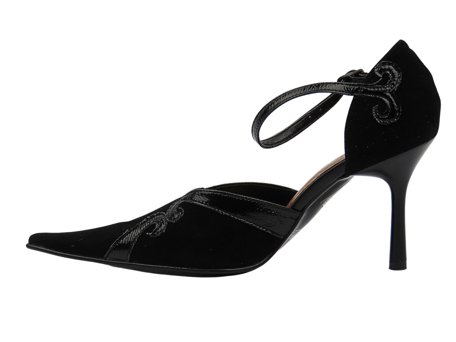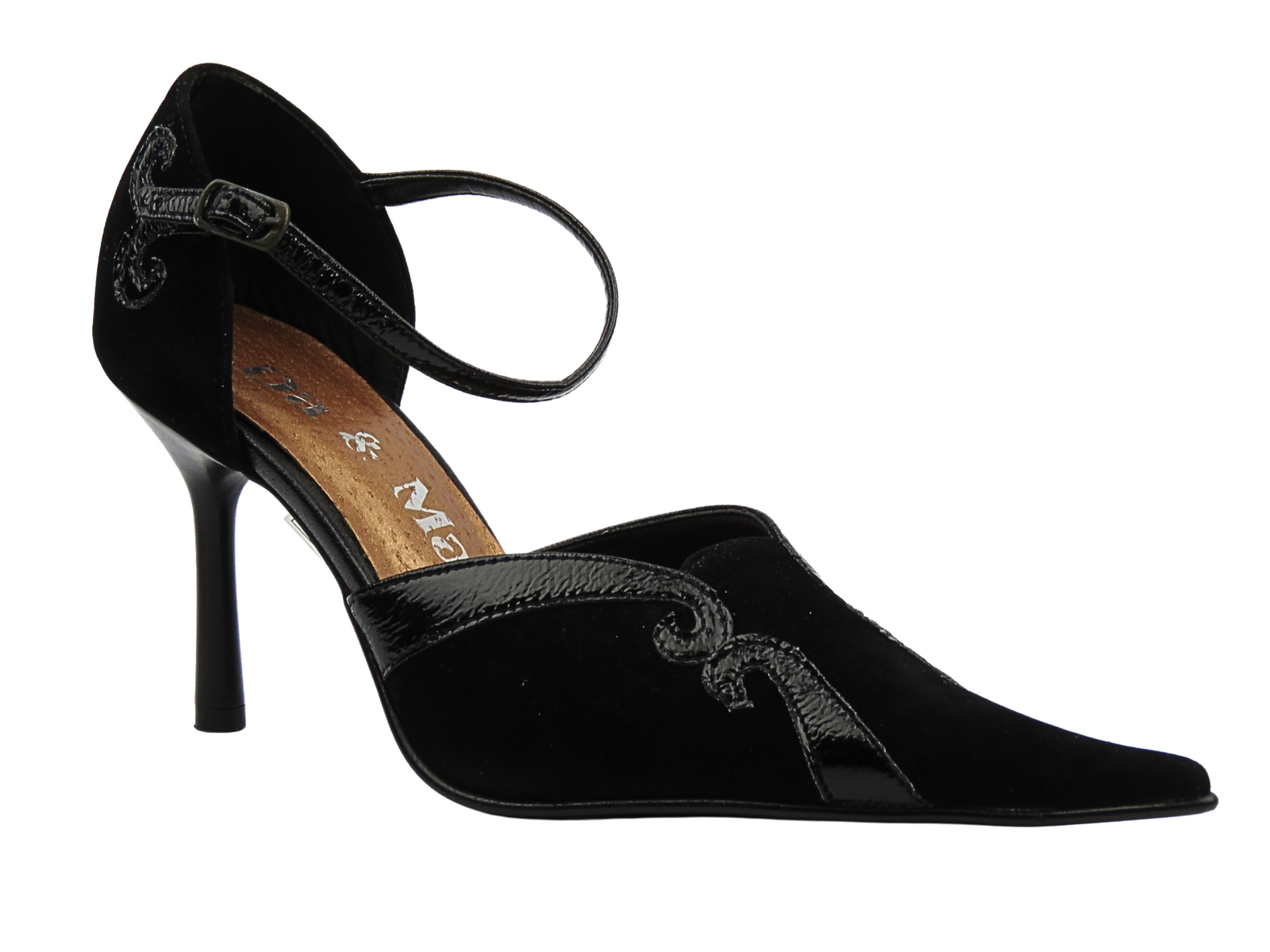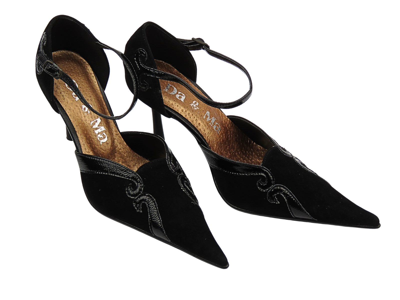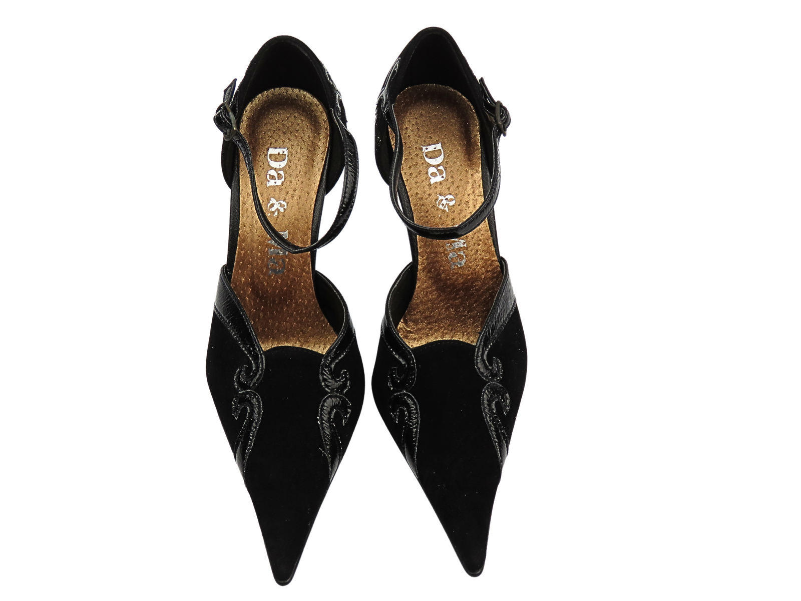 DA&MA 808 to model, który łączy klasyczną formę z subtelną ekstrawagancją. Wykonane z czarnego, lekko połyskującego weluru z lakierowanymi wstawkami i finezyjnym haftem, prezentują się niezwykle kobieco i stylowo. Idealnie sprawdzą się podczas wieczornych wyjść, uroczystości czy eleganckich przyjęć, dodając każdej stylizacji szyku i charakteru.