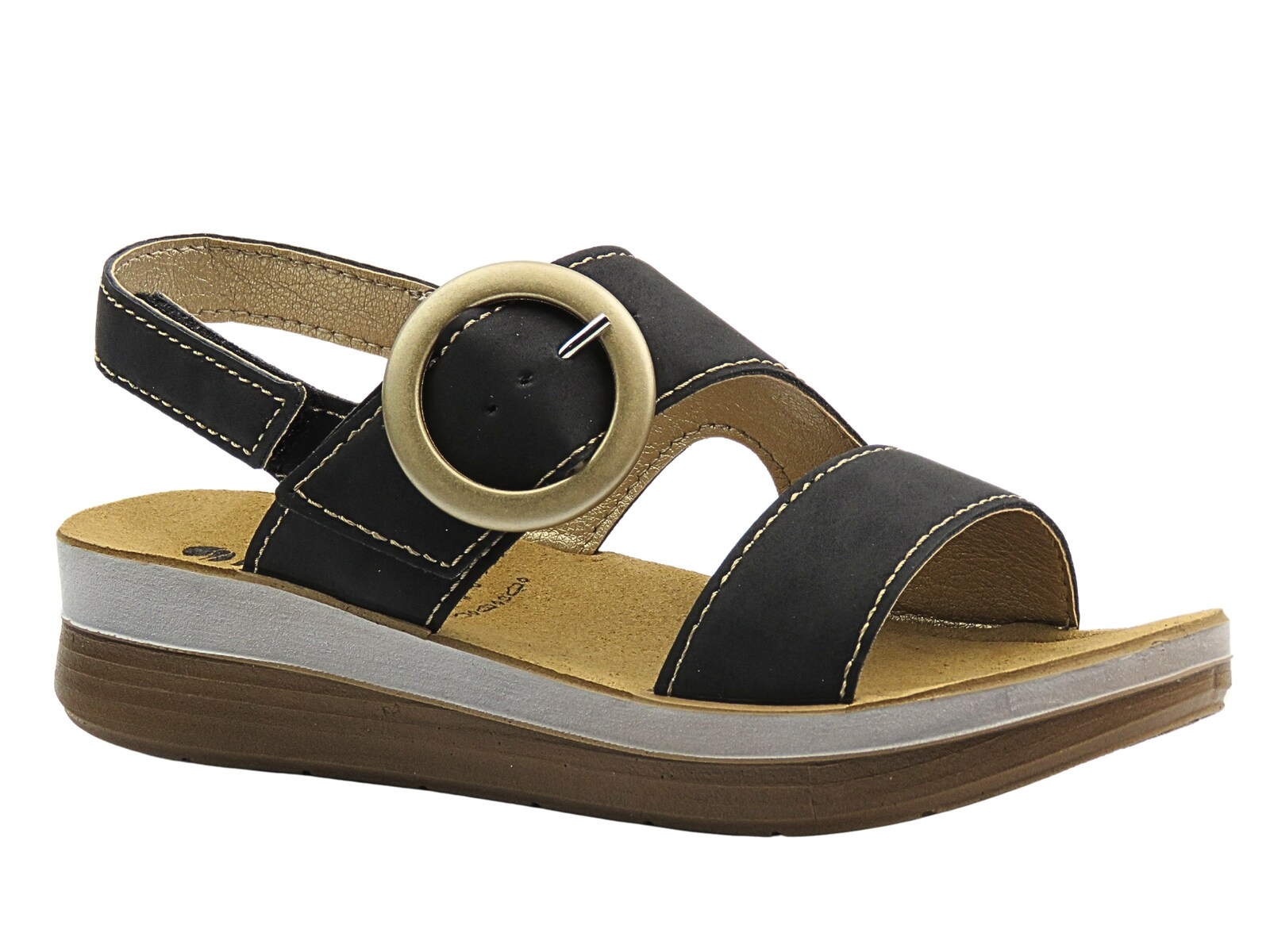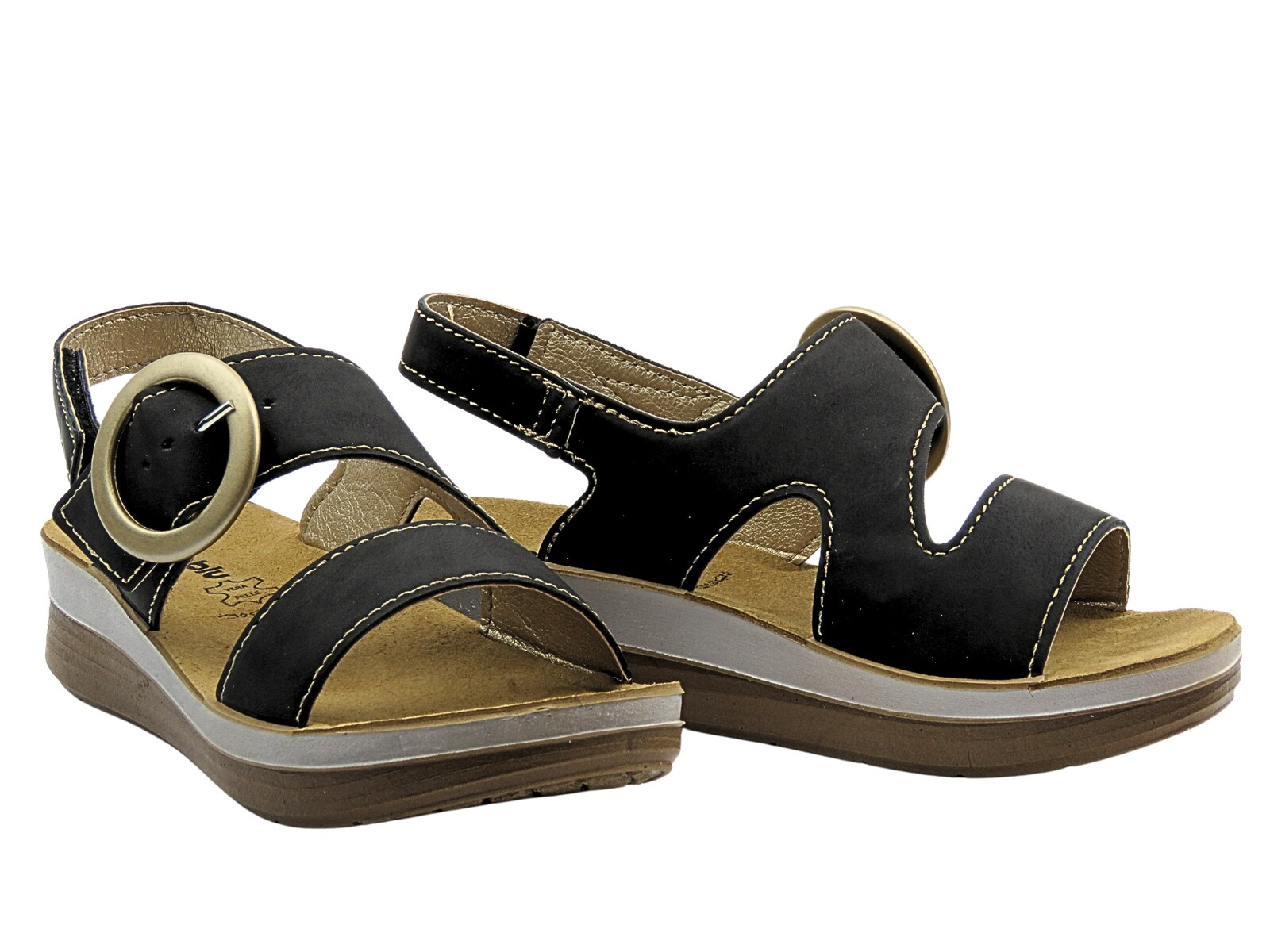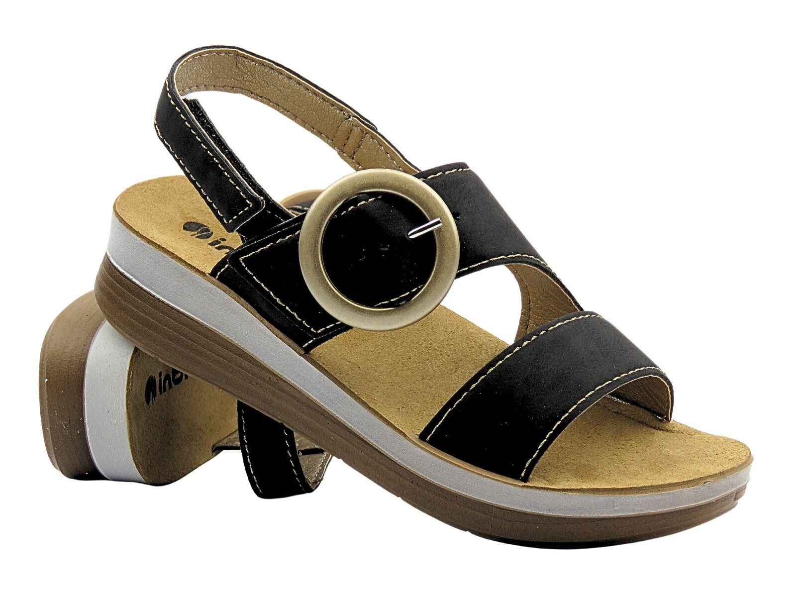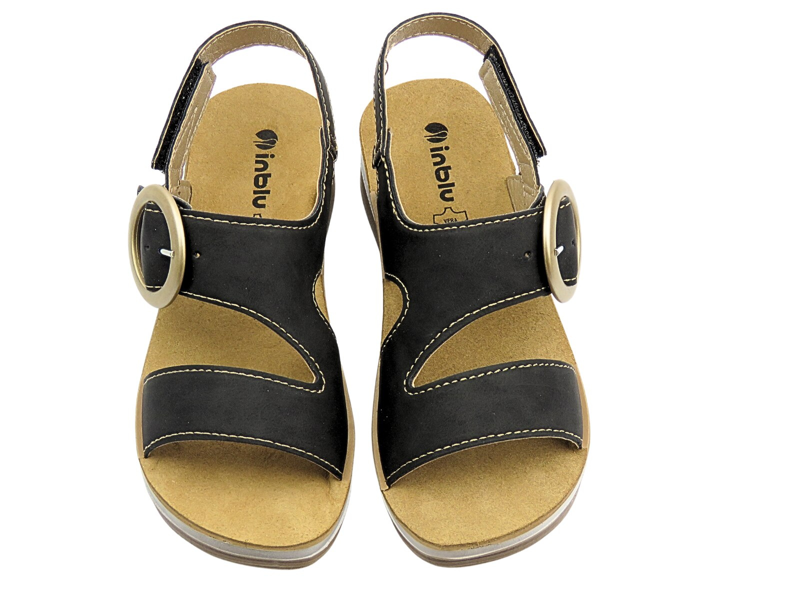 Stylowe i wygodne sandały damskie na koturnie marki INBLU, model FT-21, w uniwersalnym czarnym kolorze.