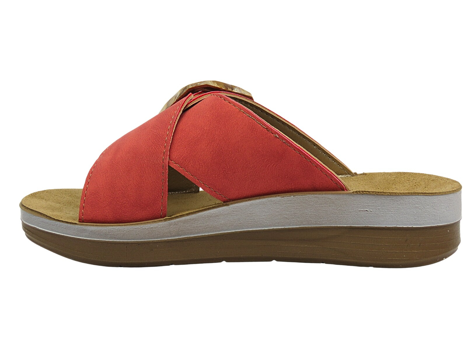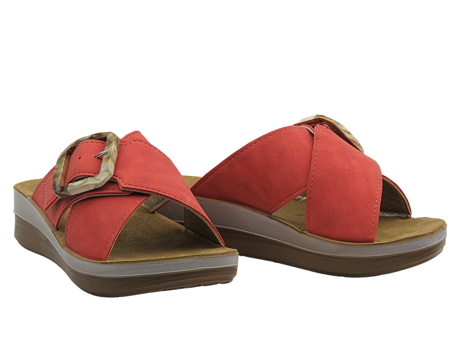 Klapki damskie INBLU FT-20 – czerwone z klamrą i skórzaną wkładką