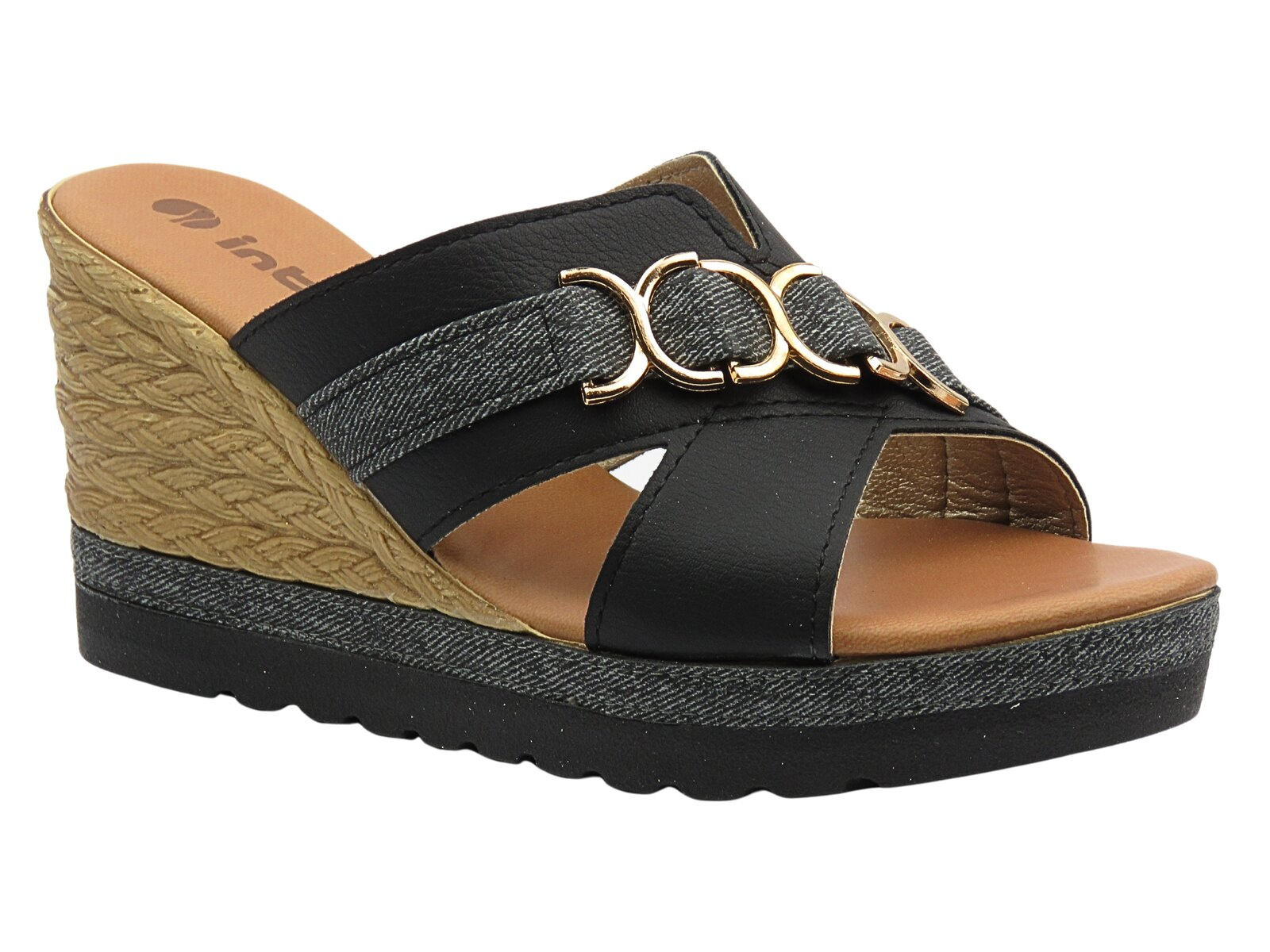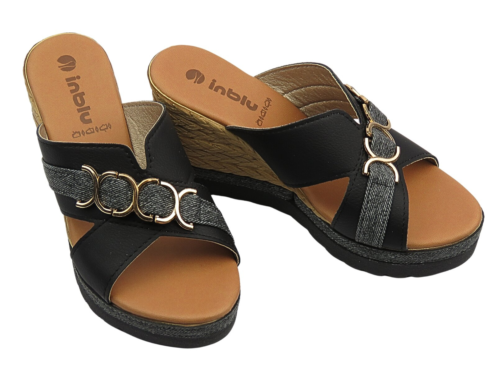 Klapki na koturnie damskie Inblu FG-40, czarne