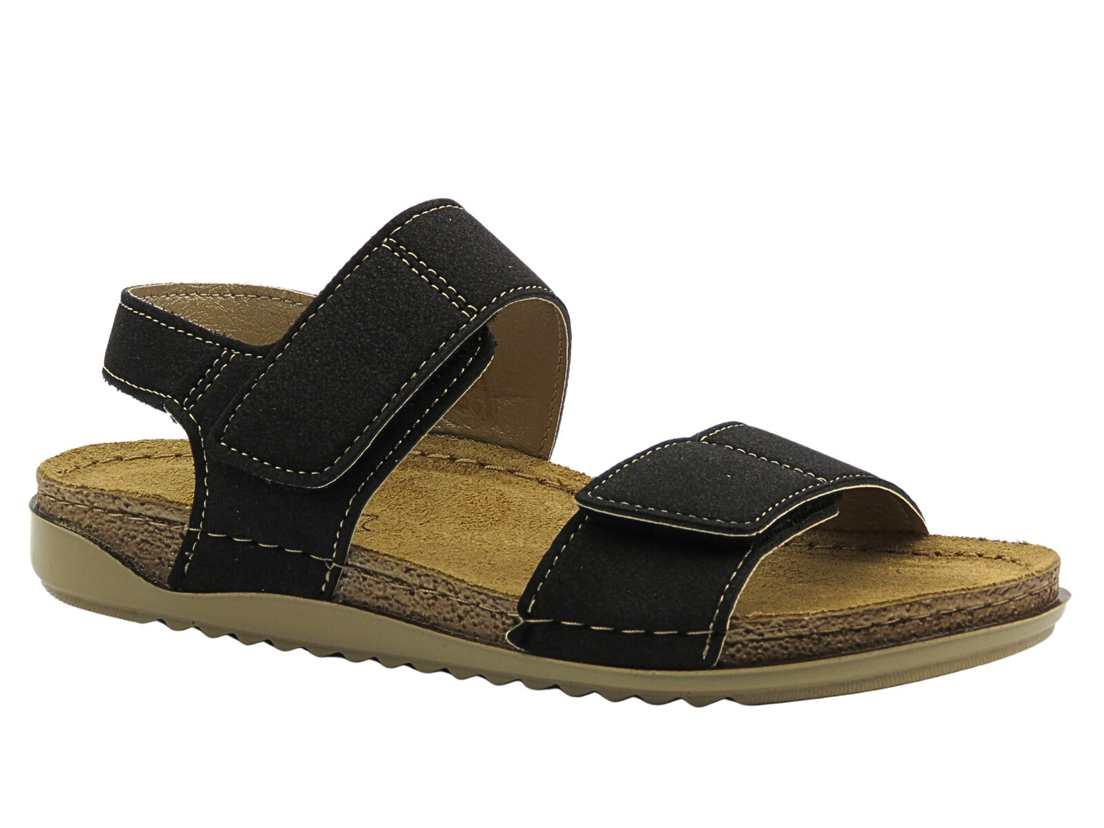 Zapięcie na rzepy umożliwia precyzyjne dopasowanie sandałów do kształtu stopy, gwarantując stabilność i wygodę noszenia. Naturalna skórzana wkładka jest miękka, oddychająca i zapewnia wysoki komfort nawet przy długotrwałym użytkowaniu. Lekka i elastyczna podeszwa z wyprofilowanym spodem amortyzuje każdy krok, wspierając naturalny ruch stopy.