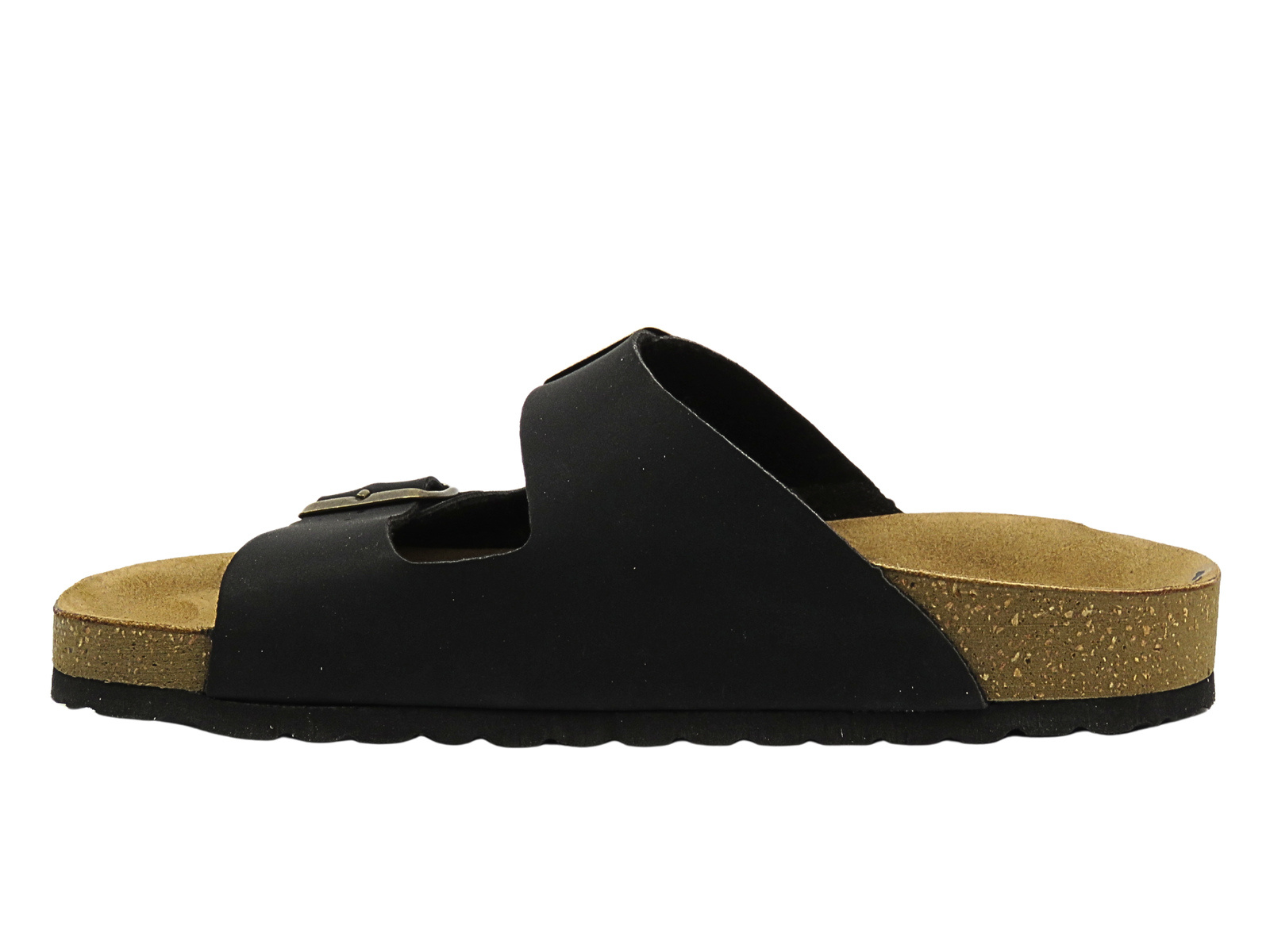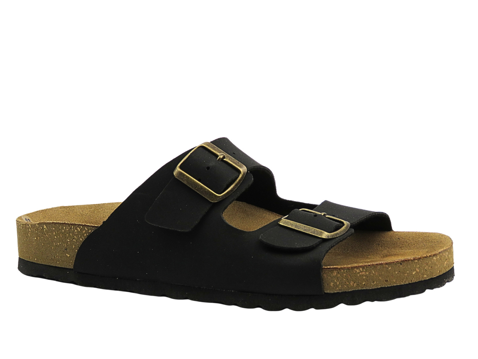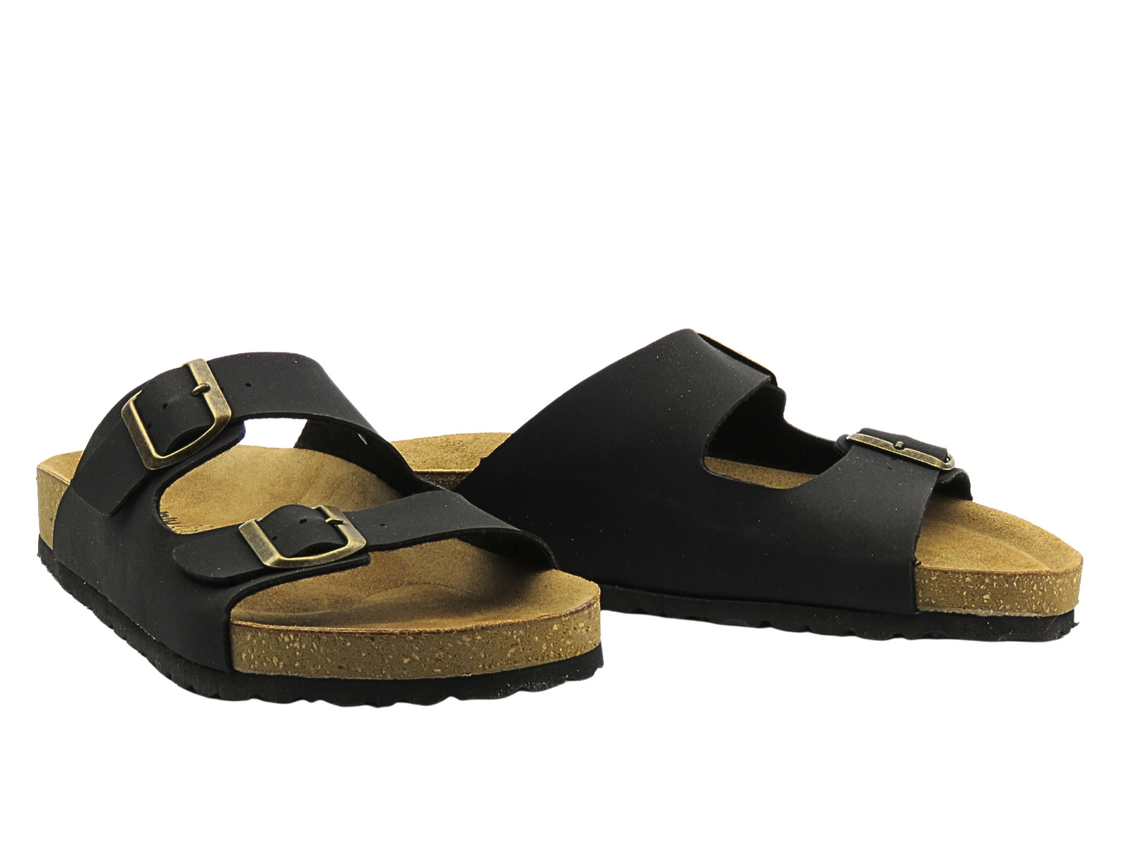 Wytrzymała cholewka z tworzywa skóropodobnego jest miękka i przyjazna dla skóry, a możliwość regulacji pasków pozwala dostosować klapki do własnych potrzeb. Wkładka wyściełana materiałem o strukturze skóry jest przyjemna w dotyku i zapewnia komfort nawet podczas długotrwałego noszenia. Profilowana podeszwa korkowa wspiera naturalne ułożenie stopy, a antypoślizgowy spód zapewnia stabilność na różnych nawierzchniach.