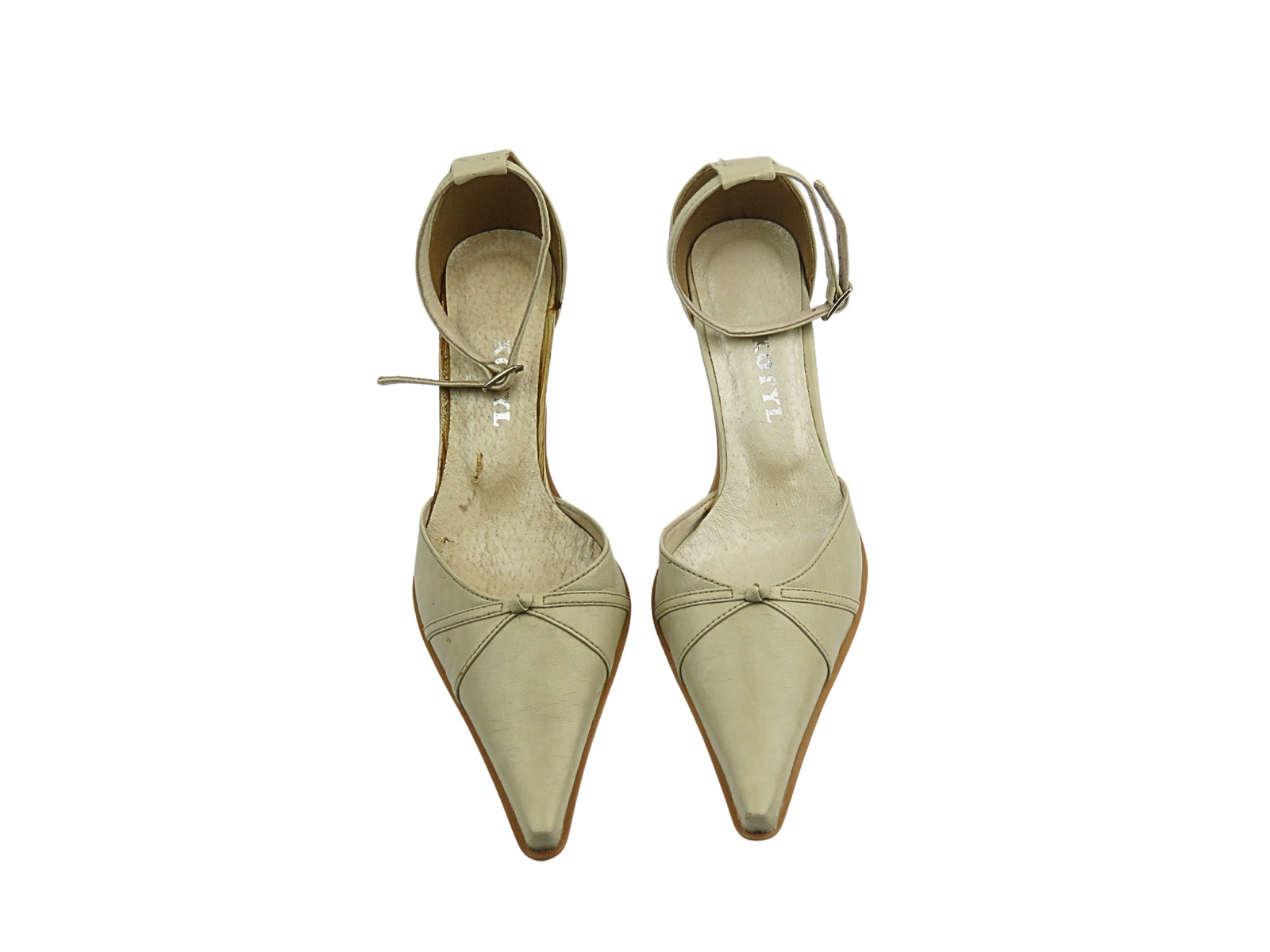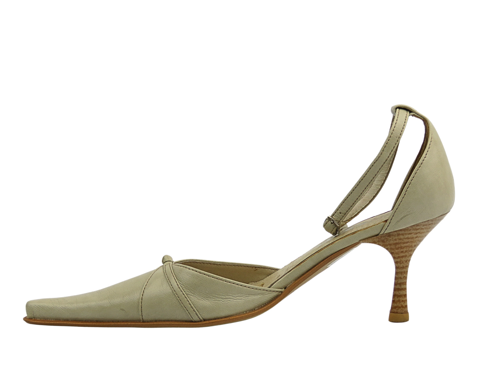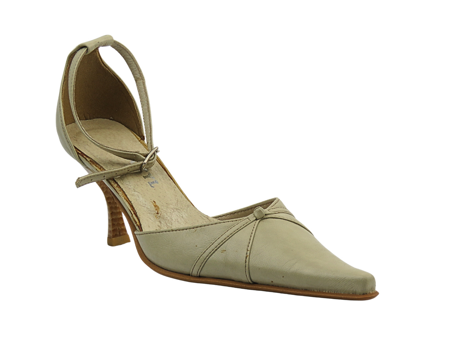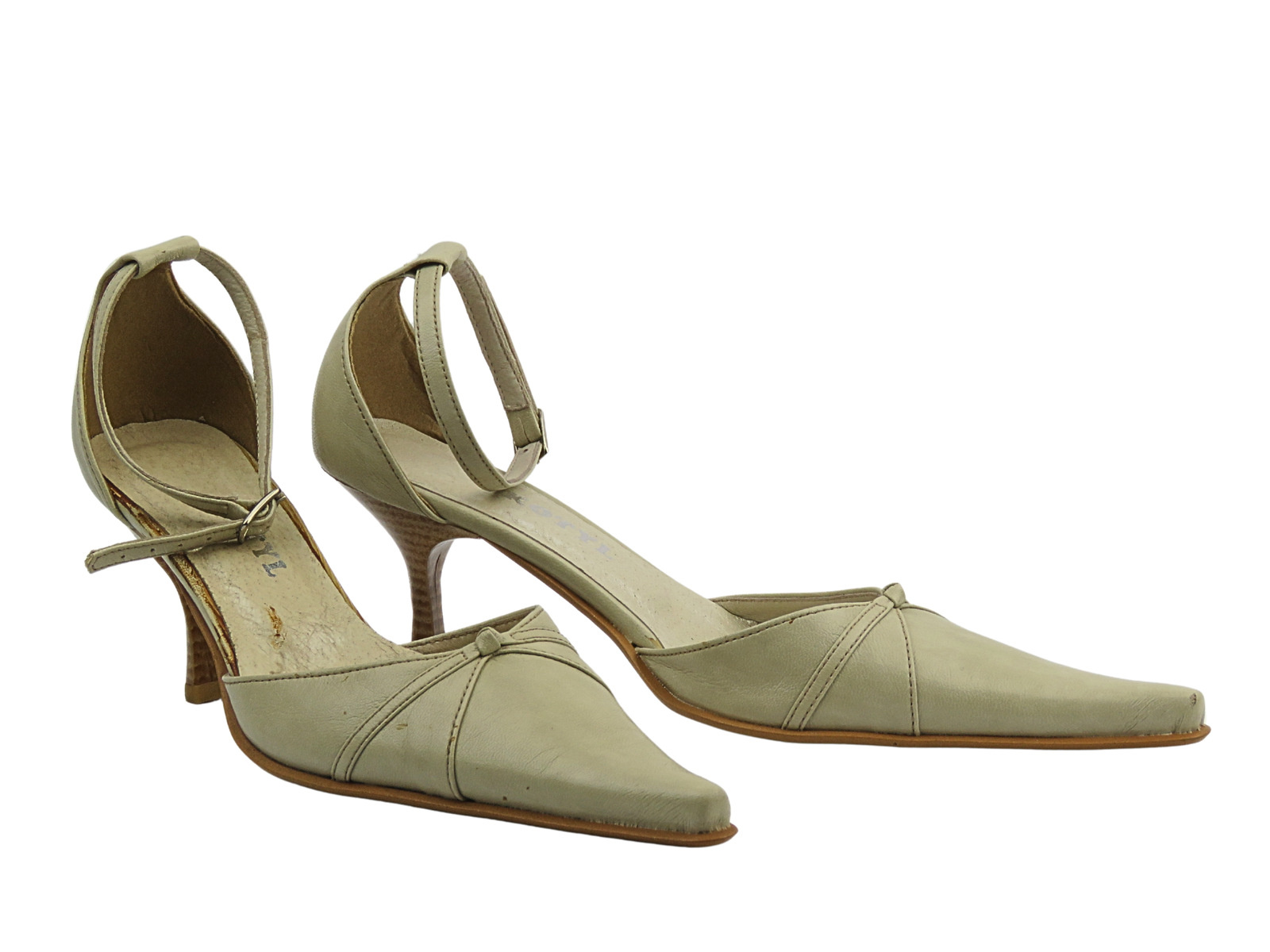 Zapięcie wokół kostki umożliwia idealne dopasowanie, jednocześnie stabilizując stopę na niewysokim obcasie typu szpilka.