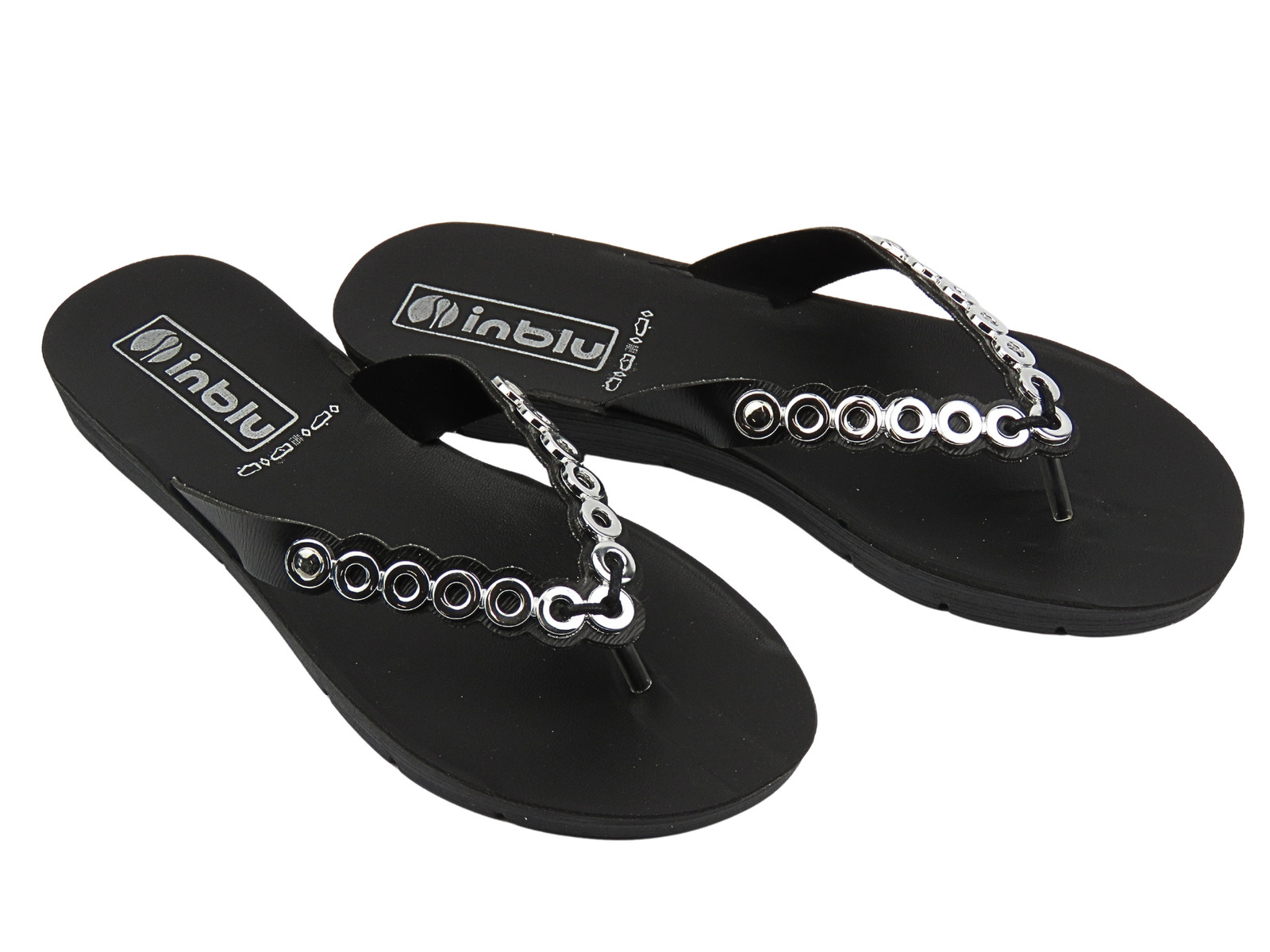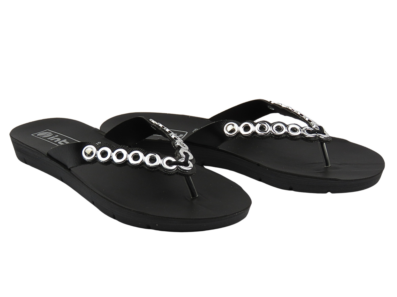 Japonki damskie z metalowymi ozdobami czarne Inblu ME-44