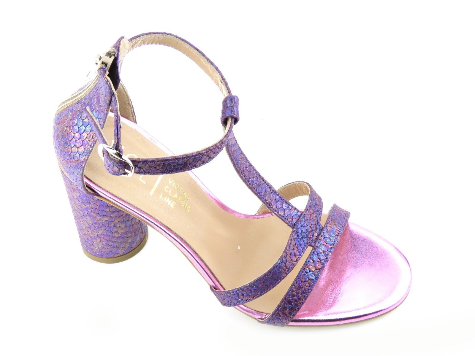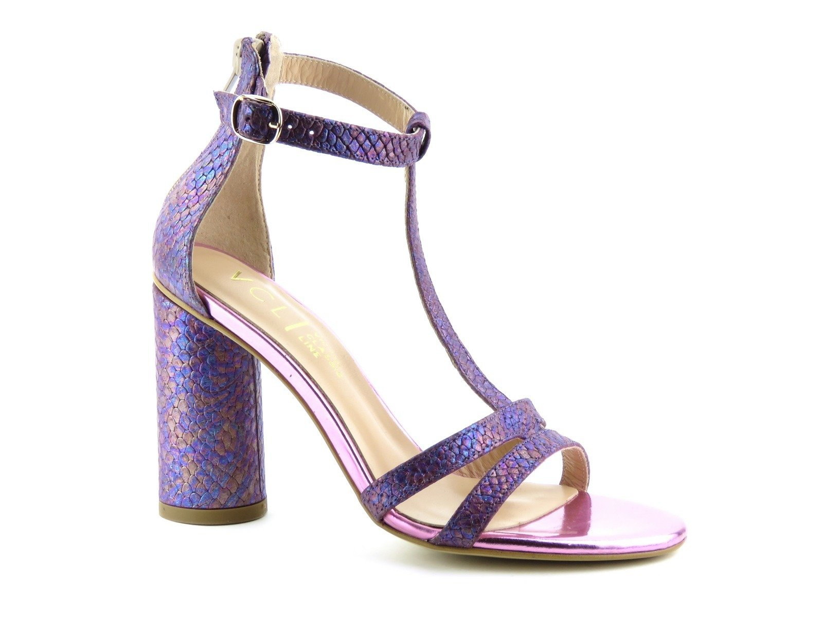 Sandały damskie na obcasie renomowanej marki Conhpol Bis. Obuwie oparte na najwyższych jakościowo materiałach oraz komponentach, wytwarzane są wyłącznie w Polsce. Cechuje je solidność i precyzja oraz nietypowe wzornictwo. Bardzo lekkie i kobiece w modnym kolorze. Platynowa poświata nadaje sandałom blasku i świeżości. Idealnie pasują do każdej stylizacji.