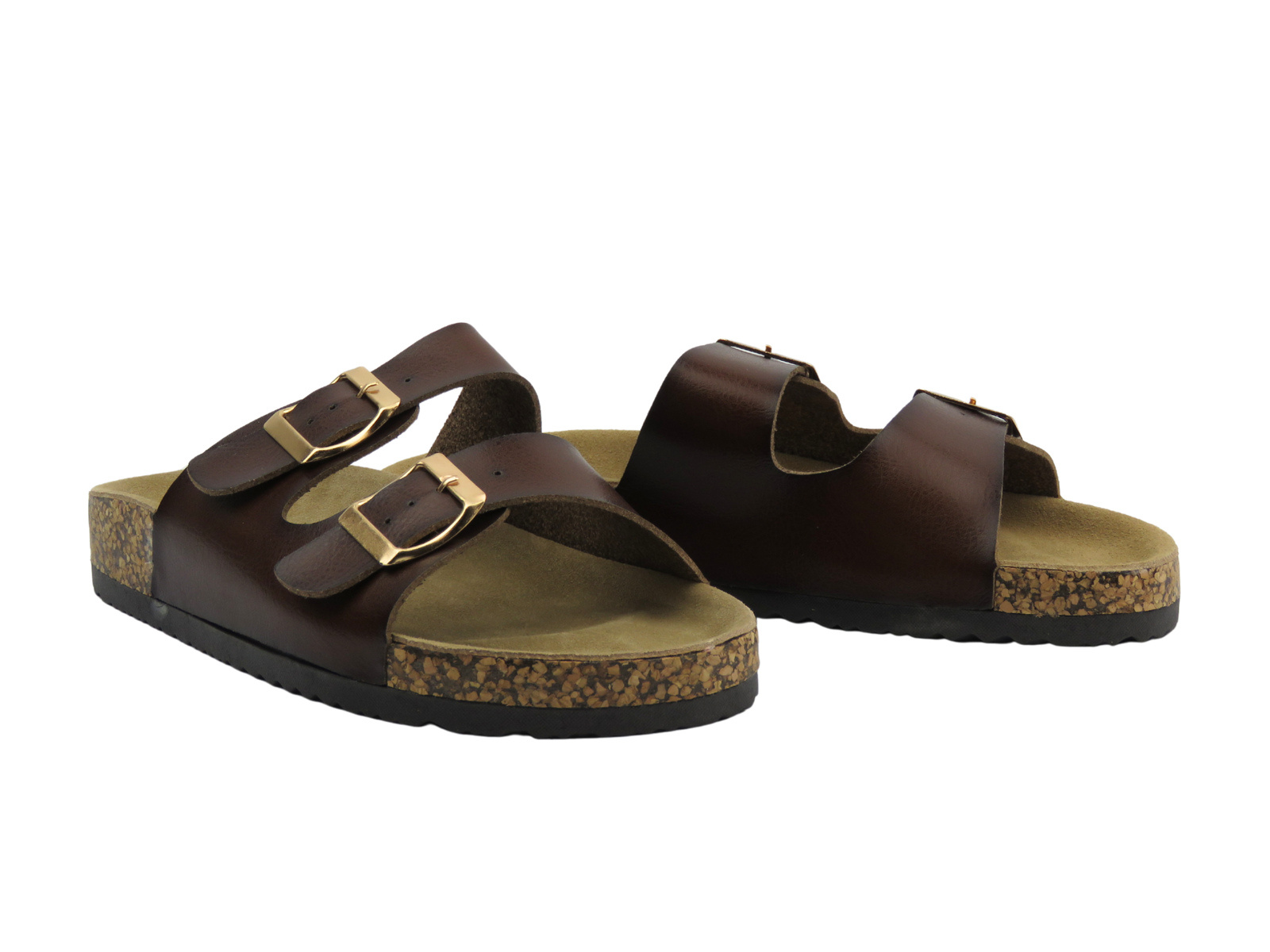 Profilowana wkładka imitująca korek zapewnia wygodę noszenia i podparcie dla łuku stopy, co pozwala na komfort nawet podczas długiego dnia. Regulowane paski umożliwiają indywidualne dopasowanie, a elastyczna, antypoślizgowa podeszwa zwiększa stabilność i bezpieczeństwo użytkowania.