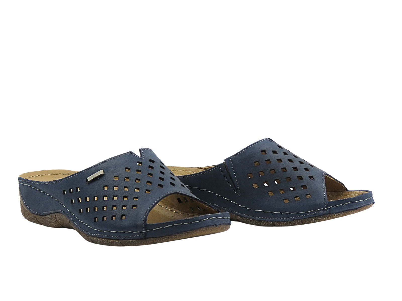 Wygodne, miękkie klapki damskie HELIOS Komfort 105-2, granatowe
