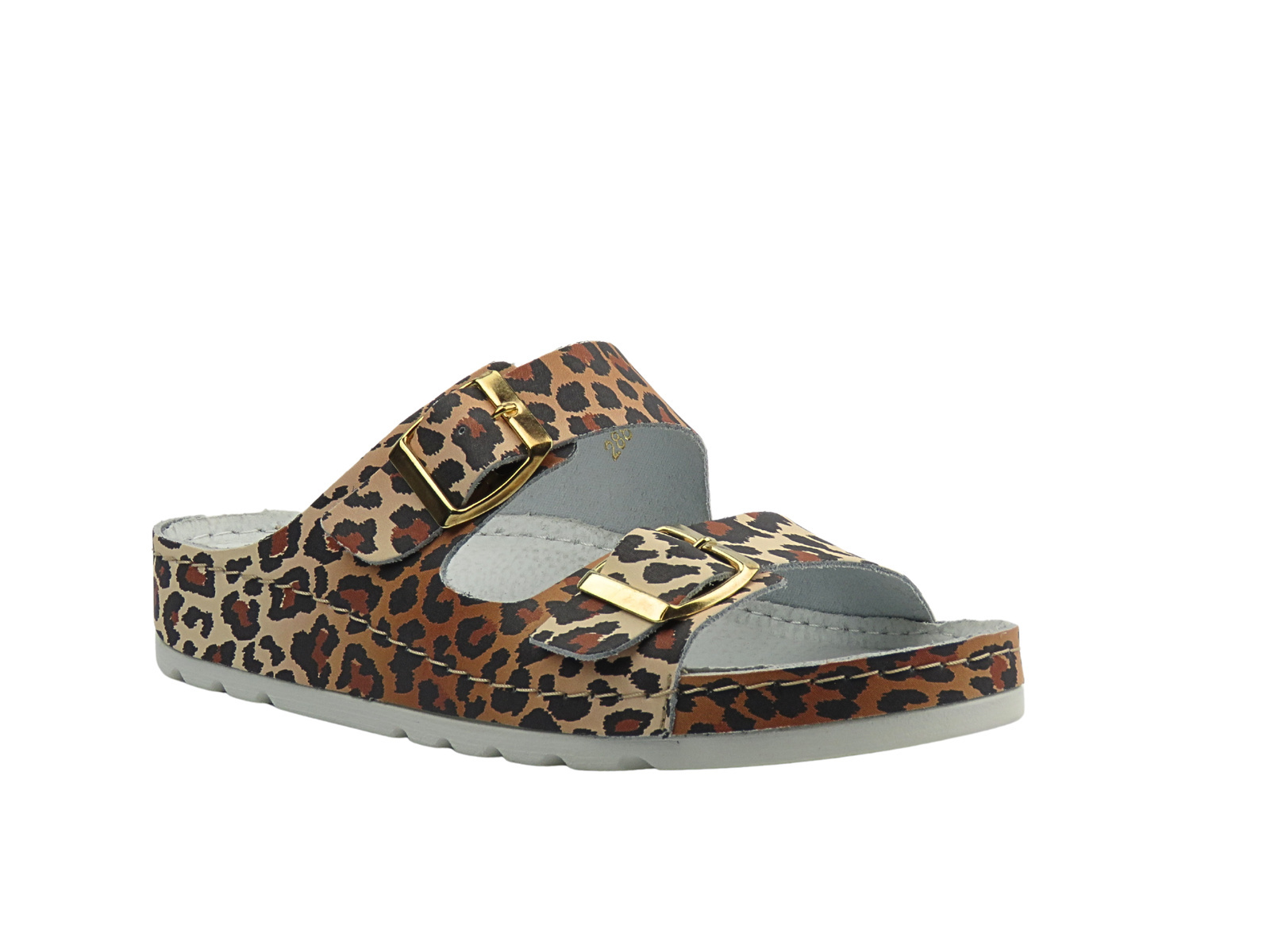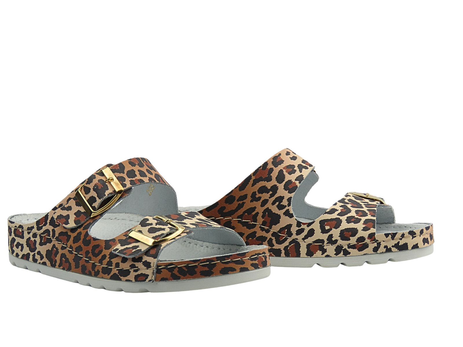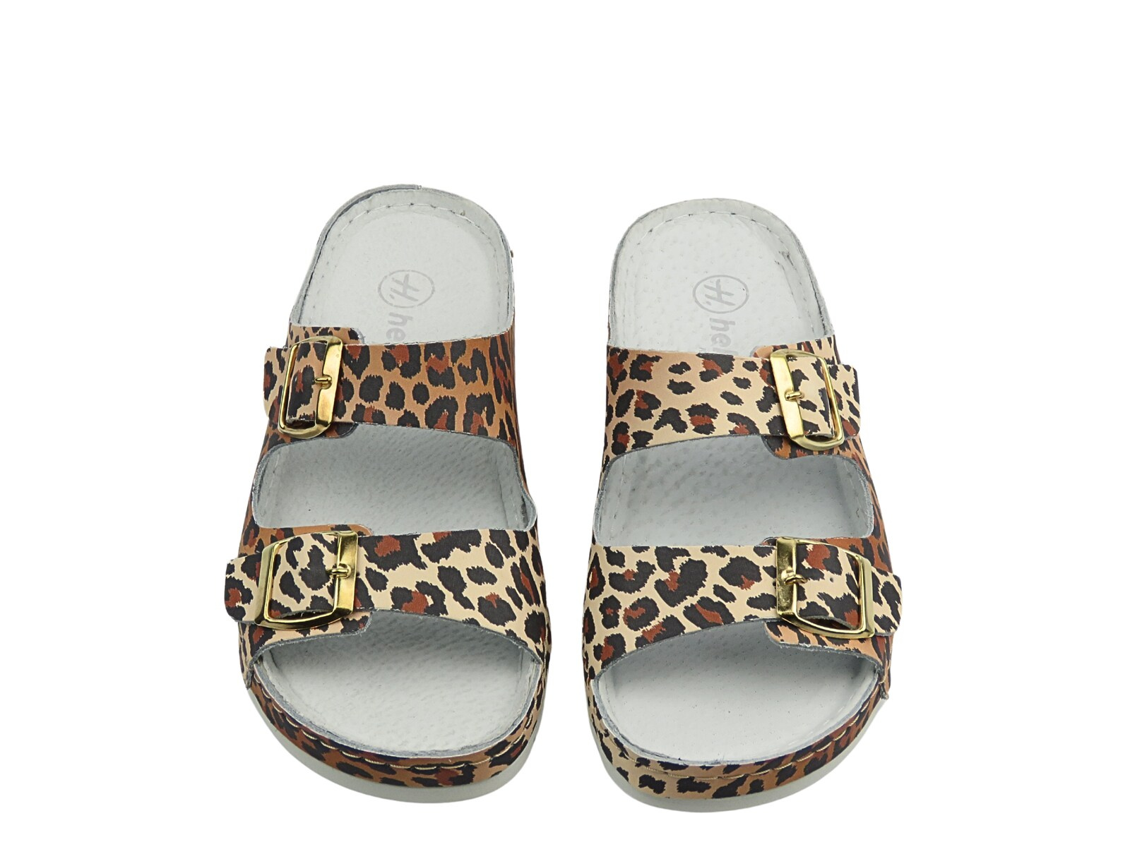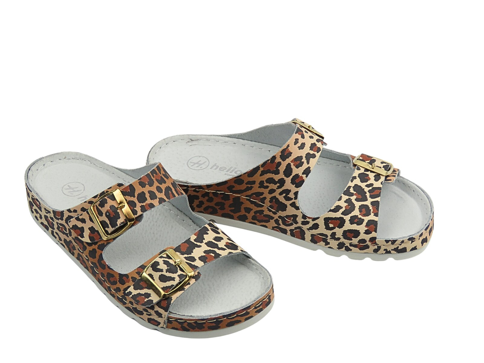 Damskie klapki Helios Komfort 288 brązowe w panterkę