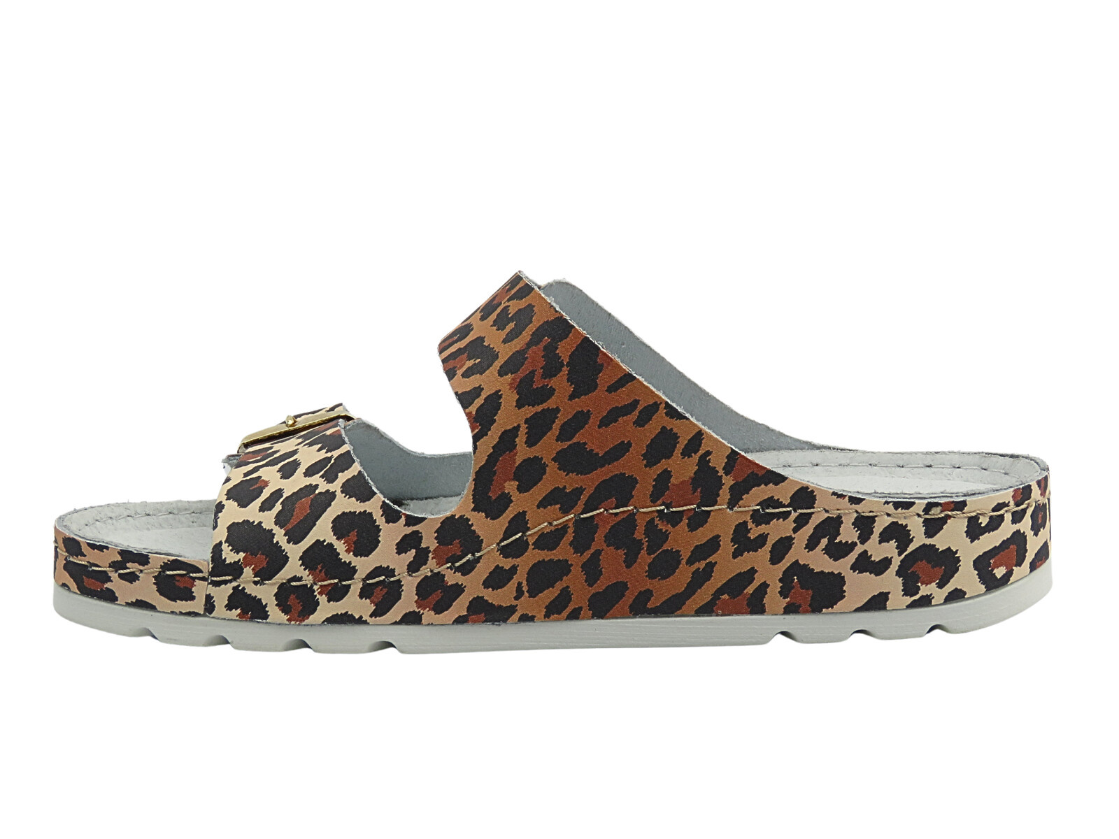 Wygodne klapki damskie lekarskie, sanitarne brązowe w panterkę HELIOS Komfort 288