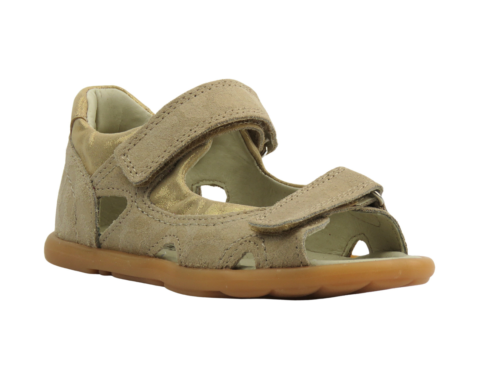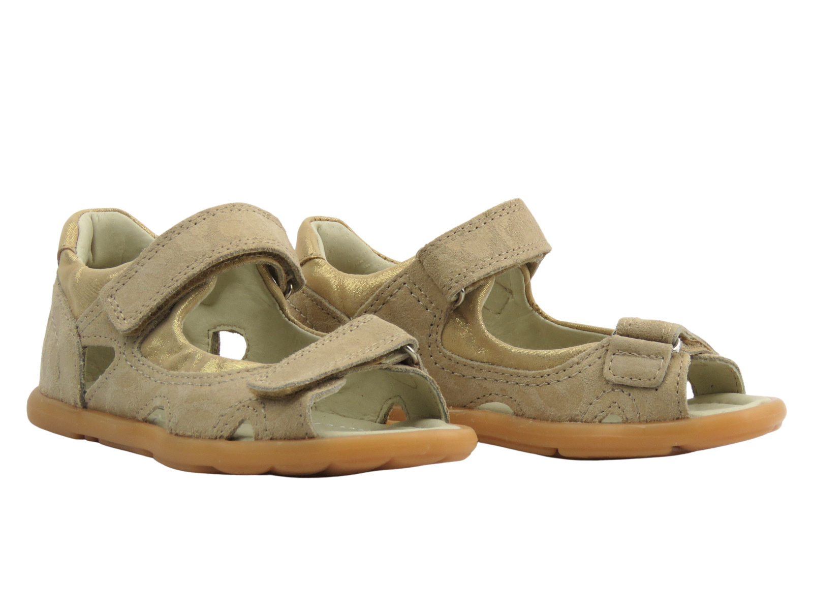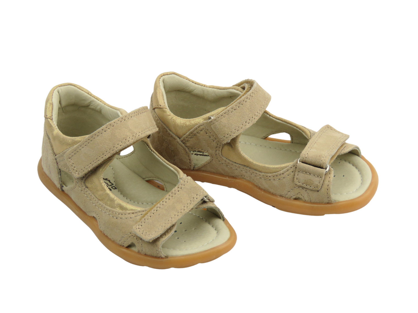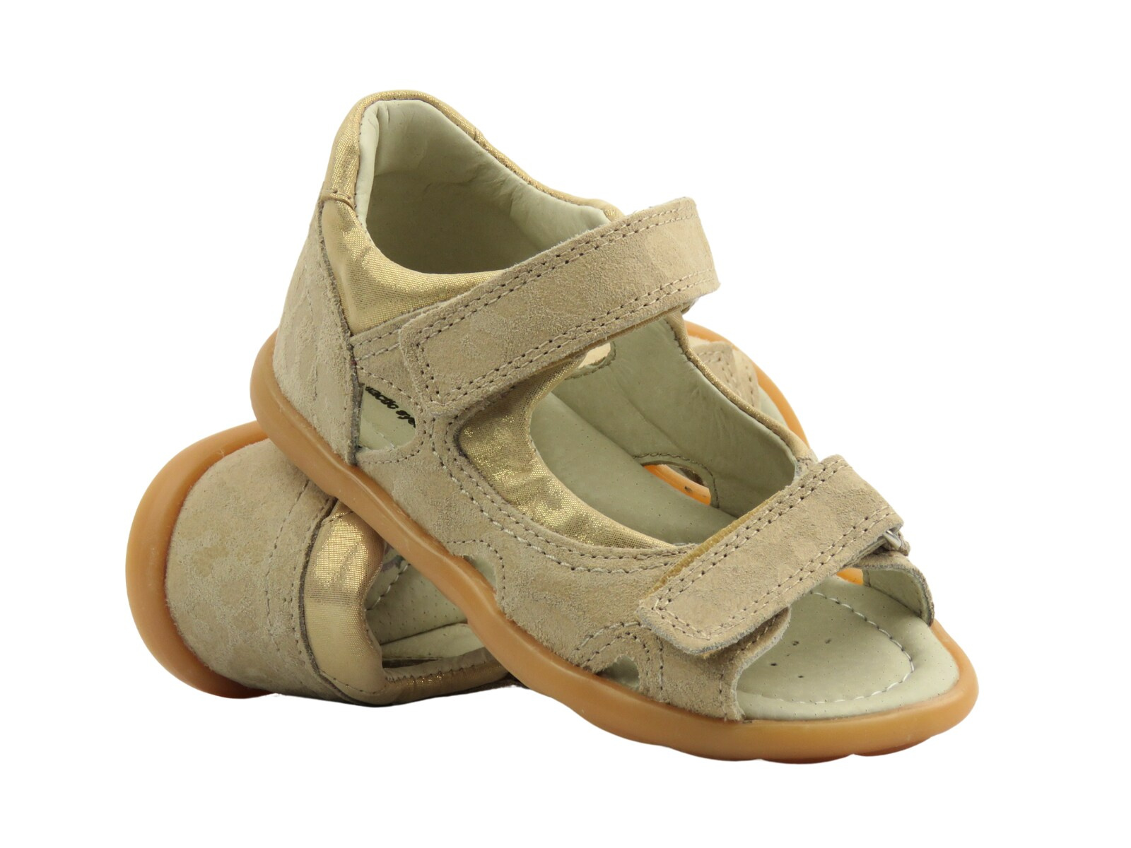 Skórzane sandały dziecięce na rzepy jasnobeżowe Jamet 262