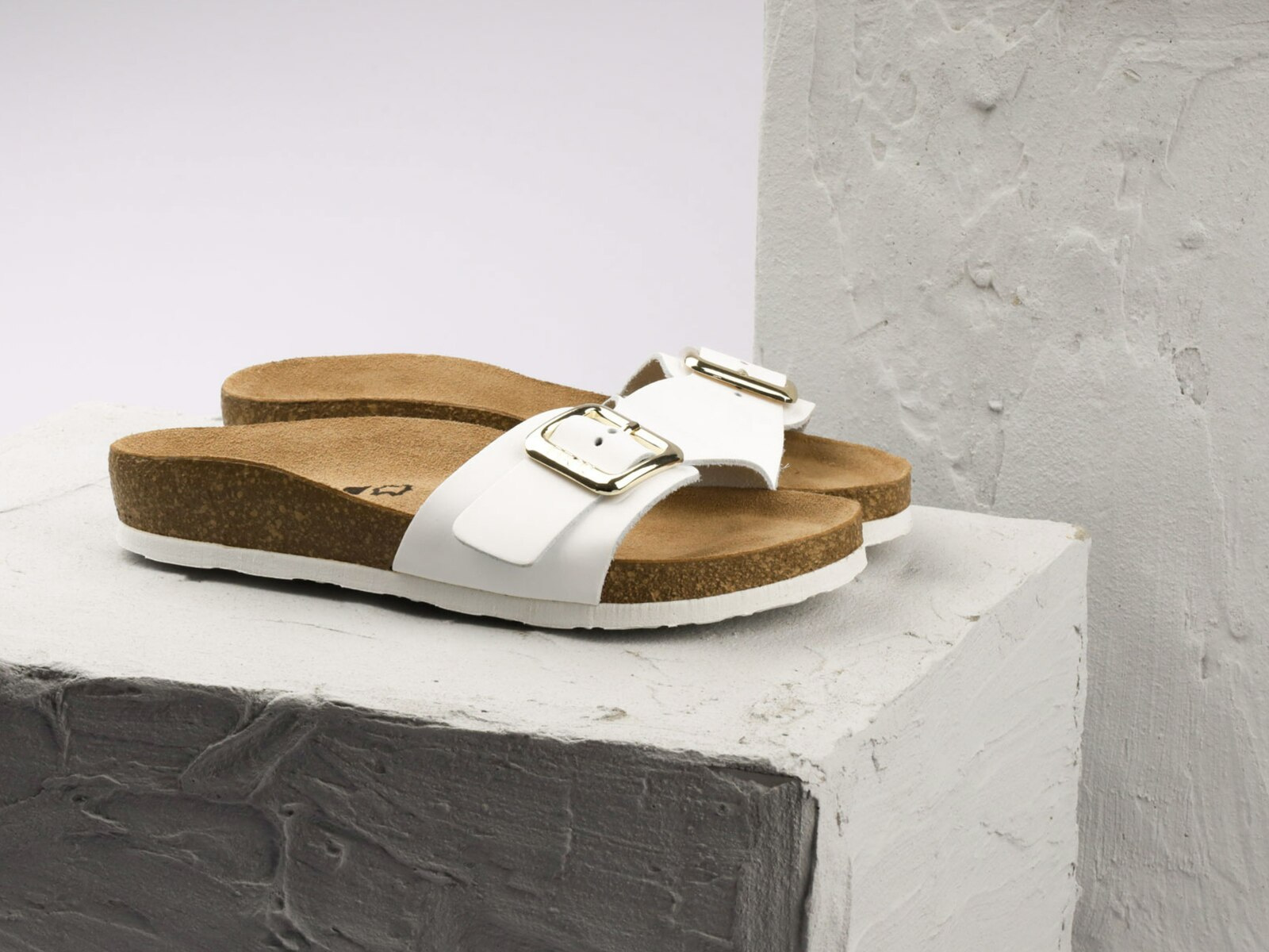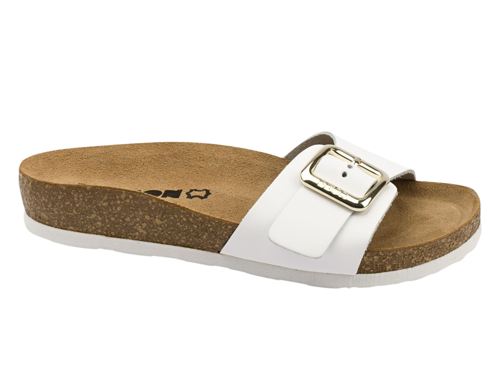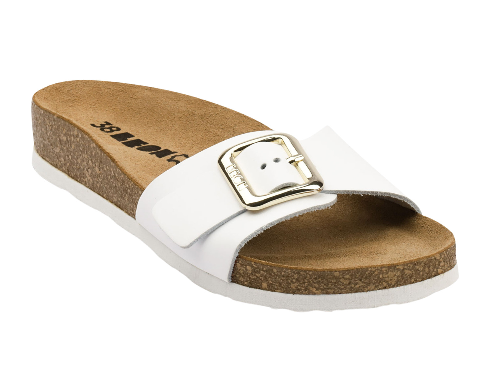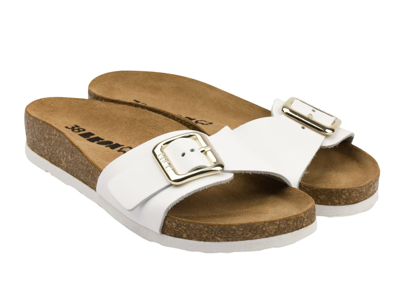 Klapki damskie z klamrą białe Leon 4019 — tęgość G