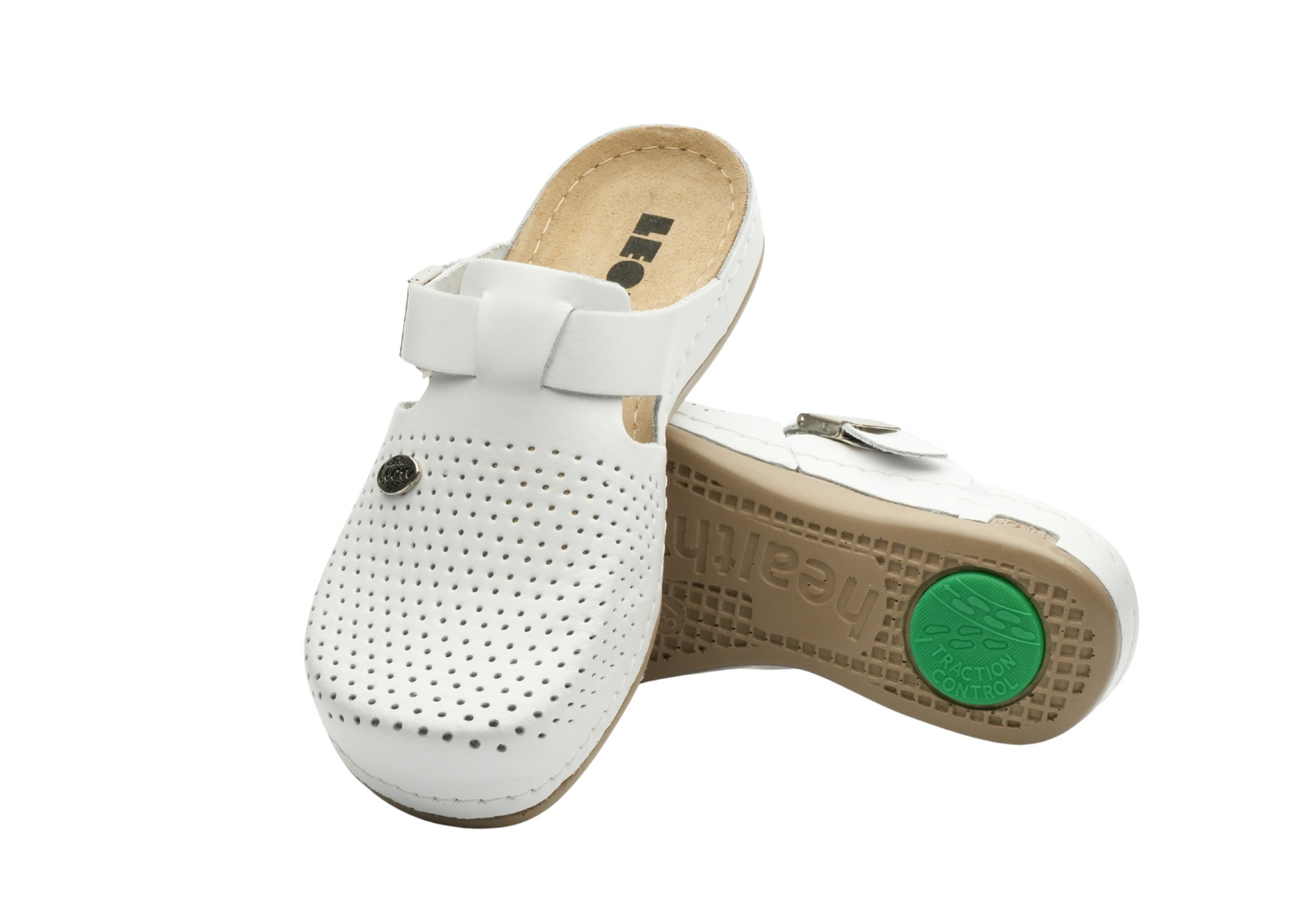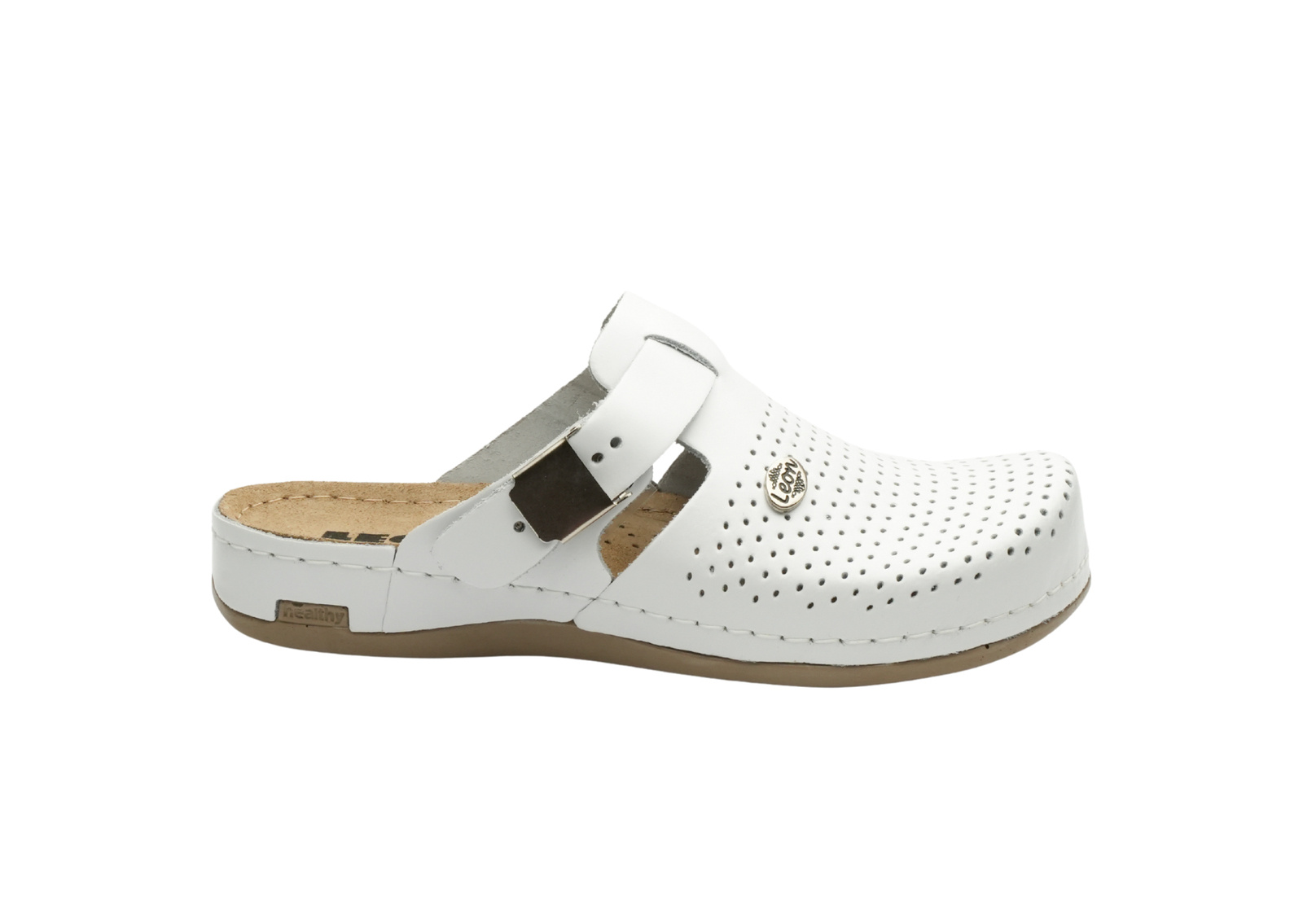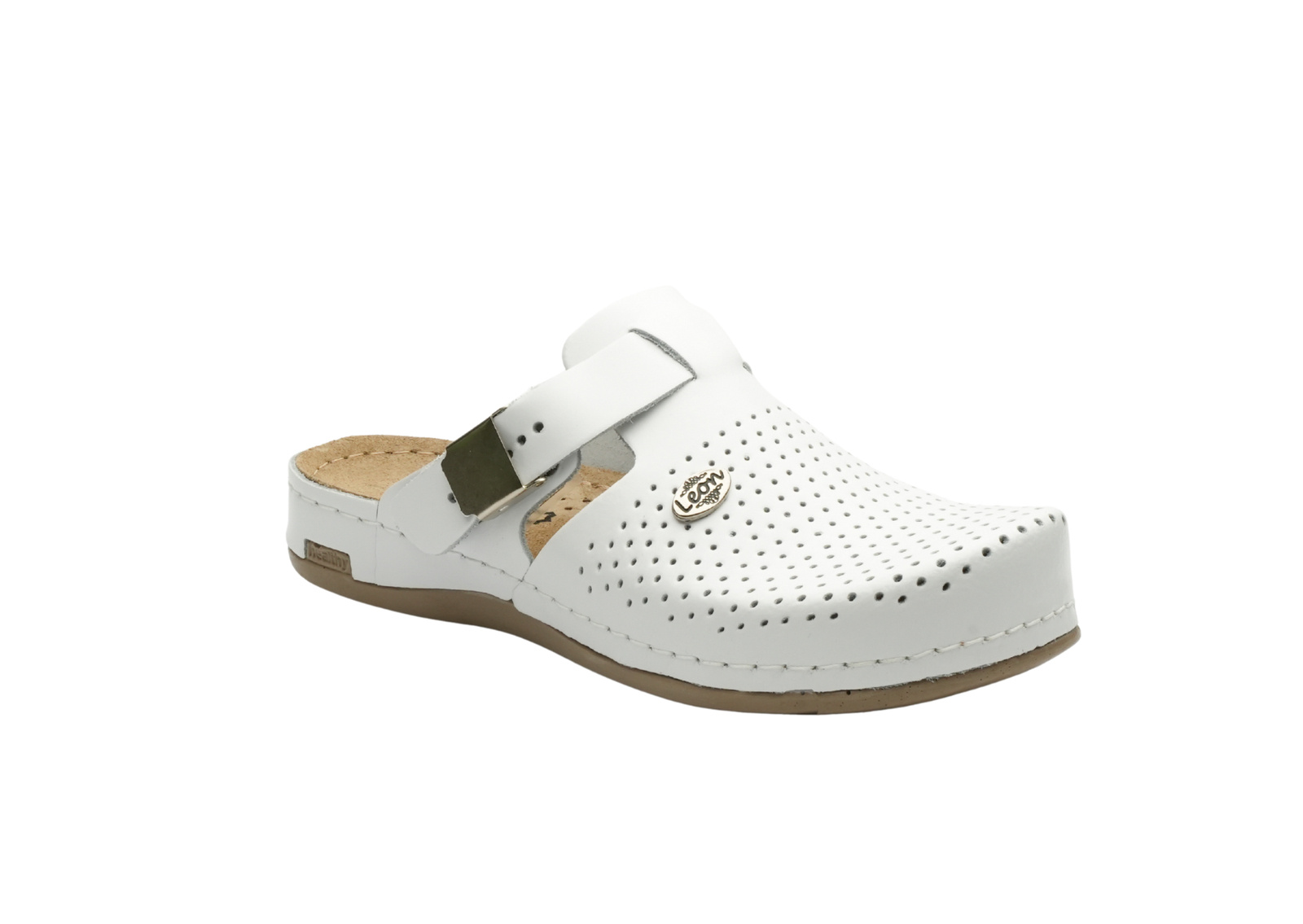 Model Leon 950 to klasyczne zabudowane klapki w ponadczasowym białym kolorze, które doskonale łączą elegancję z codzienną funkcjonalnością.