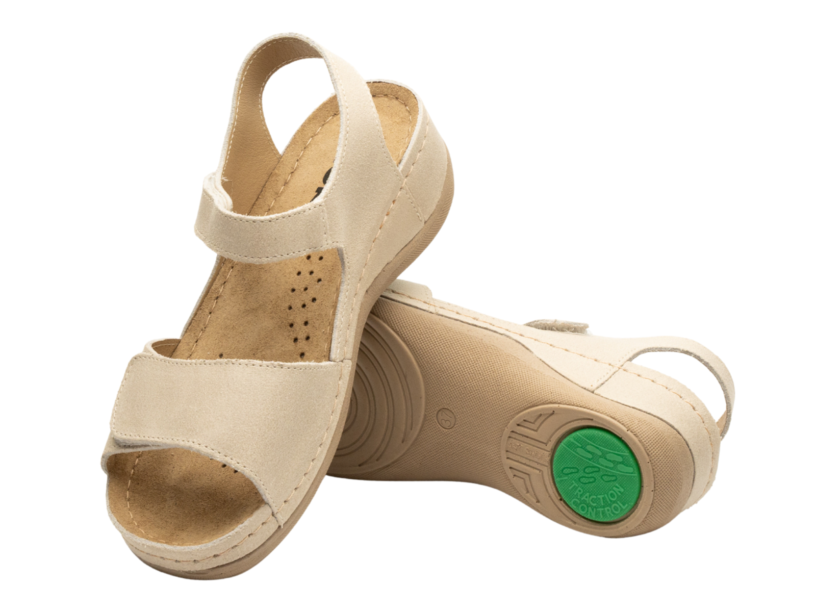 Sportowe sandały damskie na rzepy - Leon 935, beżowe