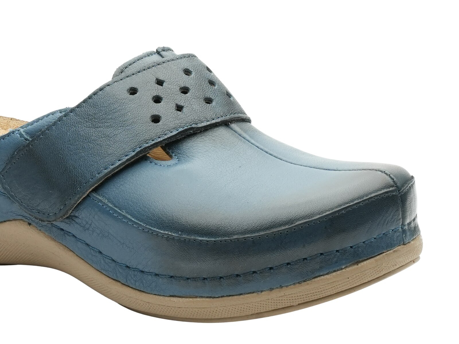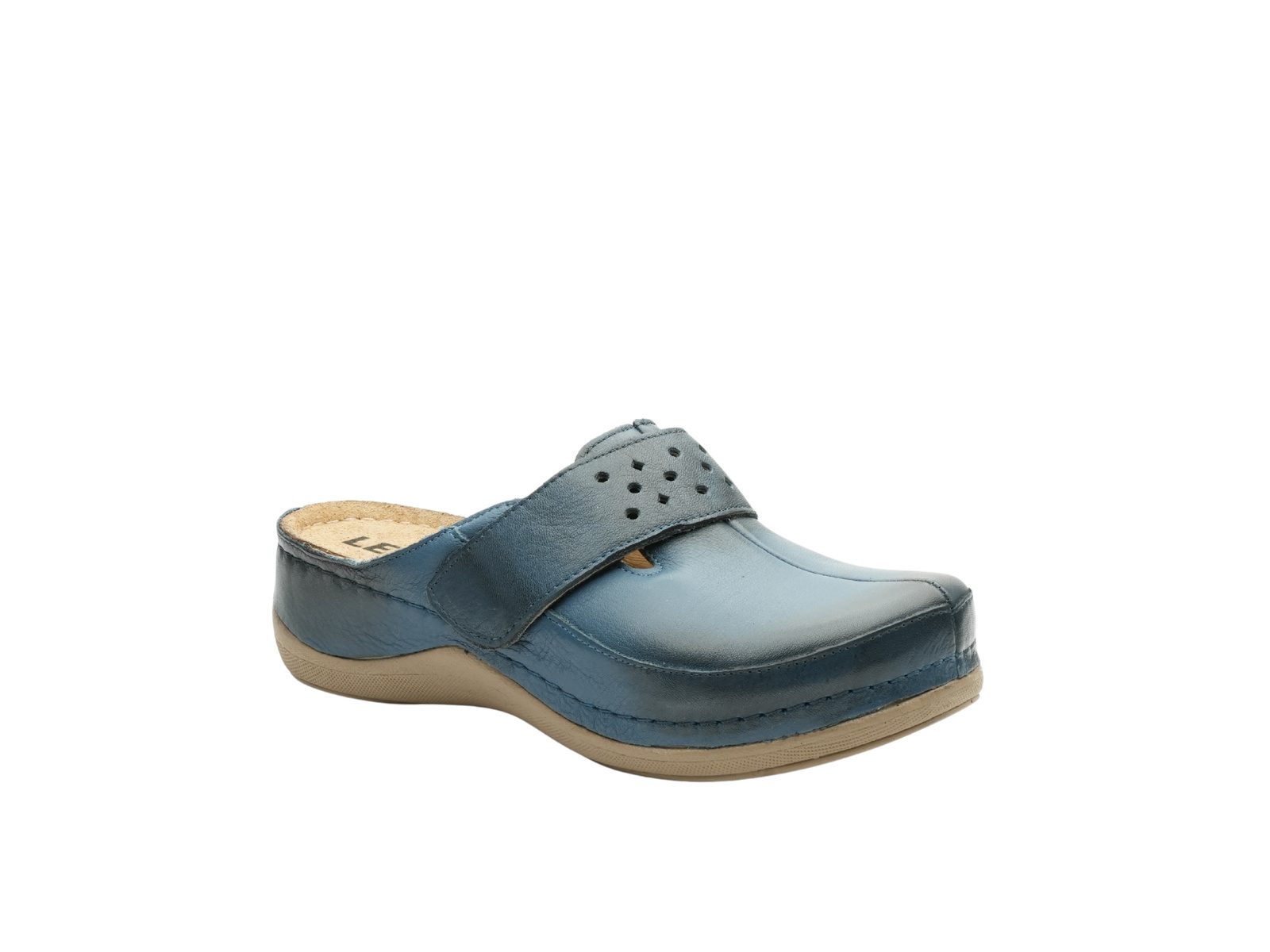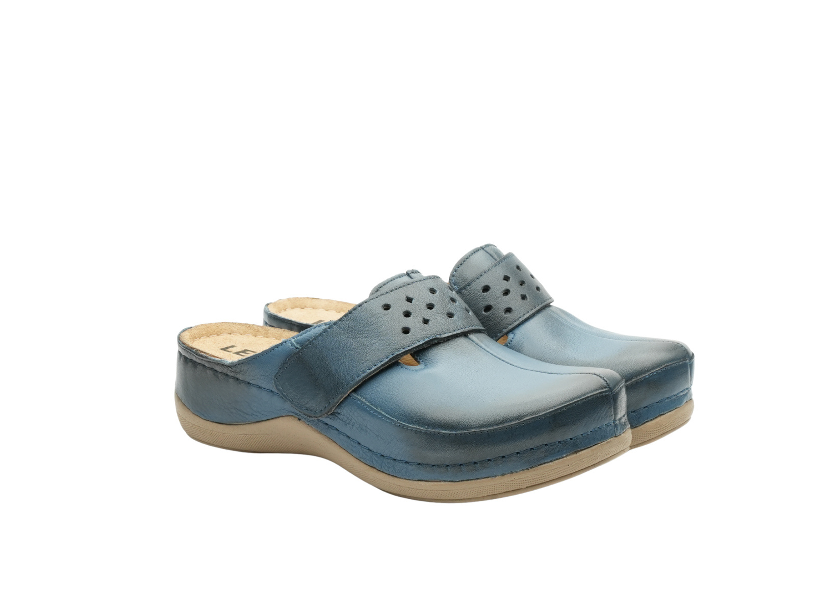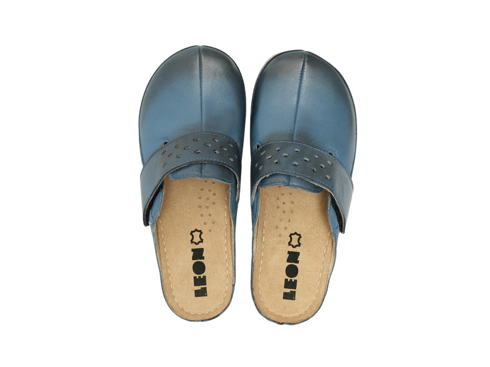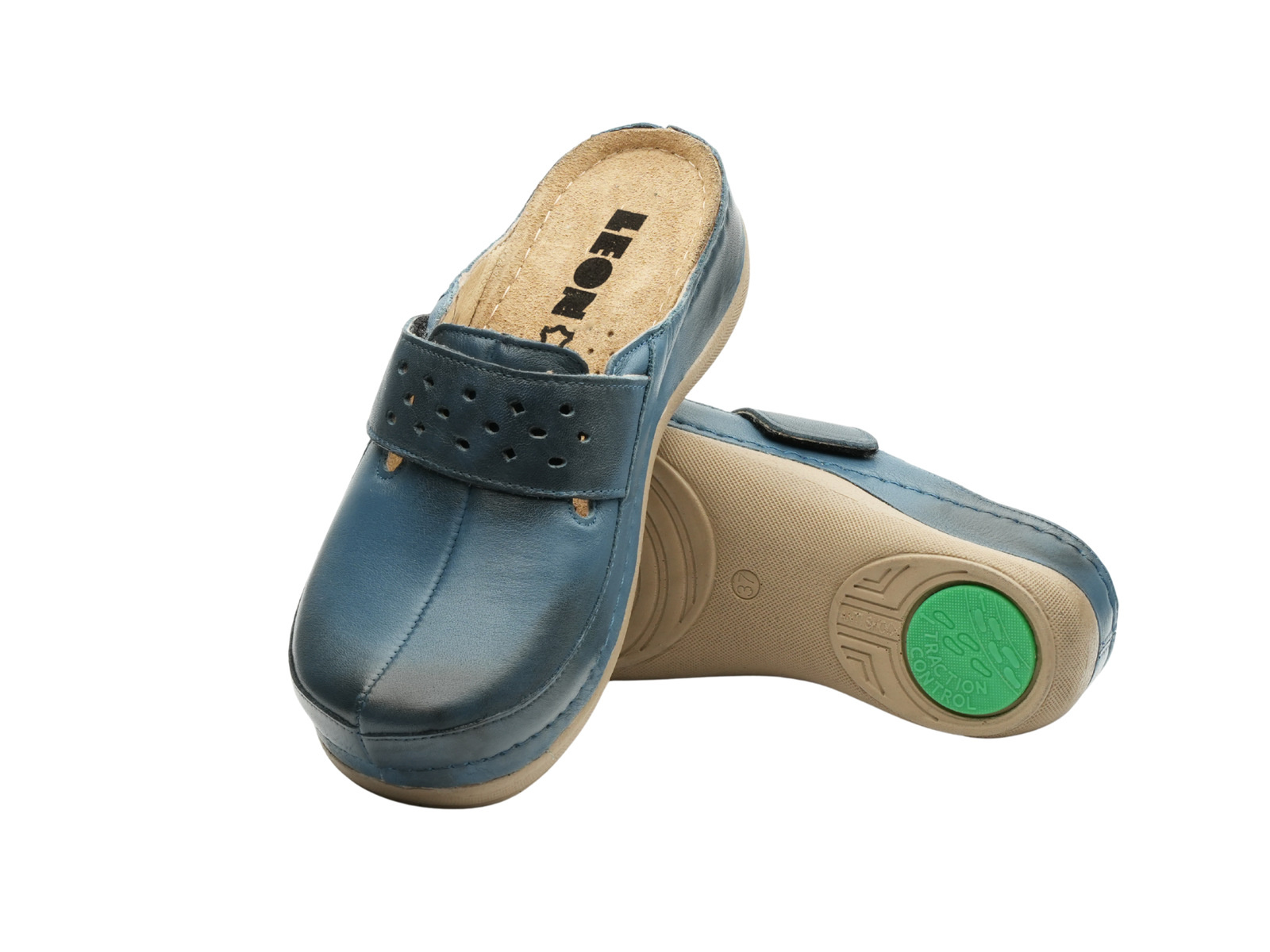 Model Leon 902 to praktyczne zabudowane klapki w klasycznym granatowym kolorze, które zapewniają komfort noszenia i solidne wykonanie na co dzień.