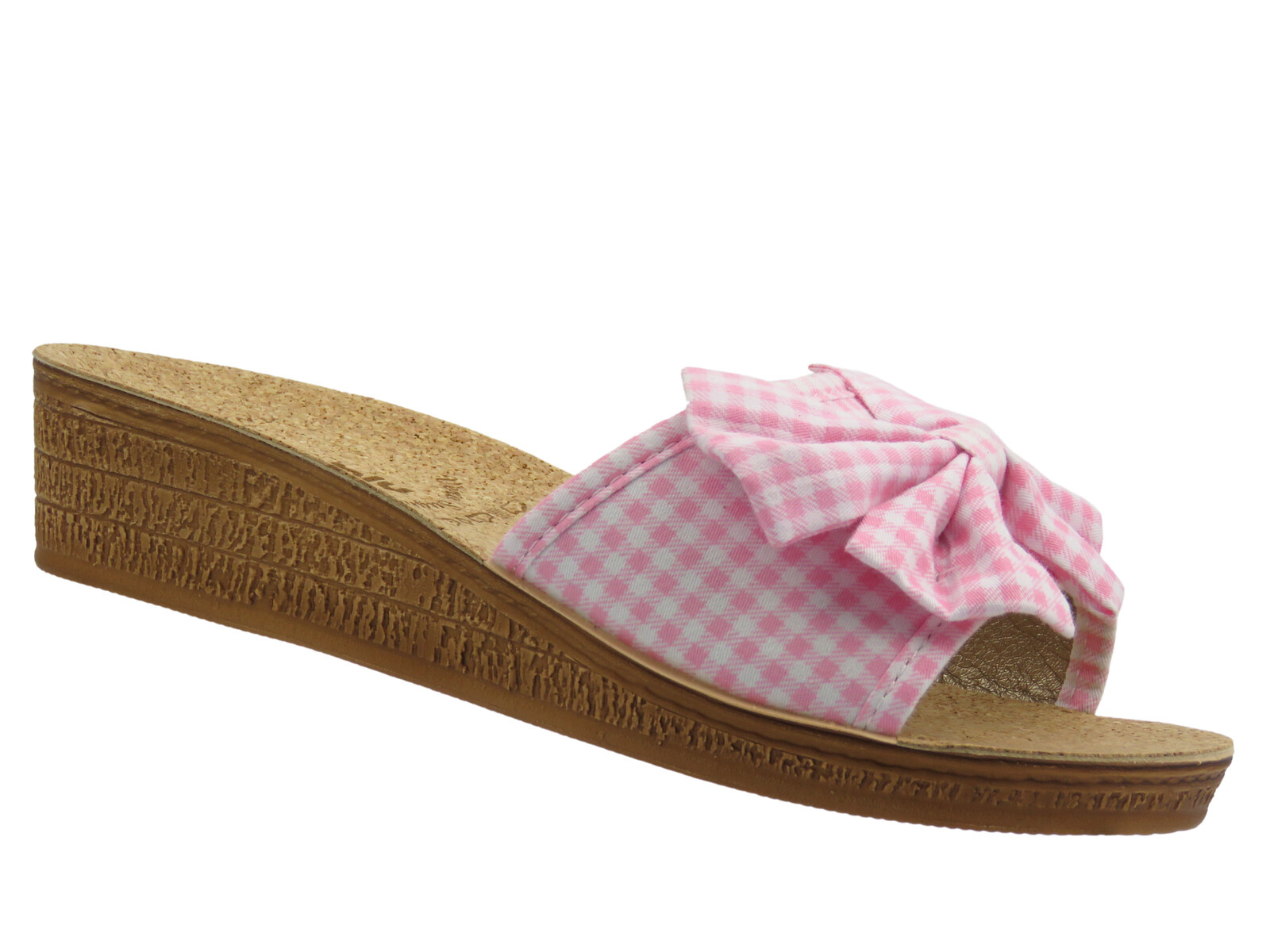 Inblu MINNY to wyjątkowe klapki damskie, które zachwycają subtelnym urokiem i lekkością letniego stylu. Różowy materiał w drobną kratkę przyciąga wzrok, a ozdobna kokarda dodaje całości dziewczęcego wdzięku.