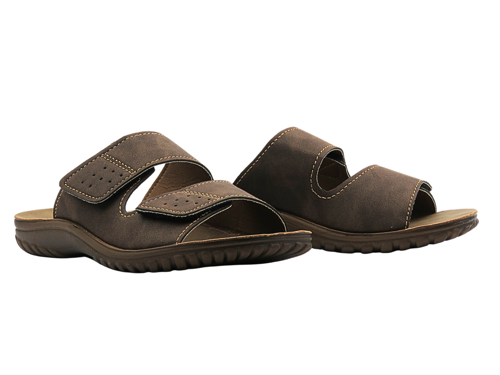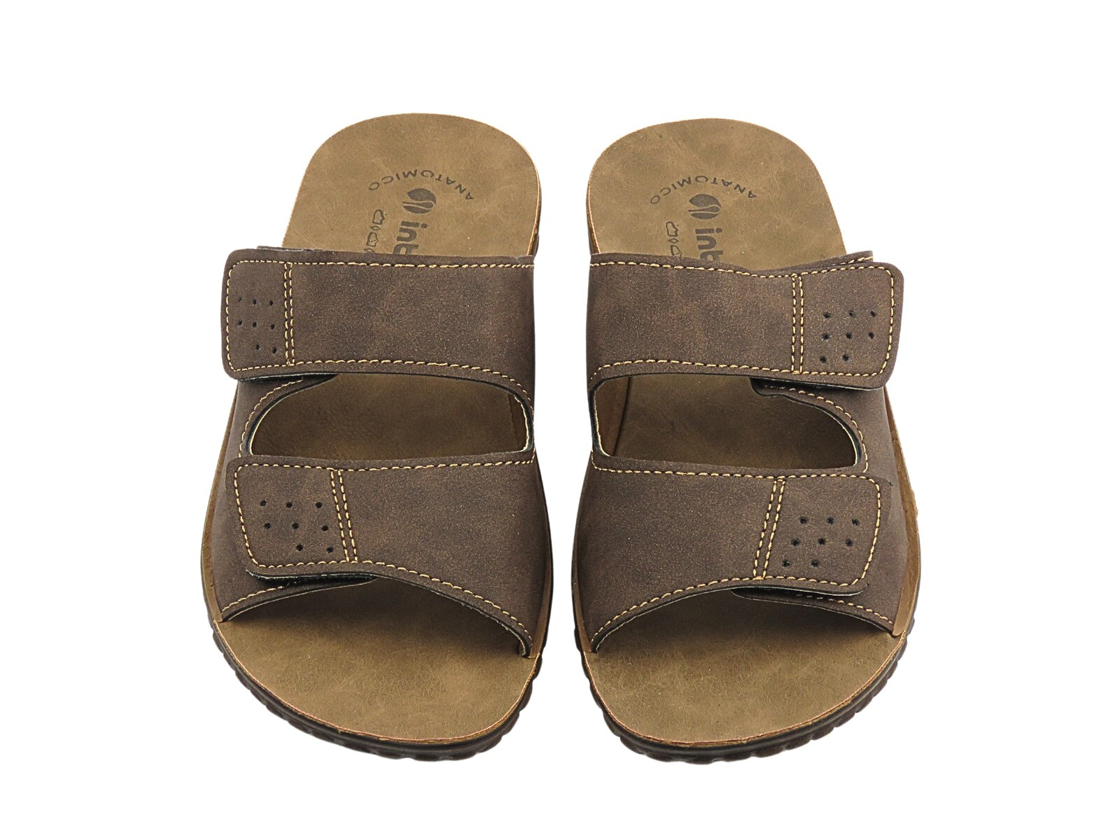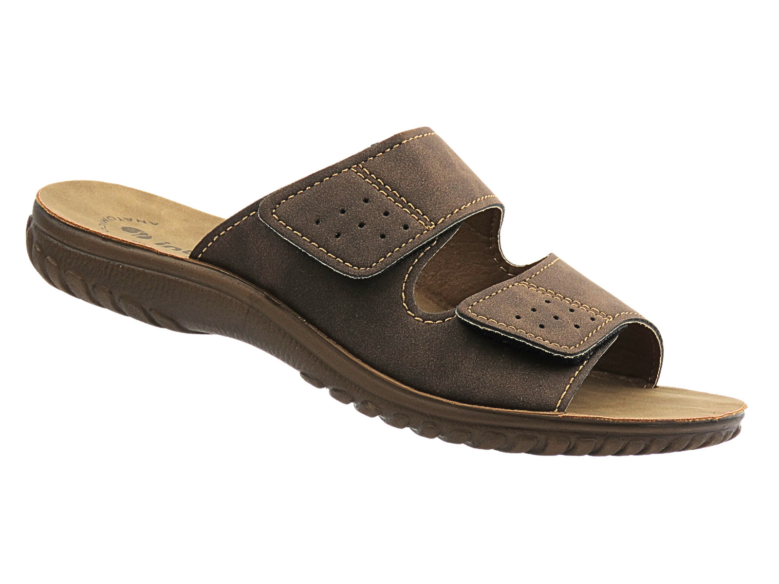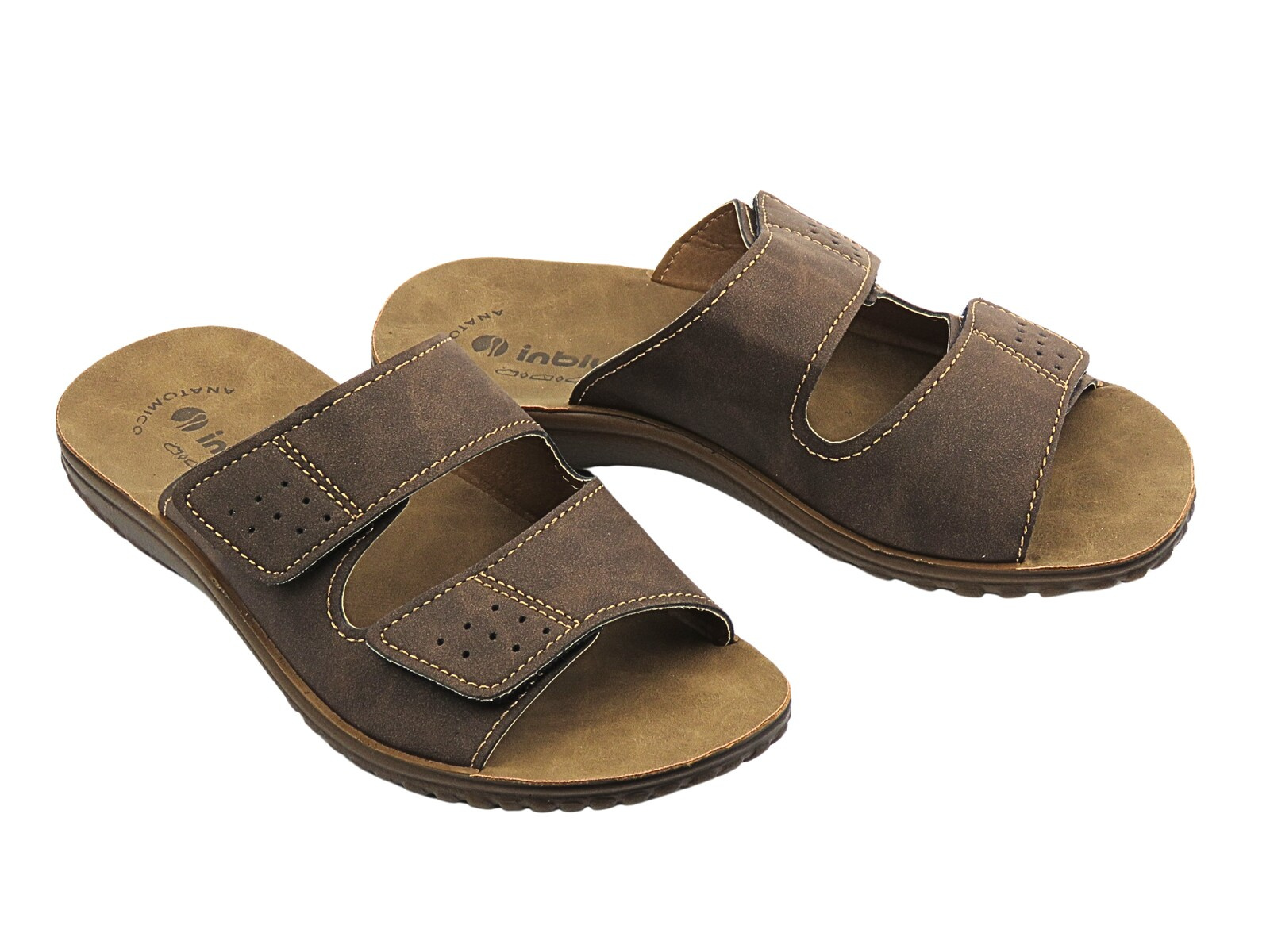 Wygodne klapki męskie na rzepy ciemnobrązowe Inblu BRAIES