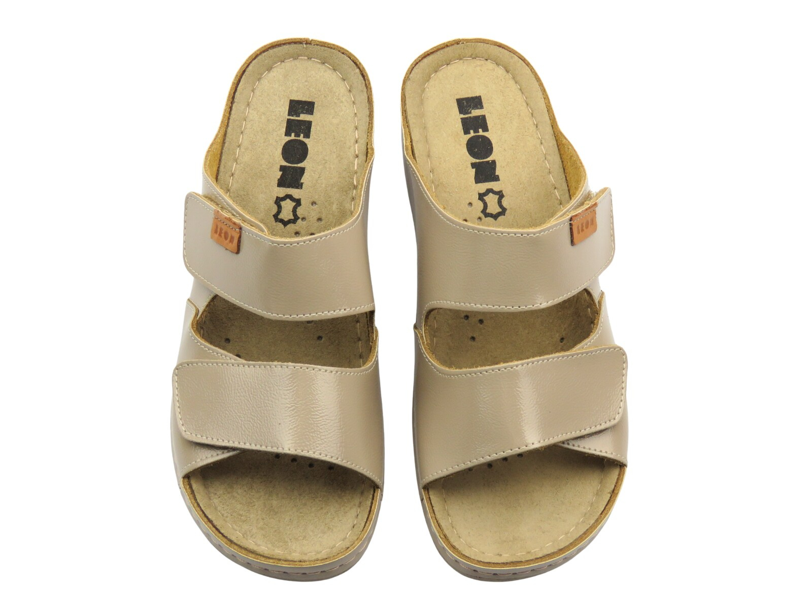Te klasyczne klapki Leon 931 w subtelnym, beżowym odcieniu to doskonały wybór dla osób, które cenią połączenie wygody, elegancji i jakości.