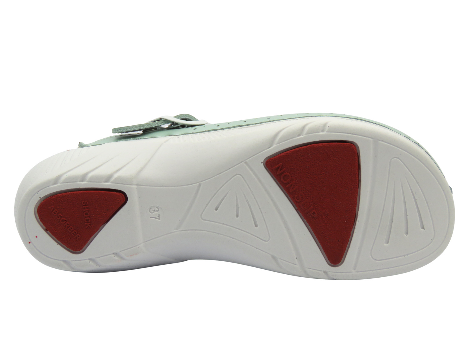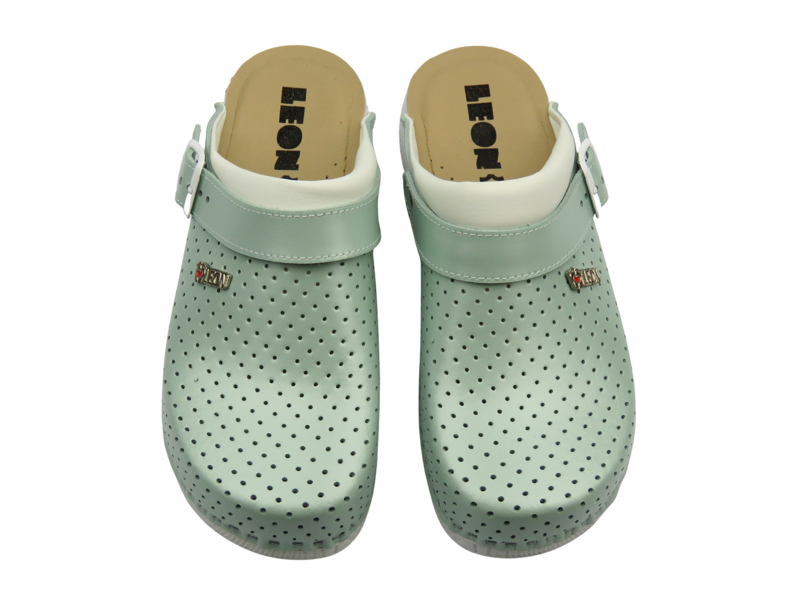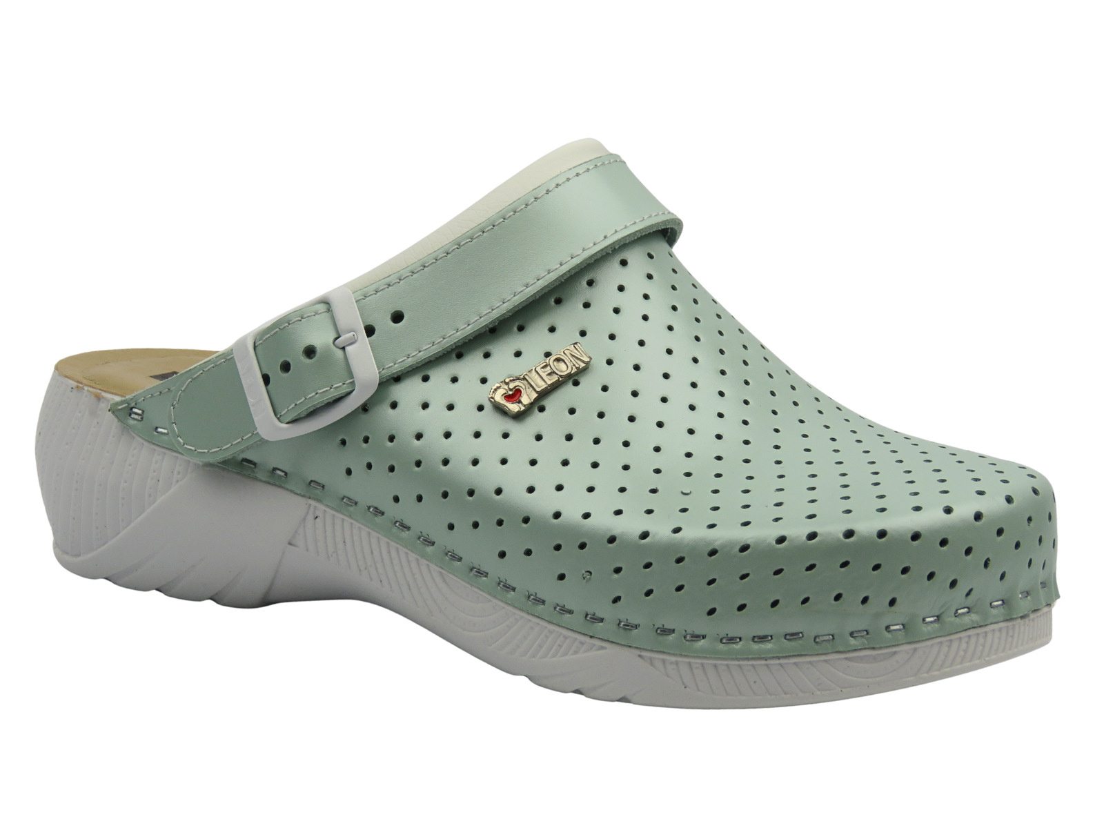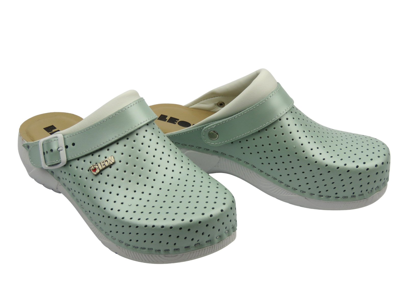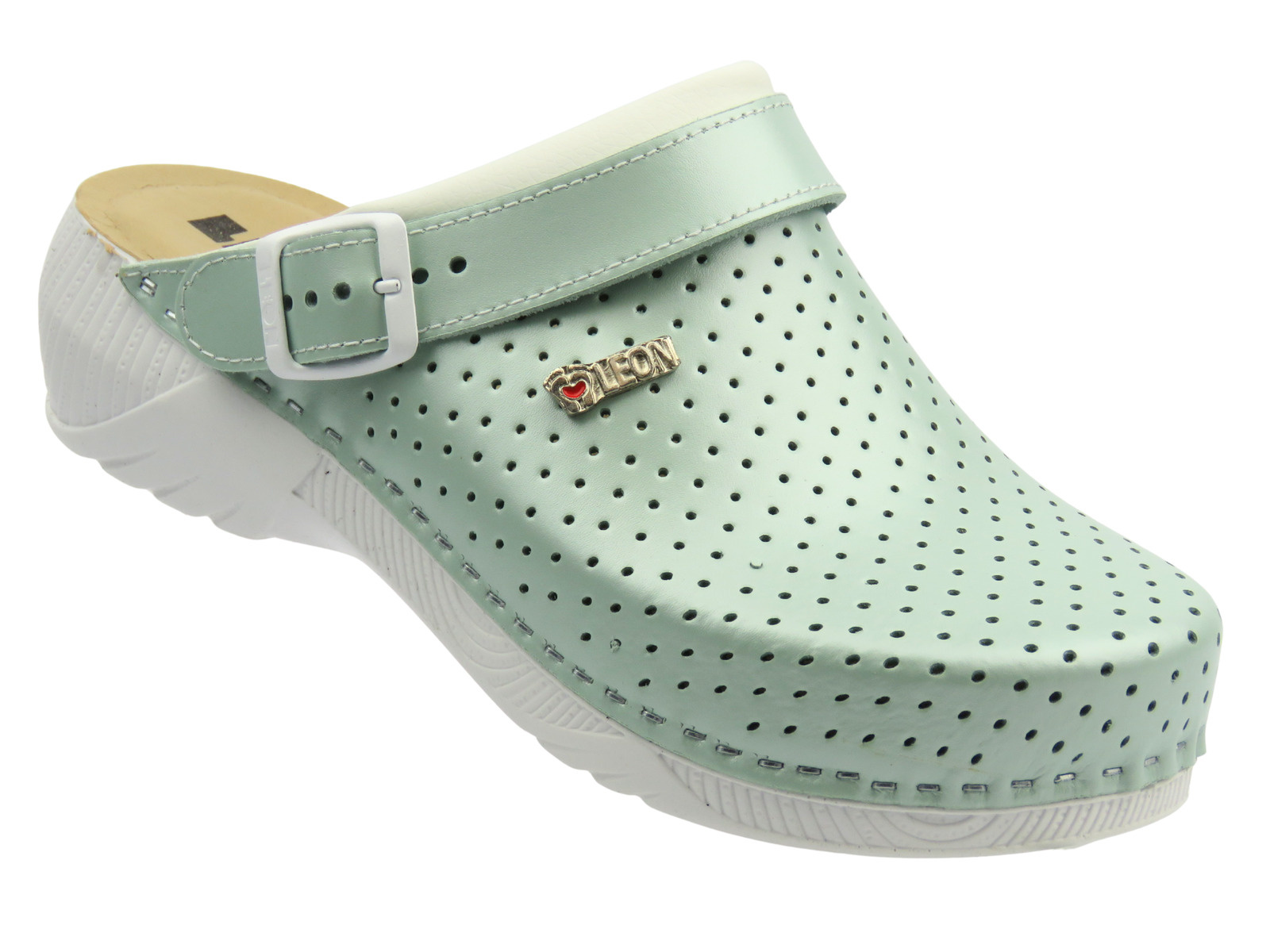 Model Leon 3300 to klasyczne, zabudowane klapki w modnym zielonym kolorze, które łączą elegancję z praktycznością codziennego użytkowania. To doskonały wybór dla kobiet poszukujących wygodnego obuwia o ciekawym wyglądzie.