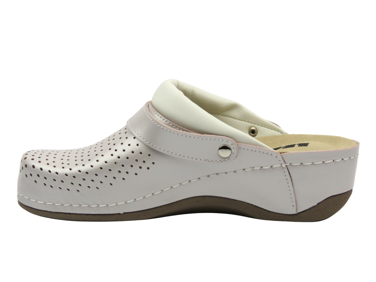 Skórzane Klapki Damskie Leon 2023 perłowe