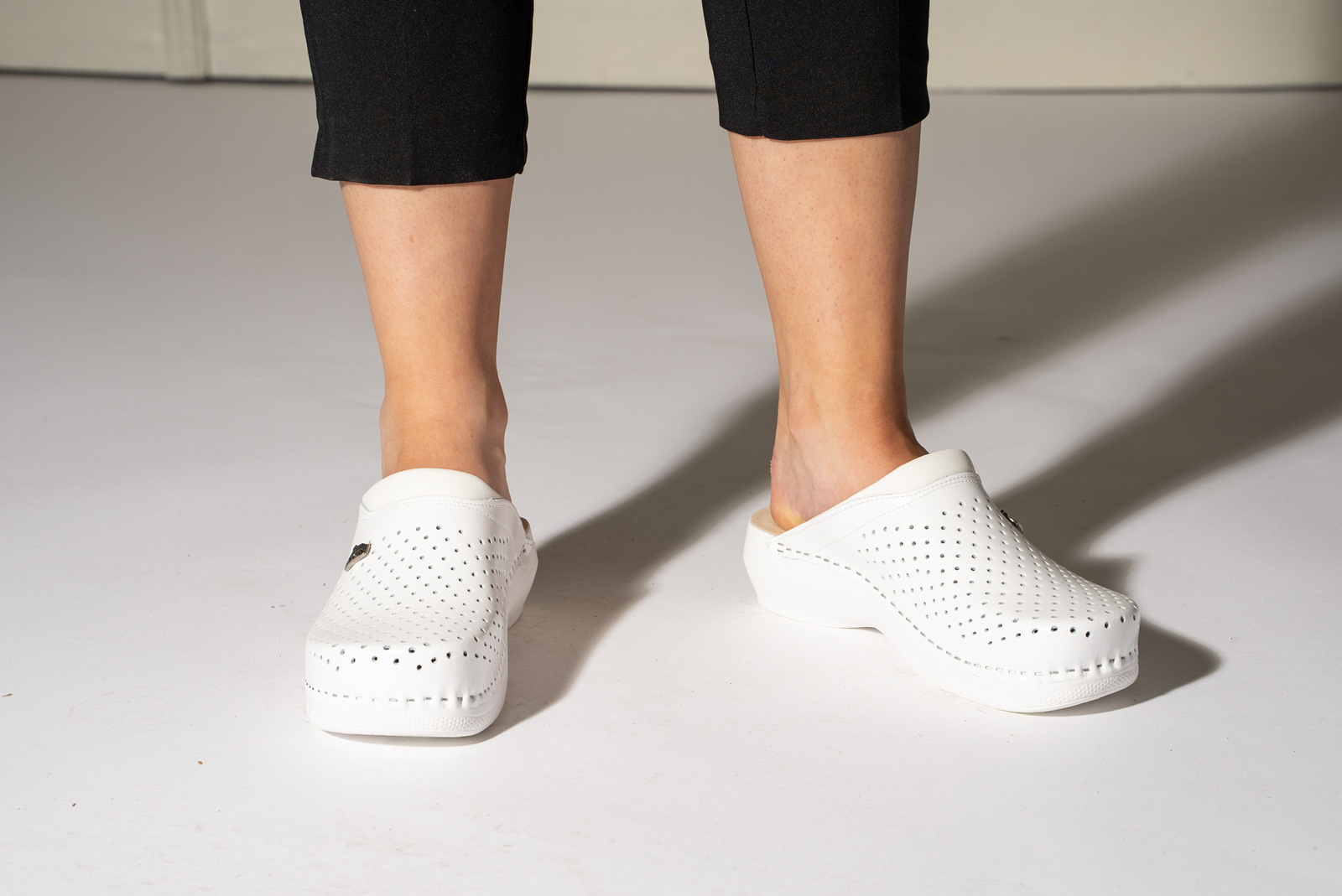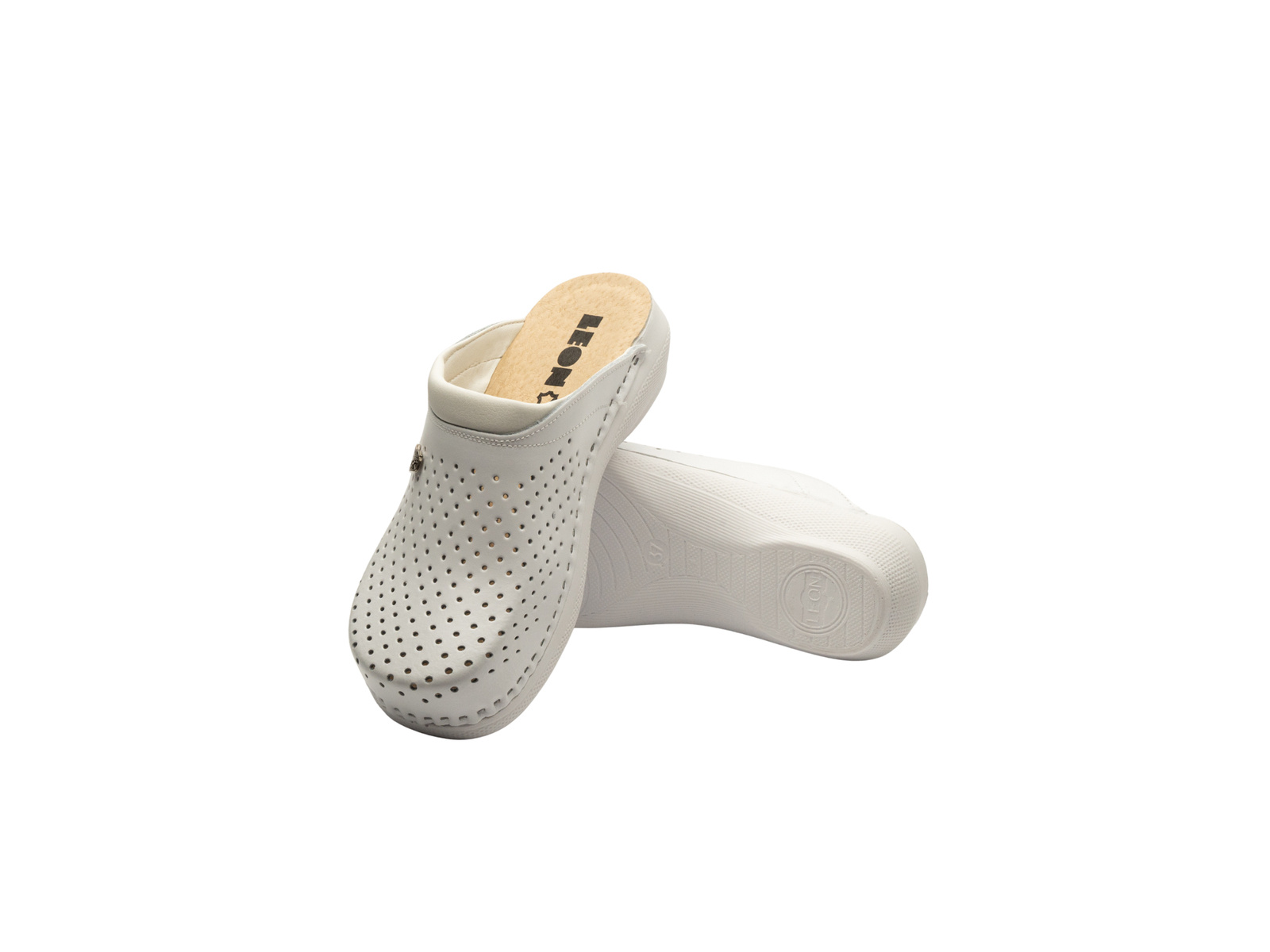 Te nowoczesne chodaki Leon PU100 w klasycznym białym kolorze to idealny wybór dla osób ceniących profesjonalny wygląd i wyjątkowy komfort użytkowania.