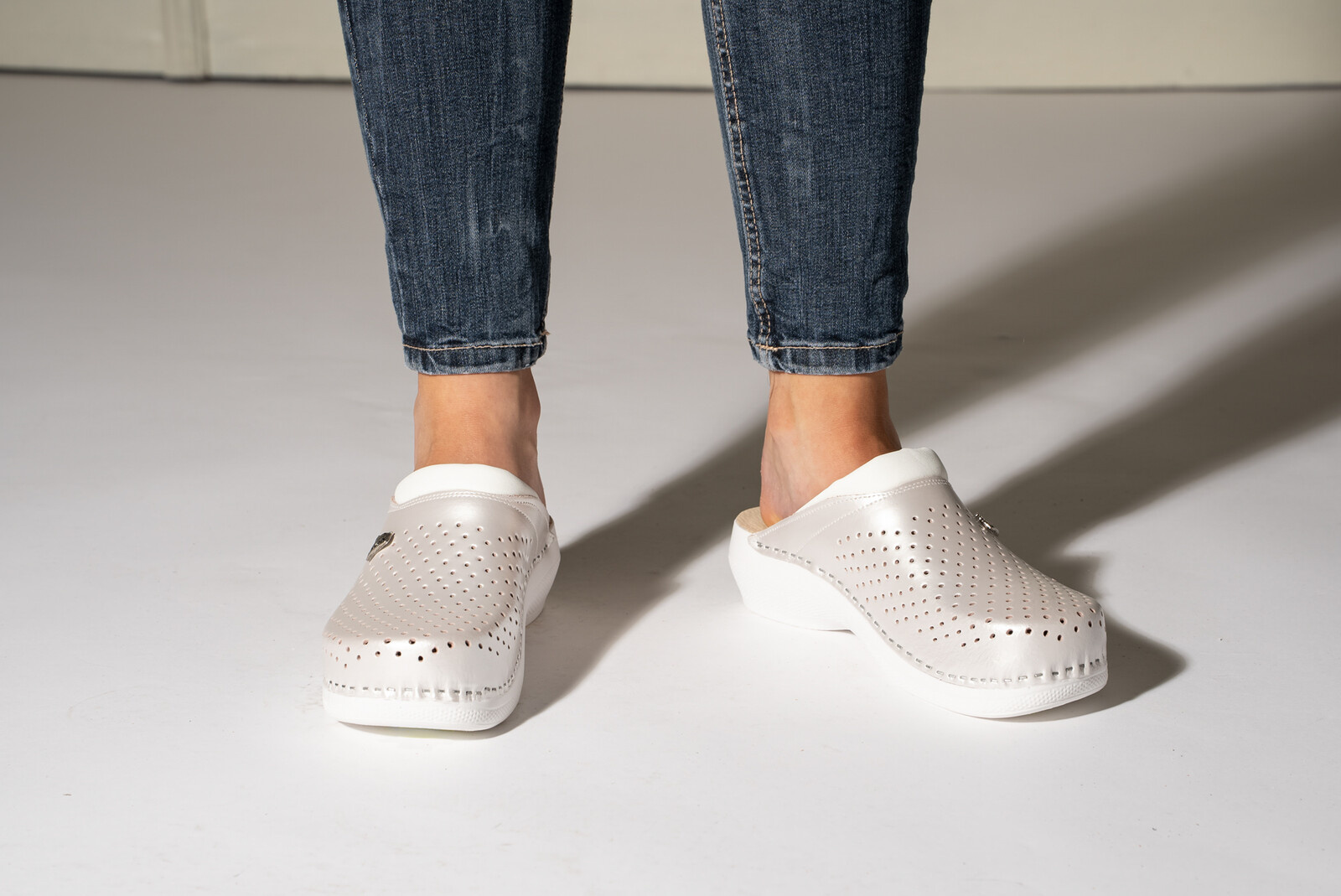 Postaw na skórzane klapki damskie Leon PU100 w perłowym kolorze i przekonaj się, jak przyjemne może być noszenie lekkiego, eleganckiego obuwia każdego dnia!