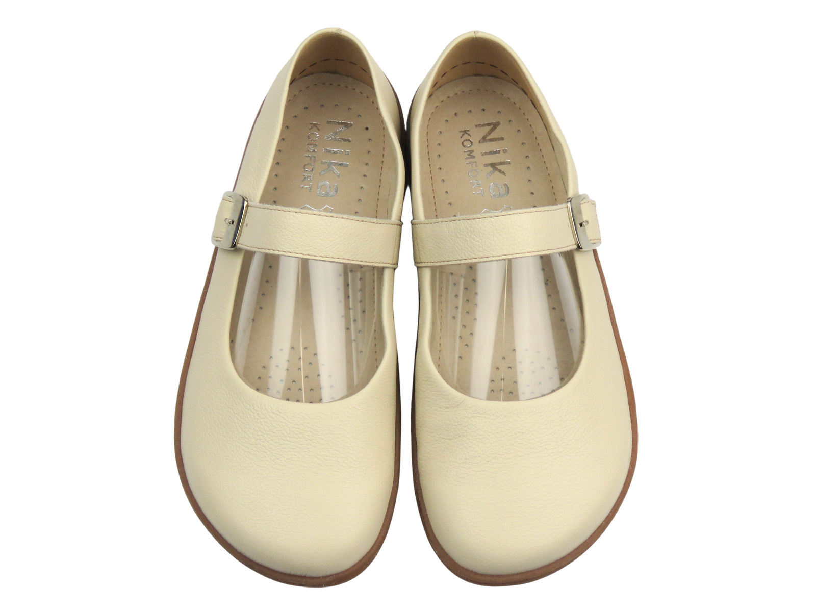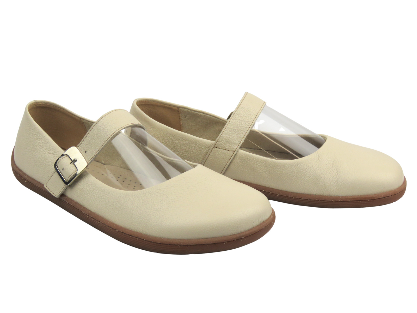 Barefoot skórzane minimalistyczne półbuty damskie beżowe Nika Komfort 1445
